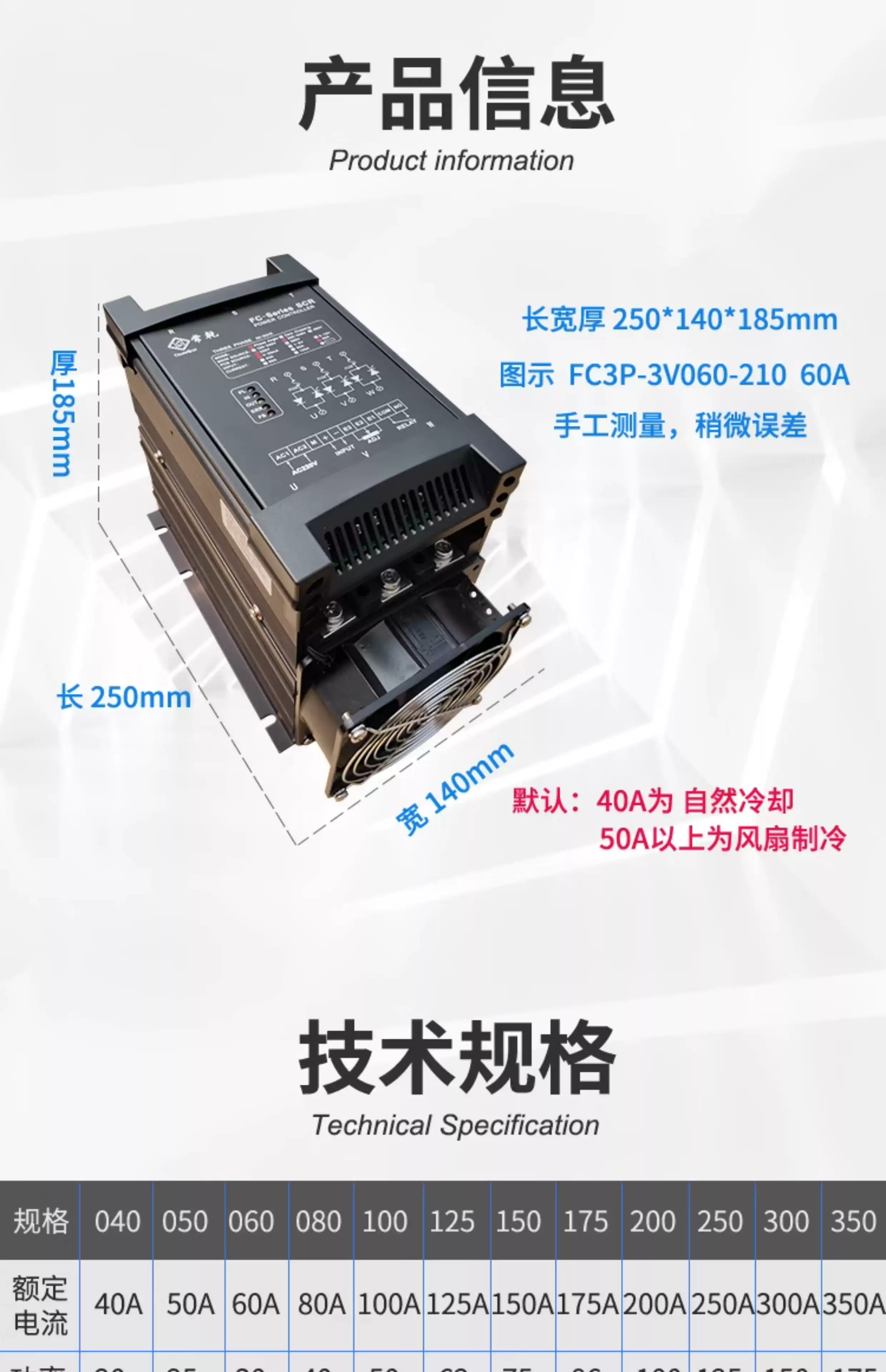 Three-phase power regulator SCR silicon controlled voltage regulator power regulator 30KW50KW150KW power controller 60A25KW simple type
