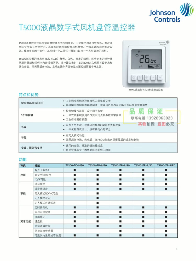 Johnson central air conditioning thermostat Johnson fan coil three-speed switch dual temperature dual T5200-TB-9JS0