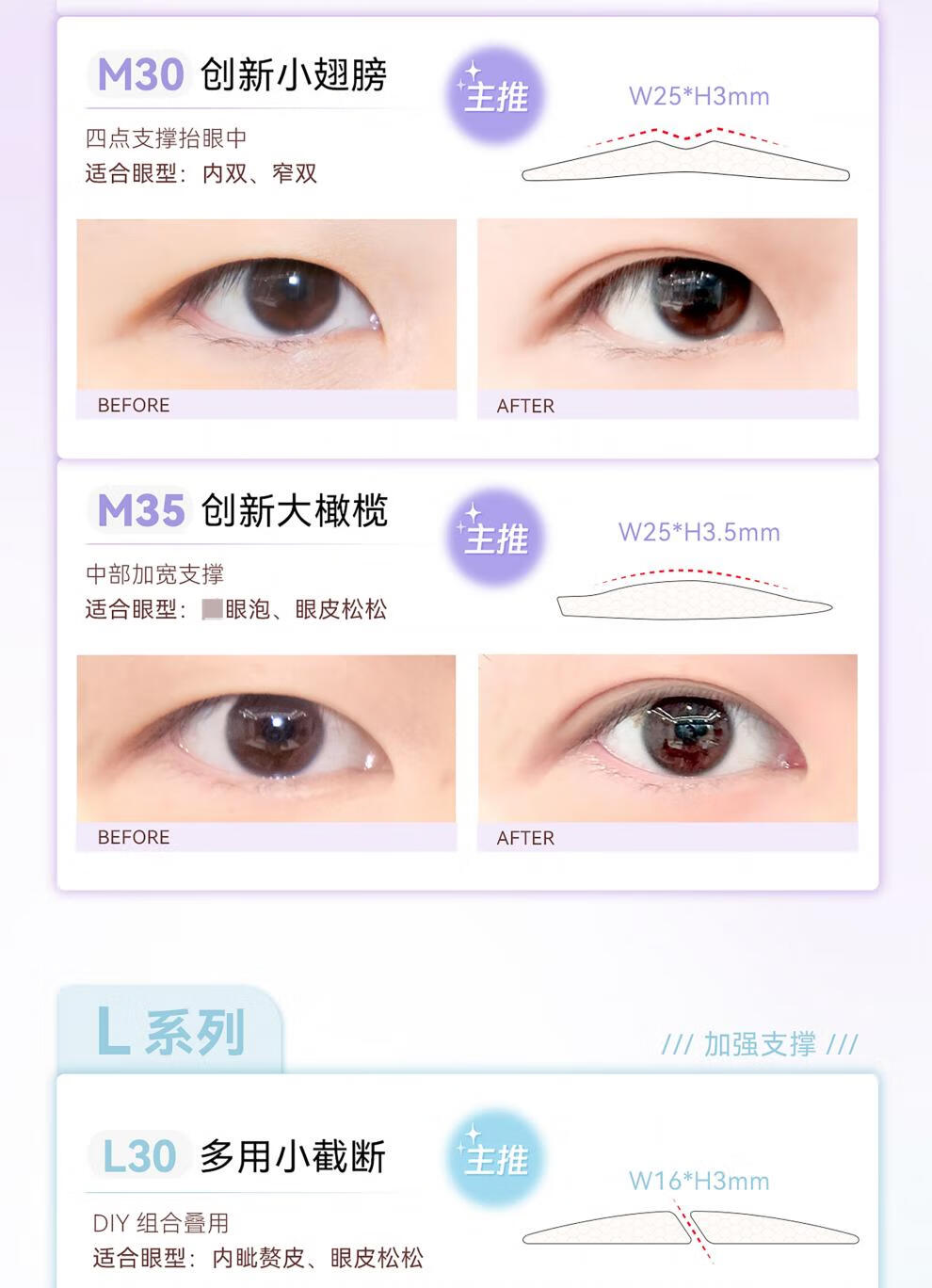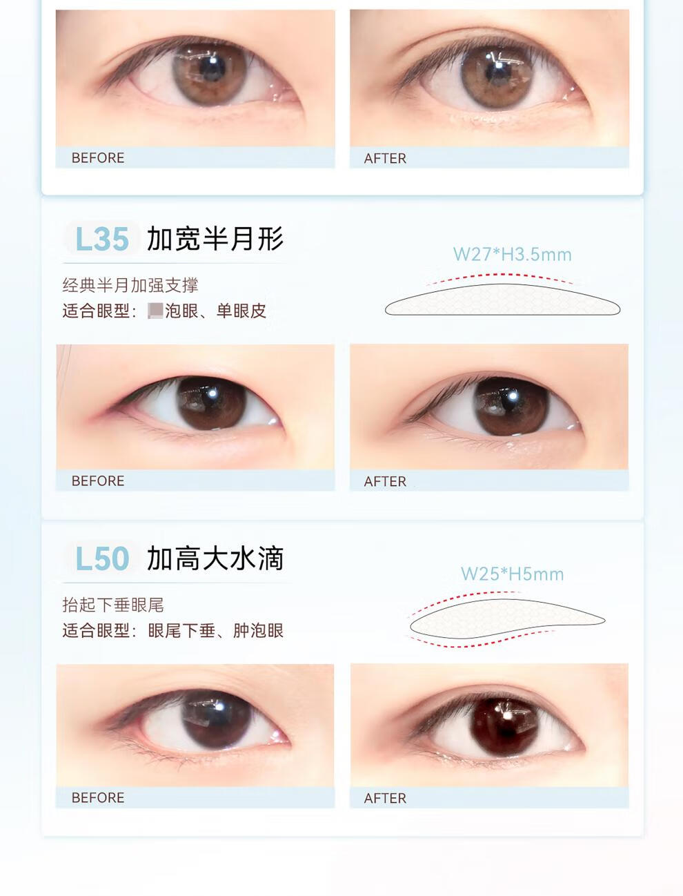 Invisible support, traceless natural lace, double-sided, specially designed for women with swollen eyelids Radar L50 - taller and larger water drop_ 80 pieces