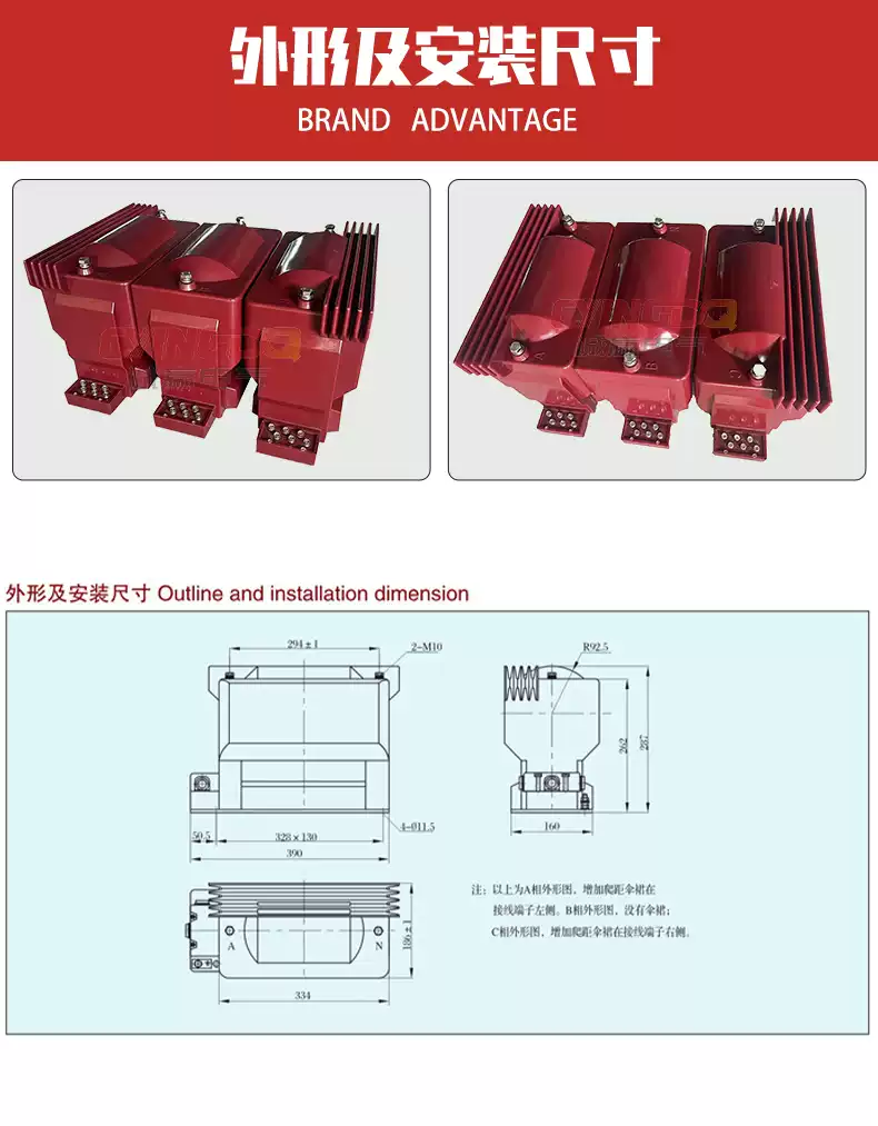 JDZX9-10G2, a special voltage transformer for home distribution, has a large capacity inflection point voltage of 1.9 times to meet the partial discharge, a set of 3 units