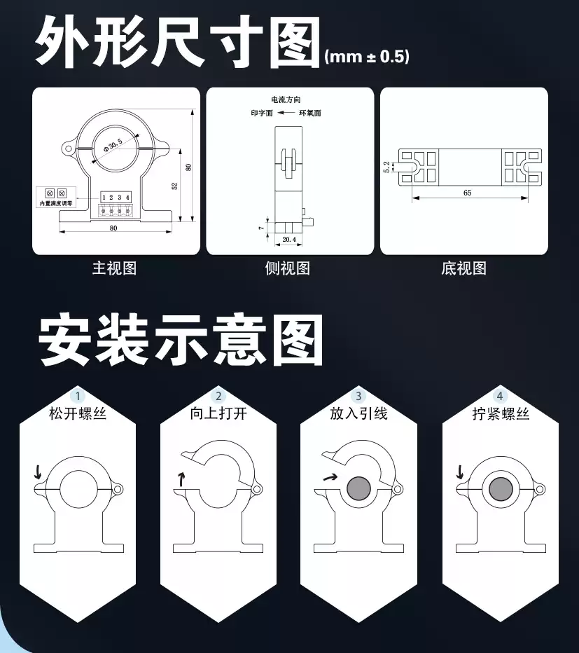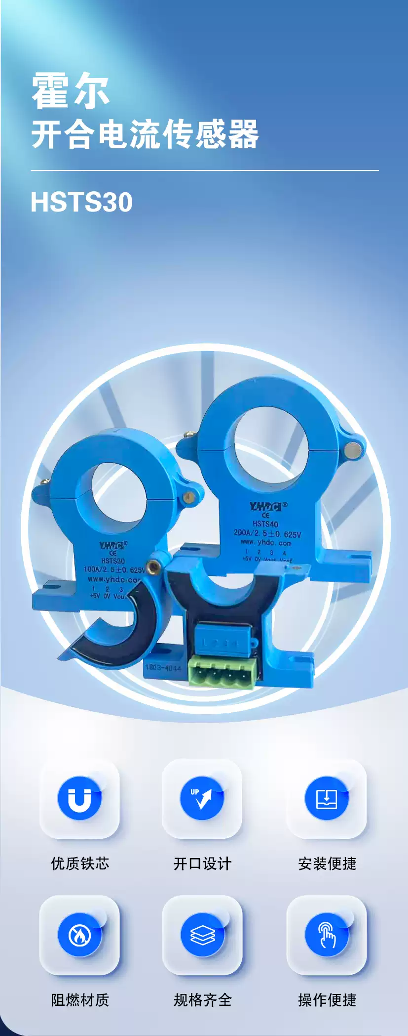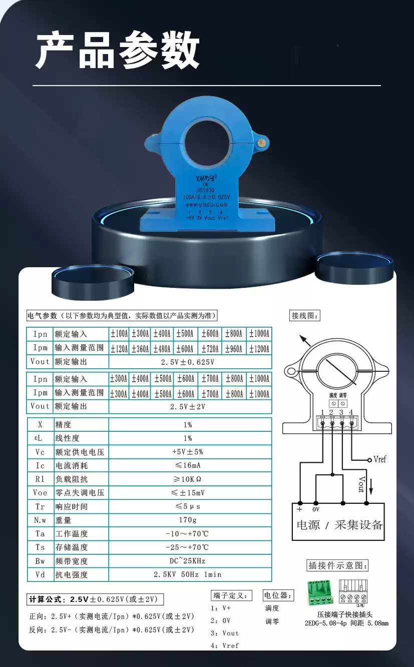 Yaohua Dechang 100A-1000A Hall switching current sensor clamp/DC transformer HSTS30 1000A/2.52V