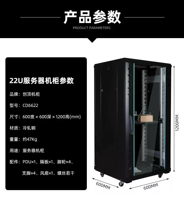 22u network cabinet small 1.2m server cabinet wall-mounted floor-standing household power amplifier switch weak current cabinet wall cabinet 1x1x1cm 22U Veyron model 600 wide 800 deep 1200 high