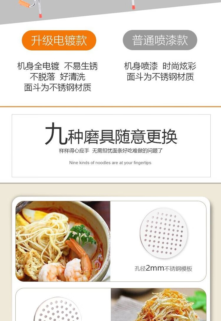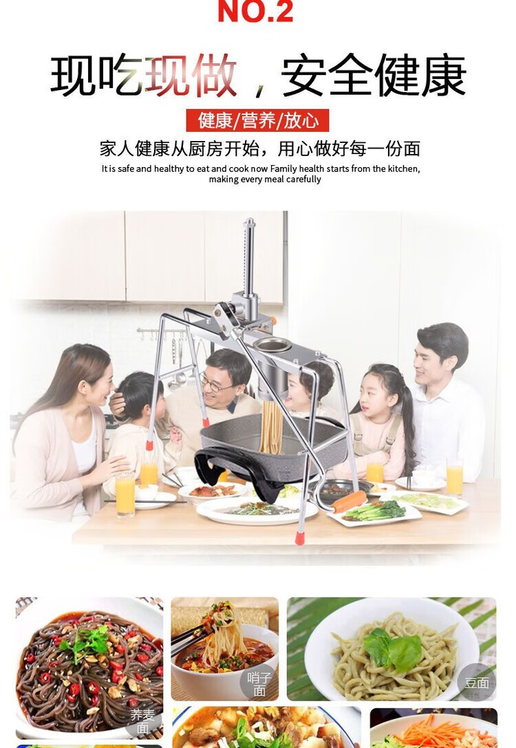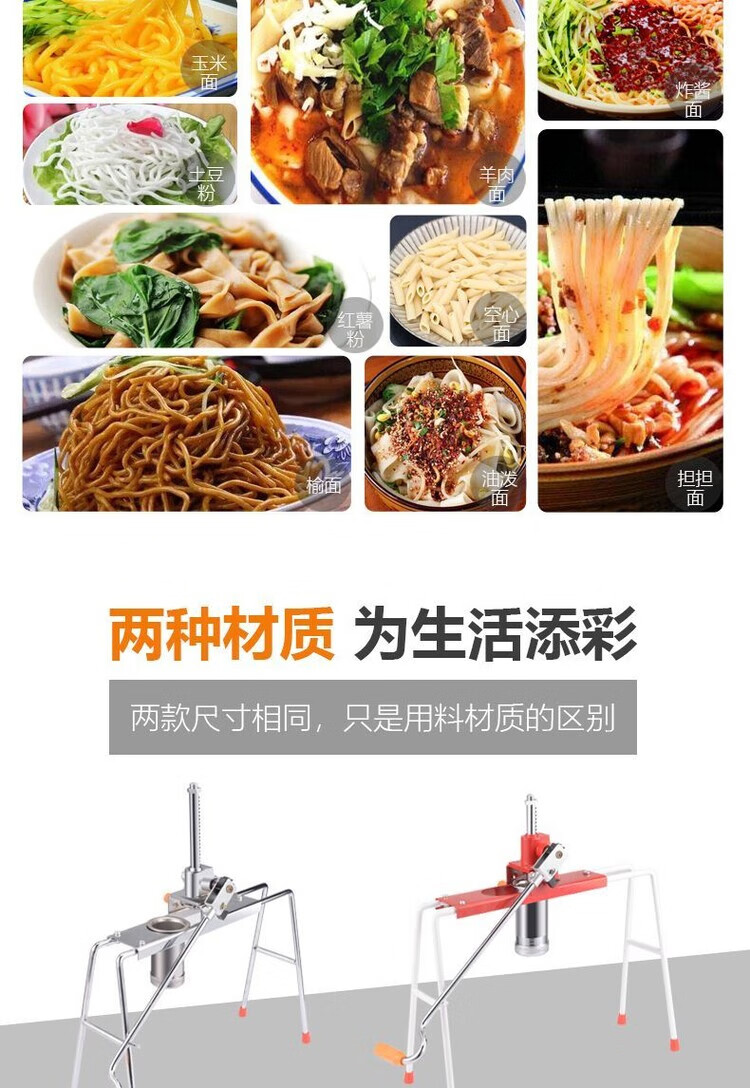 Homemade glutinous rice noodle machine manual glutinous rice noodle machine Heluo noodle machine hand-pressed stainless steel supreme thickened double bearing model + stainless steel barrel + 4 grinding tools
