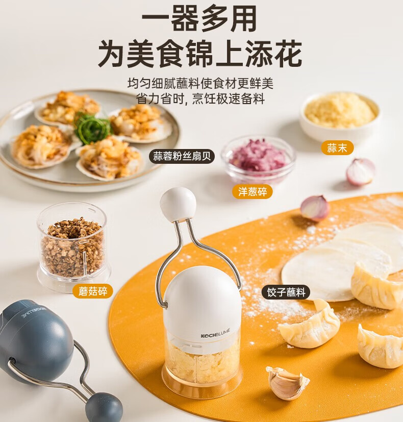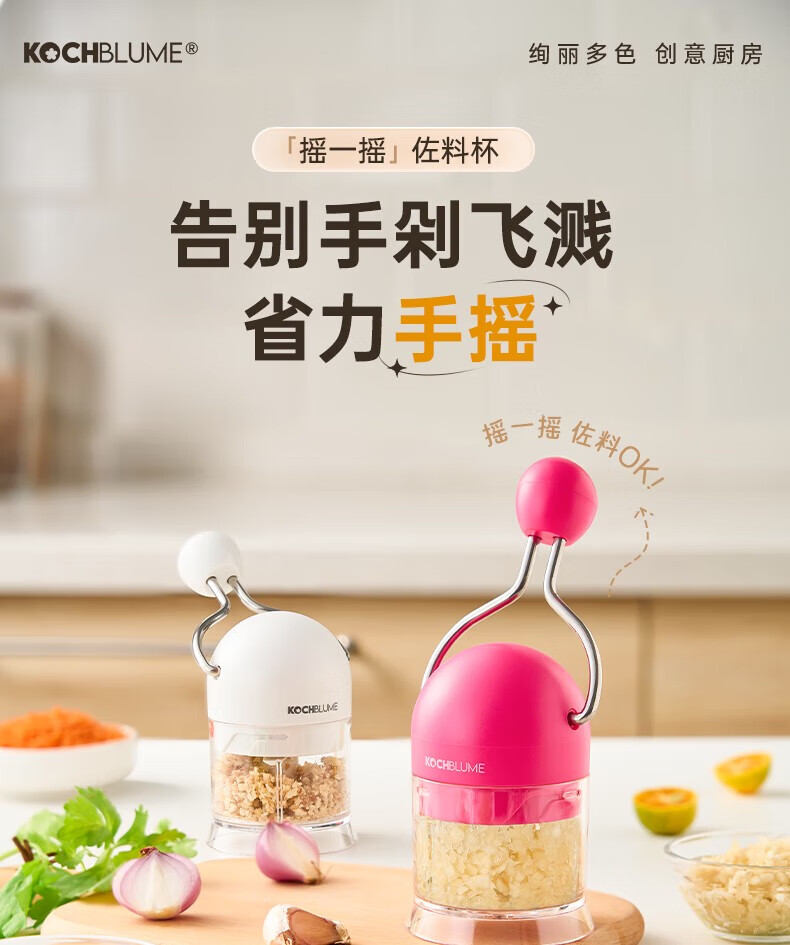 Hand-cranked garlic pounder, garlic cutter, multi-functional cooking machine, household mini labor-saving garlic chili condiment crushing artifact, rose red