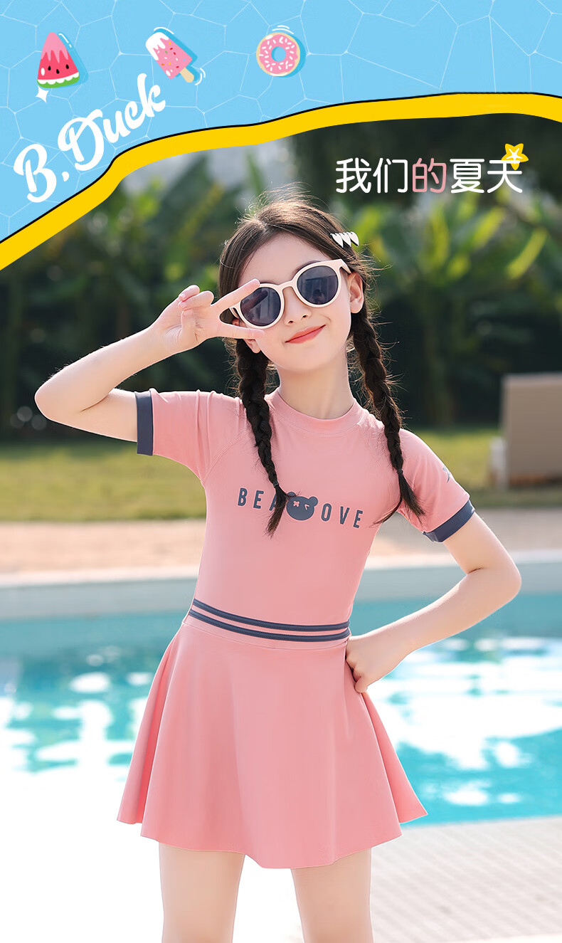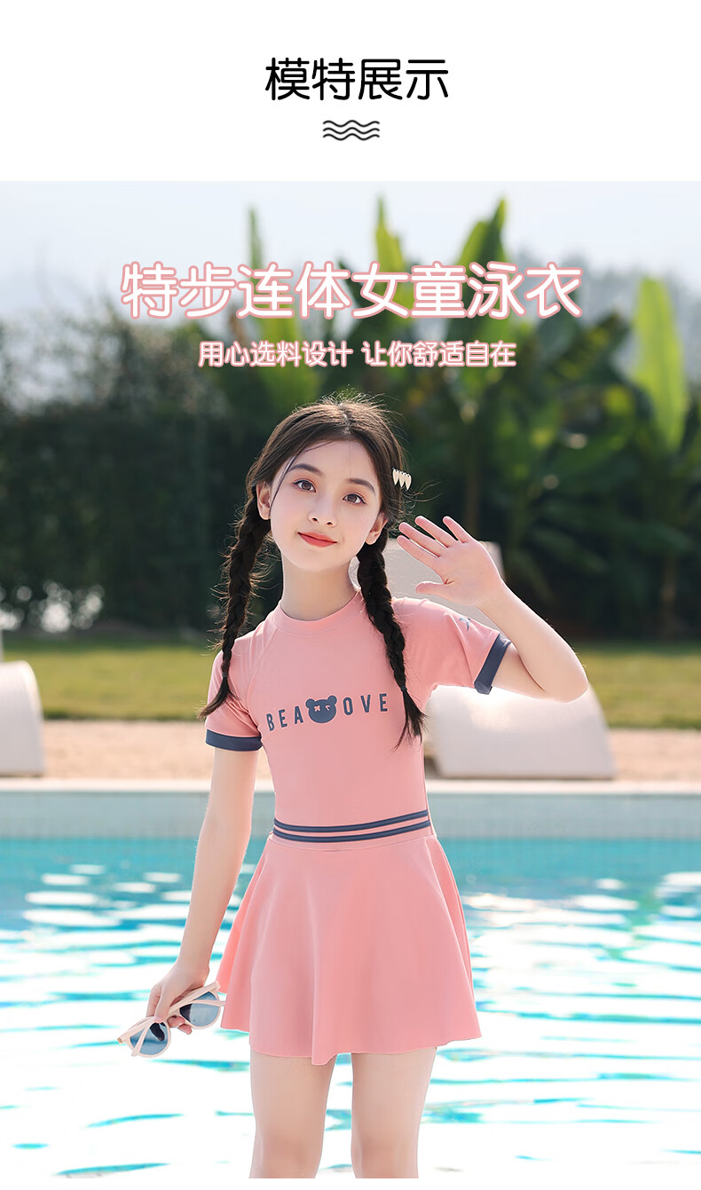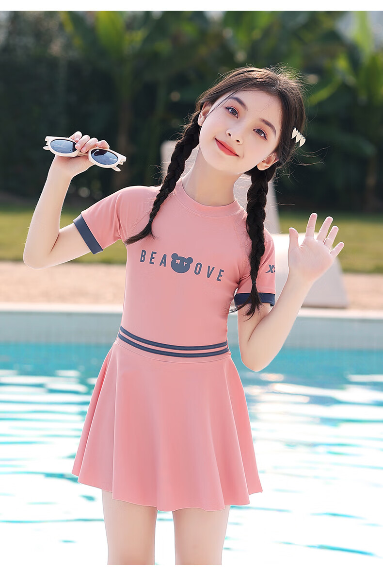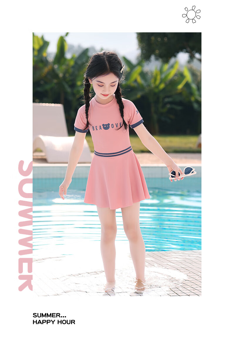 Zailu Children's Swimsuit Girls 2024 New One-piece Girls' Cute Quick-Drying Sun Protection Training Swimsuit for Medium and Large Children Pink 105 Size 8 Recommended Height 95-105cm