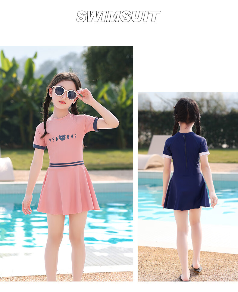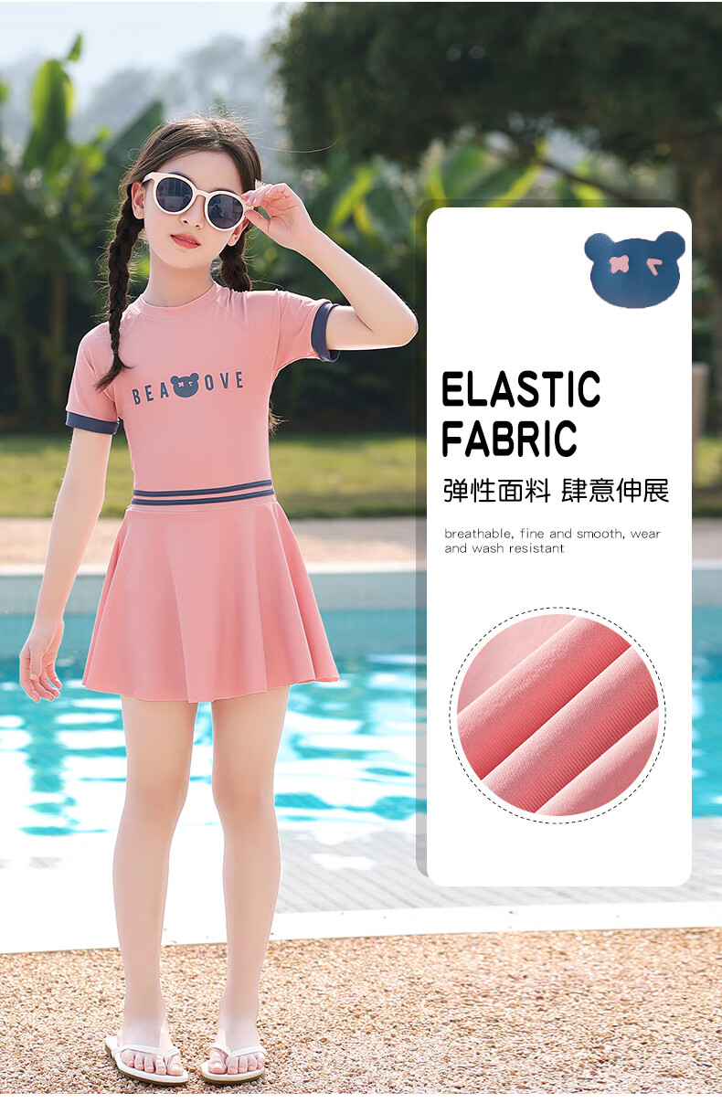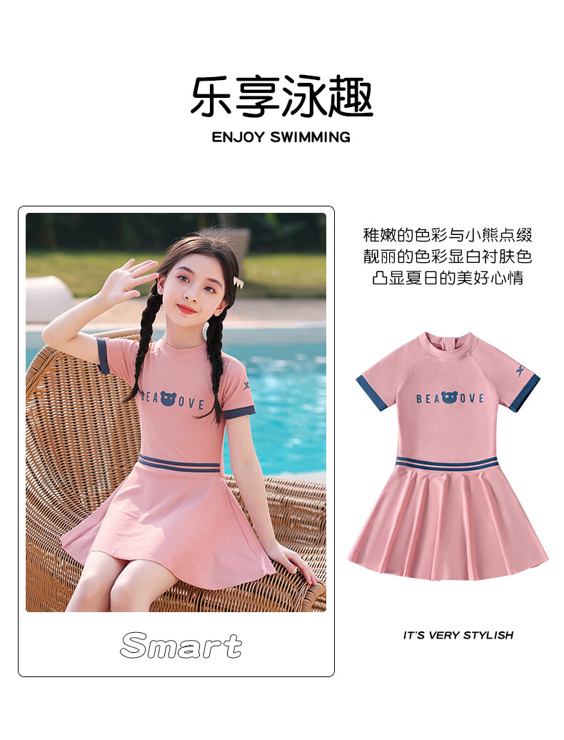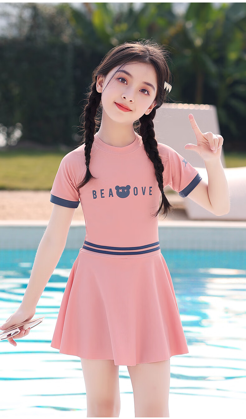 Zailu Children's Swimsuit Girls 2024 New One-piece Girls' Cute Quick-Drying Sun Protection Training Swimsuit for Medium and Large Children Pink 105 Size 8 Recommended Height 95-105cm