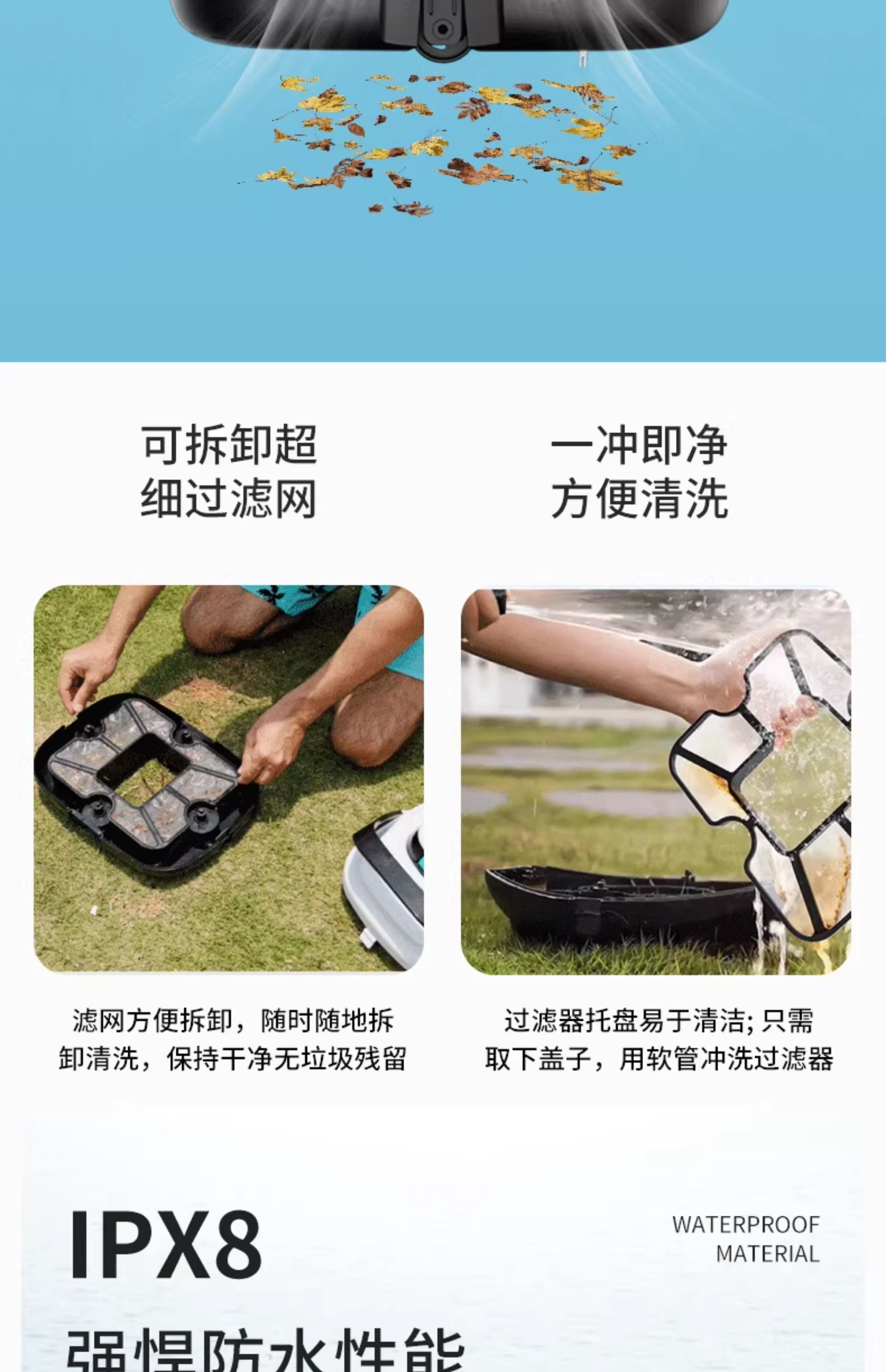 American swimming pool suction machine fully automatic cleaning robot filters the bottom of the turtle pond, underwater fish pond vacuum cleaner upgraded version XL1103 water surface cleaning robot (solar charging + remote control 10