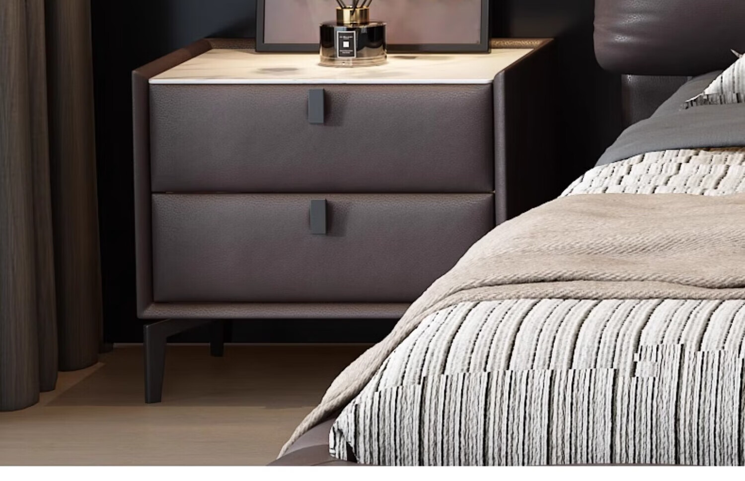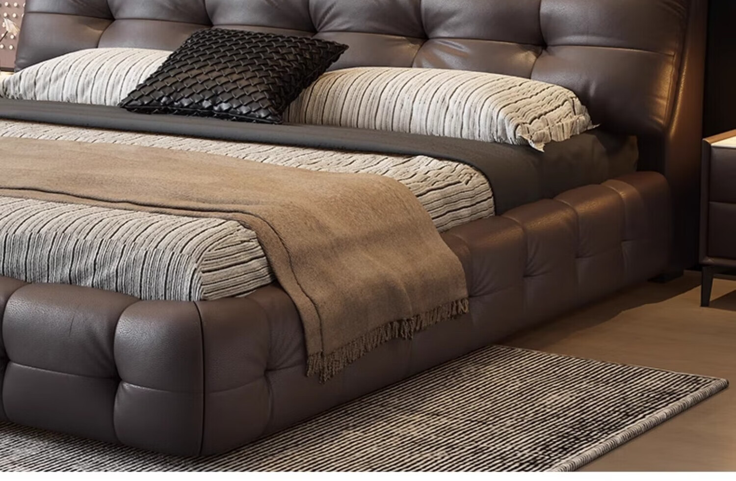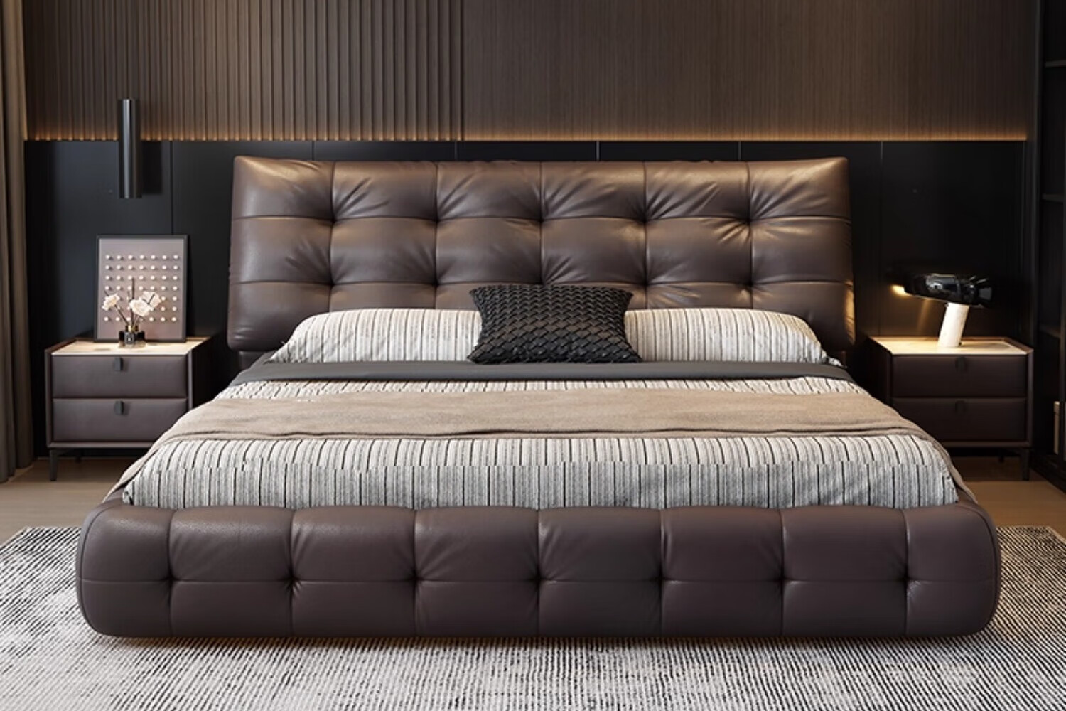 Aiyoushang Lawrence Leather Bed Master Bedroom King Bed 2025 New Modern Light Luxury Double Bed 2m