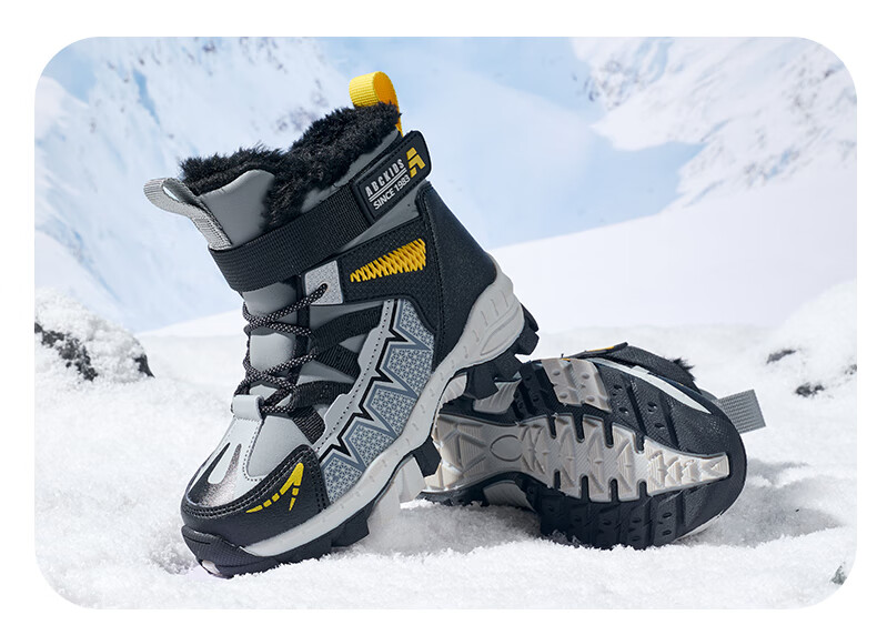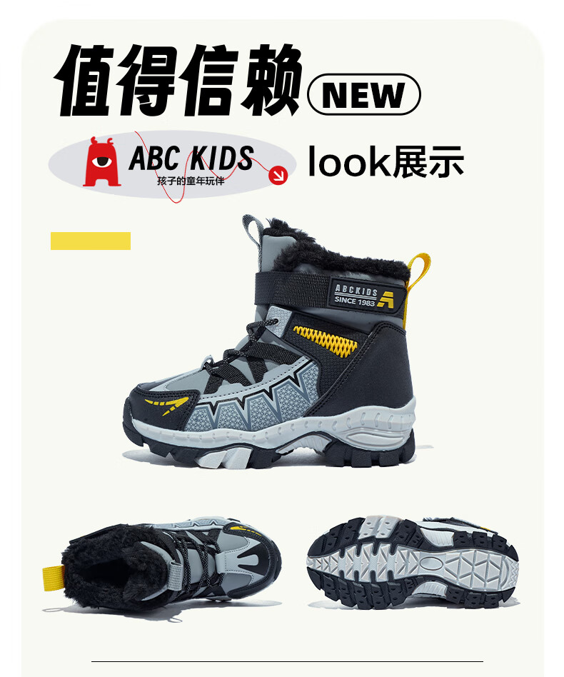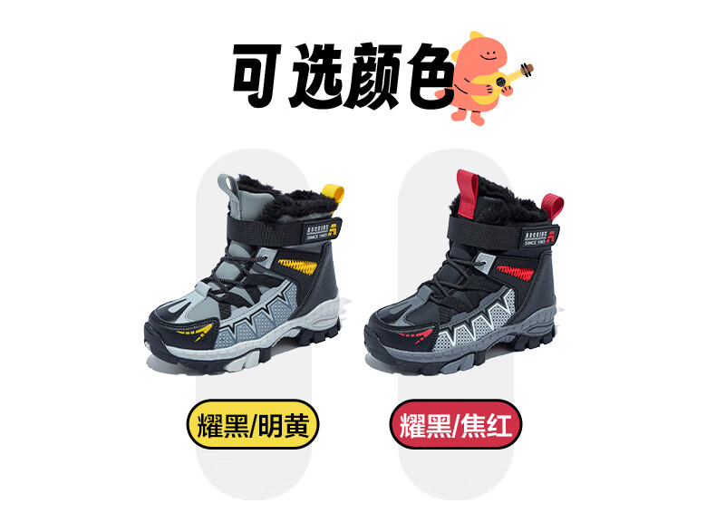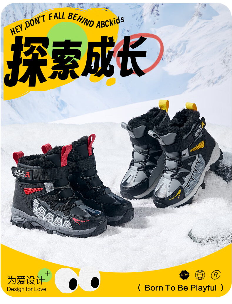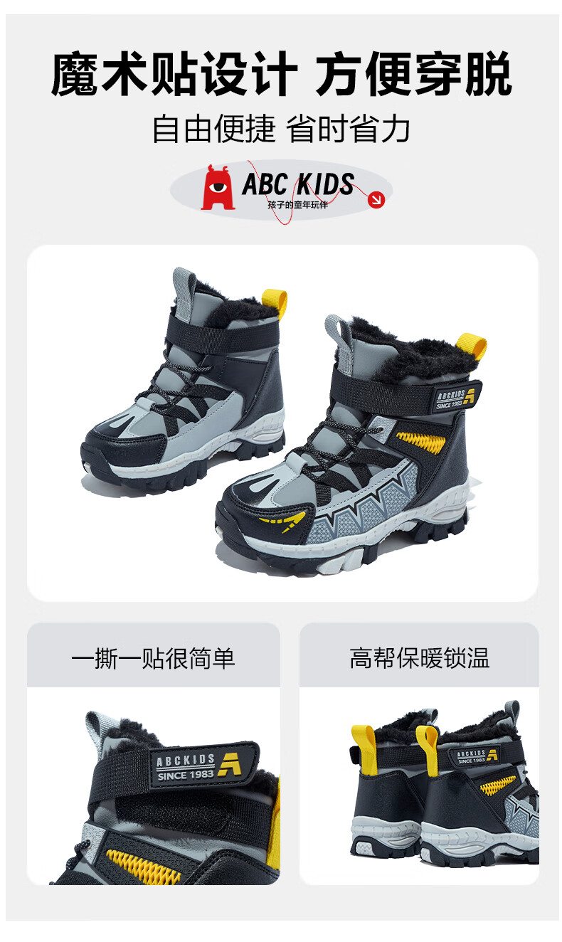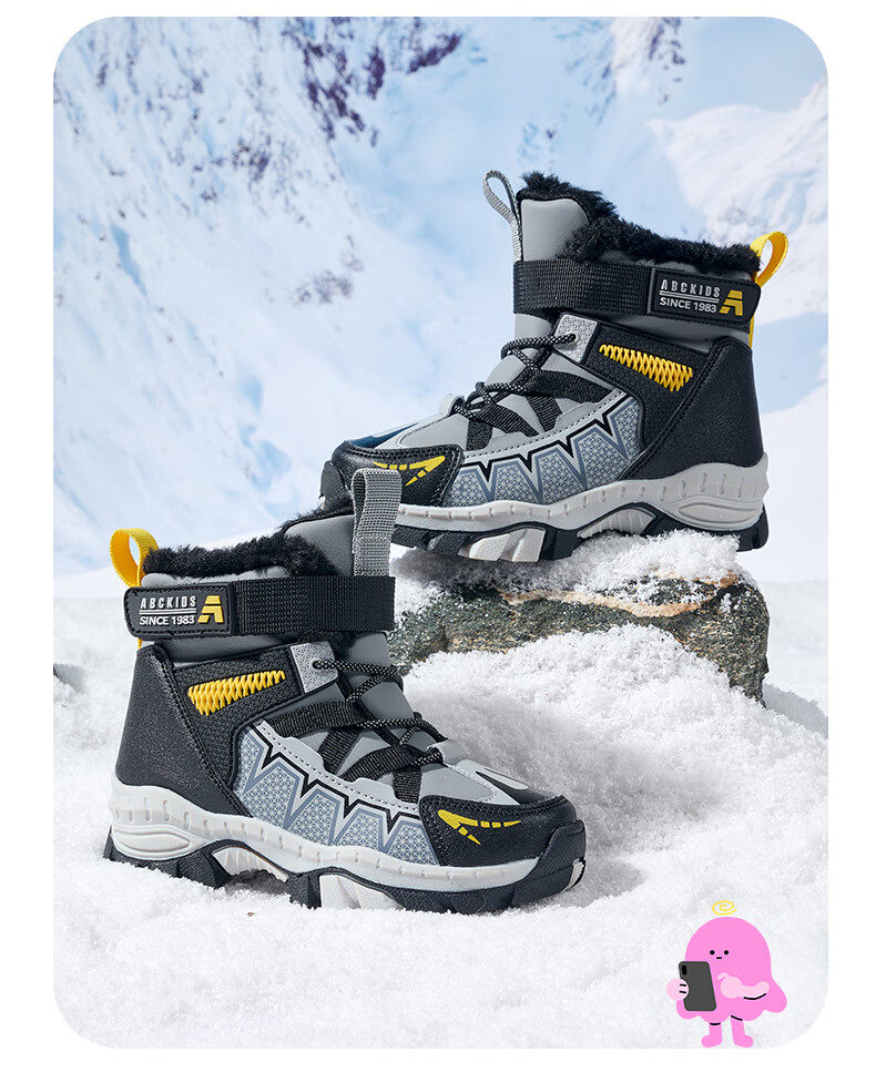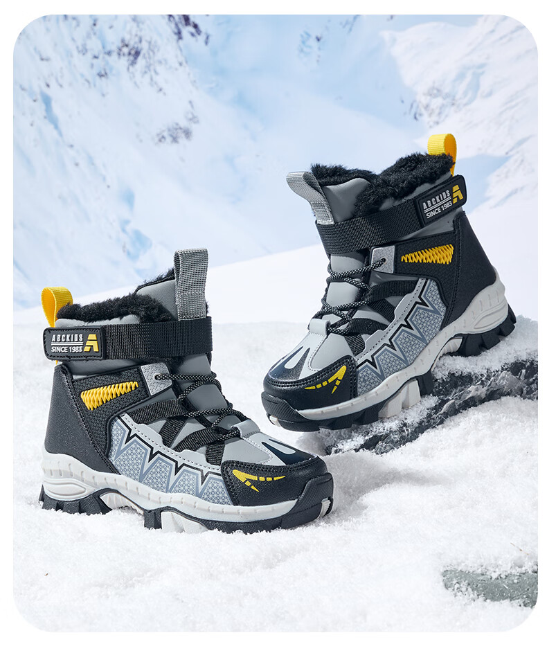 ABC KIDS children's shoes children's high-top plus velvet cotton shoes 2026 winter new warm casual shoes for boys and girls, black/bright yellow 29, inner length about 18.67cm