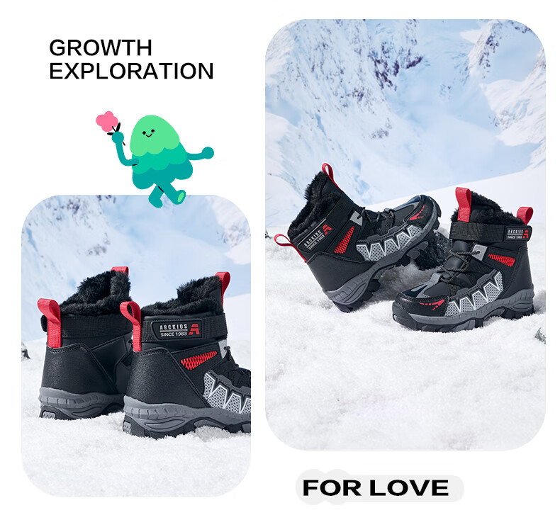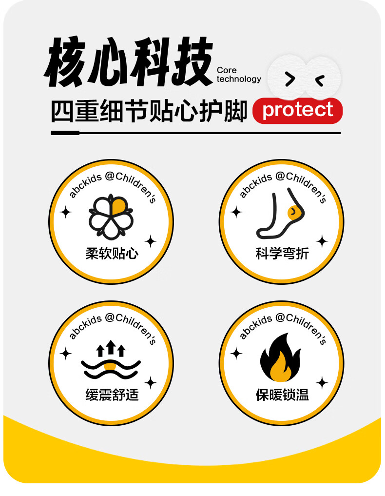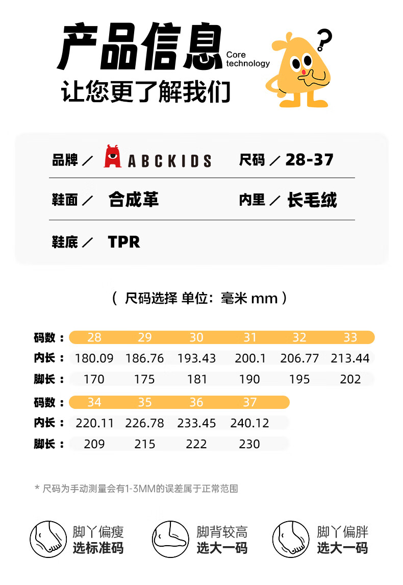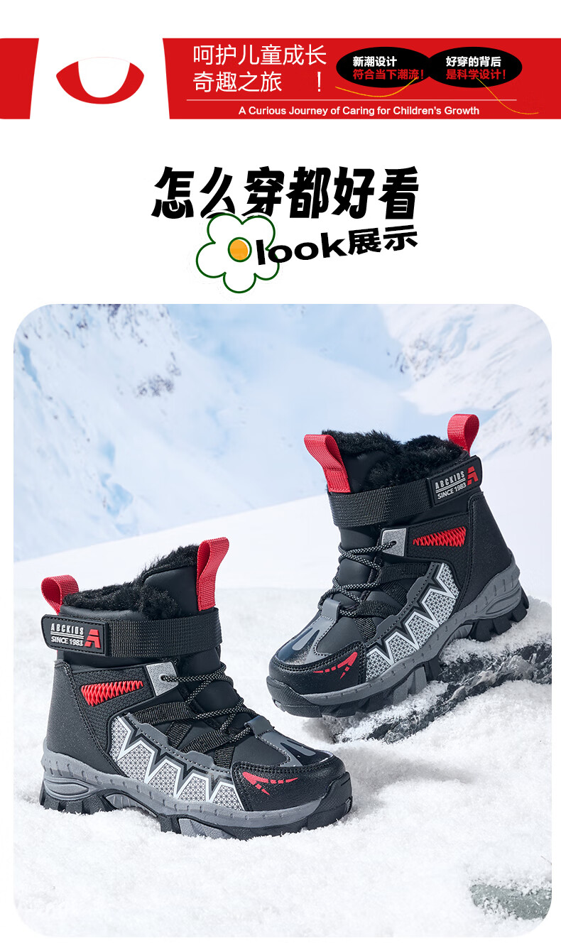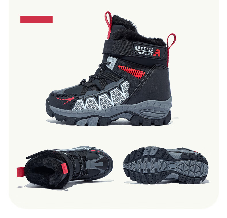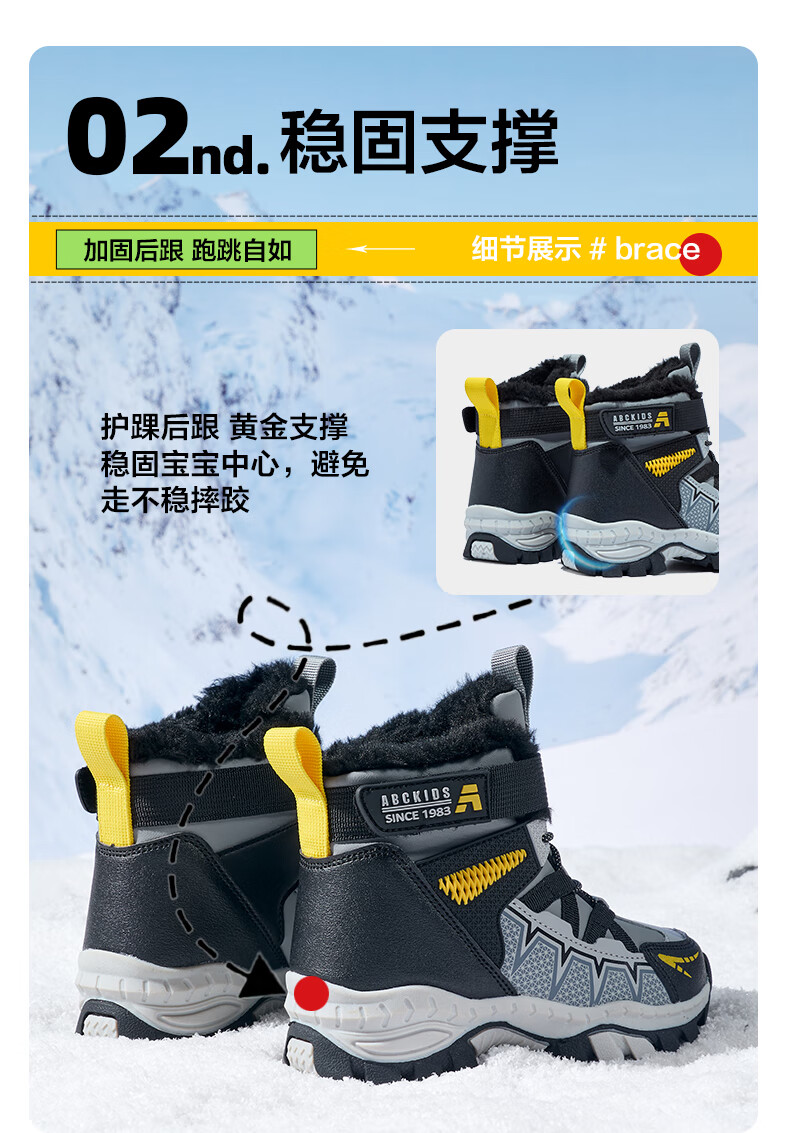 ABC KIDS children's shoes children's high-top plus velvet cotton shoes 2026 winter new warm casual shoes for boys and girls, black/bright yellow 29, inner length about 18.67cm