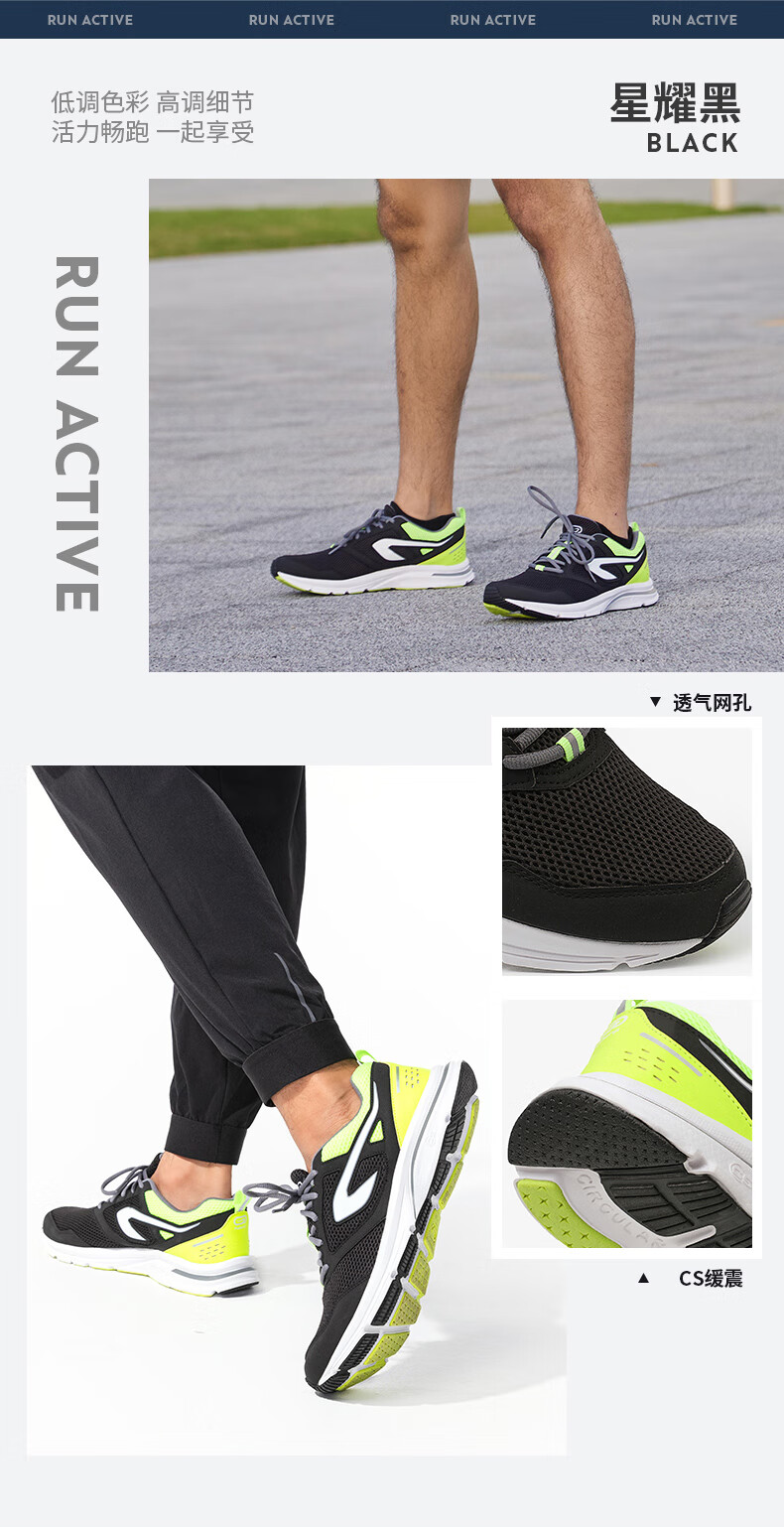 Decathlon (DECATHLON) running shoes, sports shoes, men's autumn and winter cushioning shoes, casual shock-absorbing shoes for dad IVX1 Star Black Lightweight 39