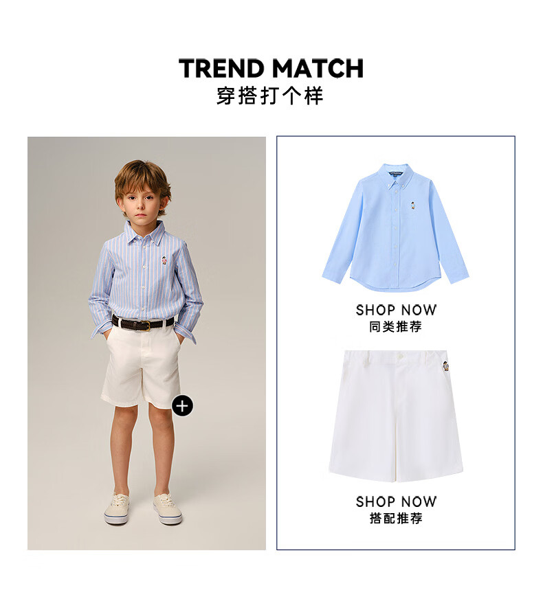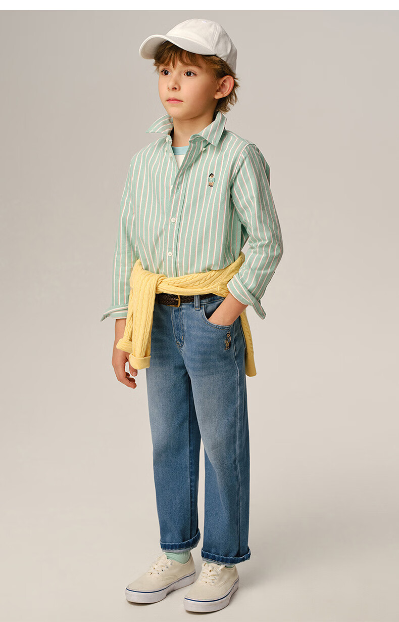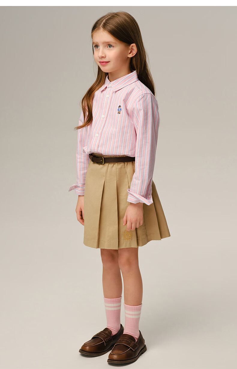 Teenie Weenie Kids 26-year new classic college style striped cotton shirt for boys and girls, pink 160 cm