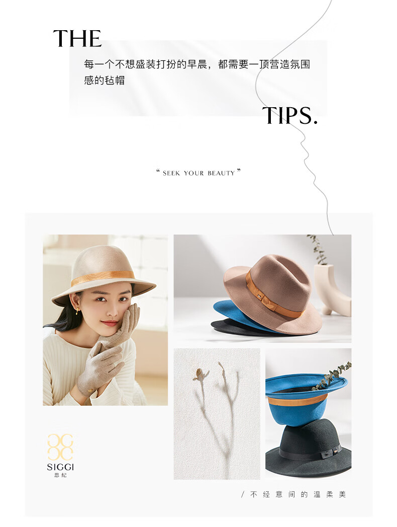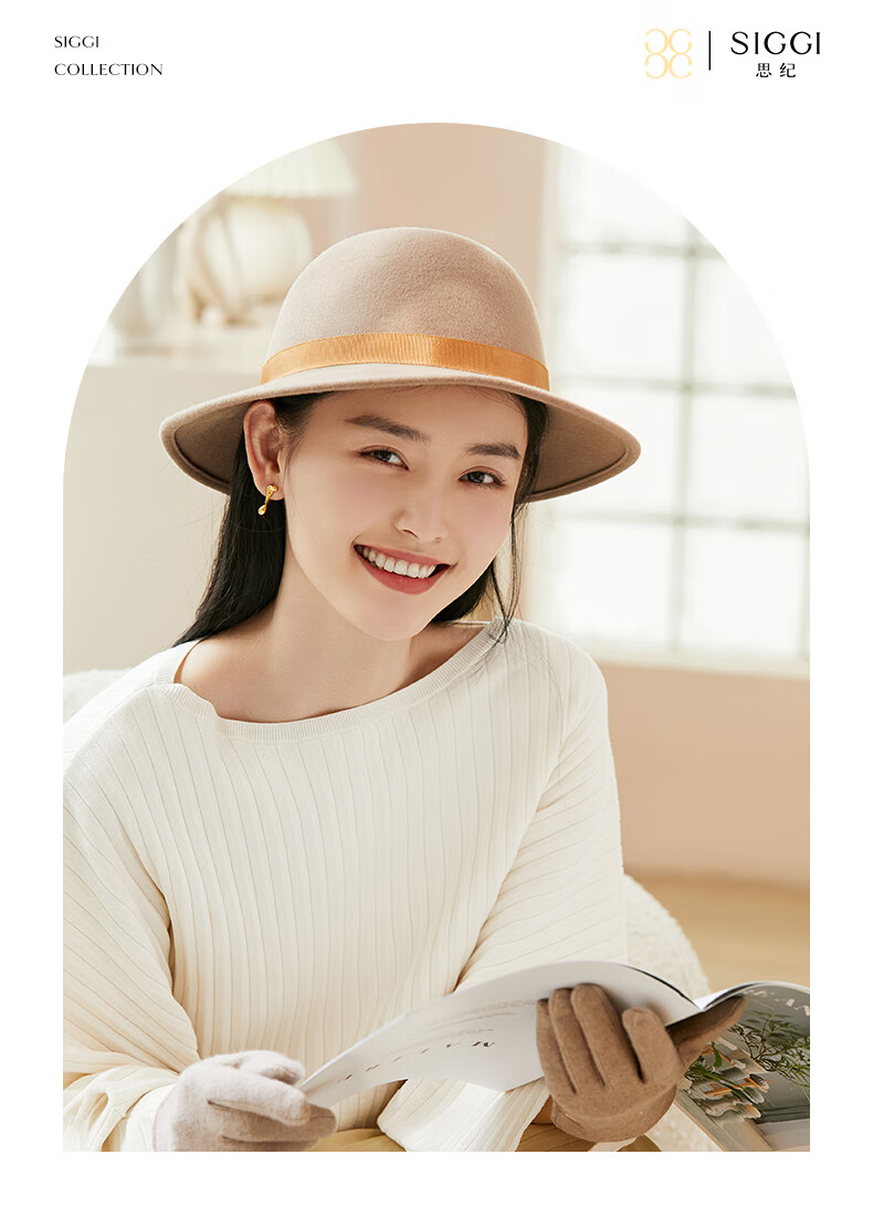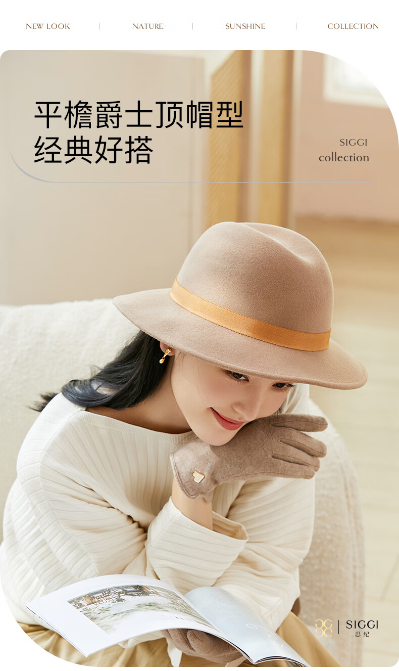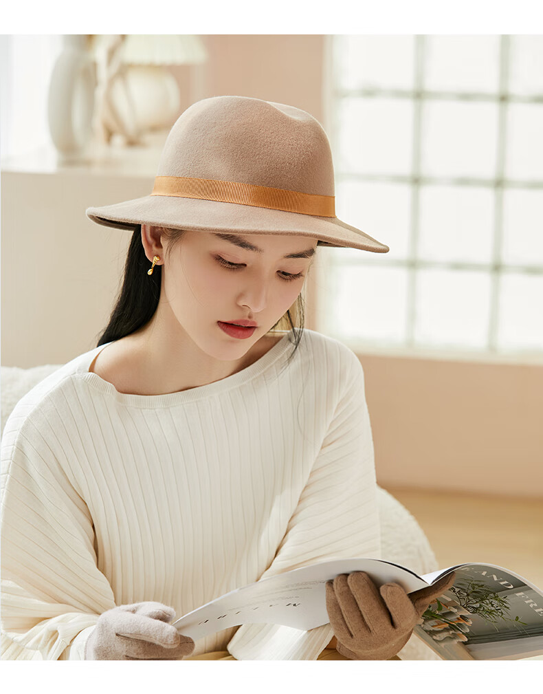 Siggi Wool Flat Top Hat Women's Autumn and Winter New Warm Korean French Retro Hat Fashionable Wool Wool Hat Light Milk Tea M(57-59cm)