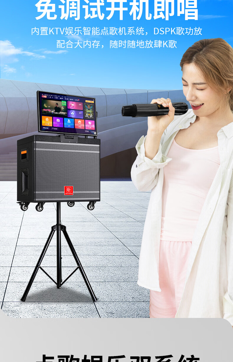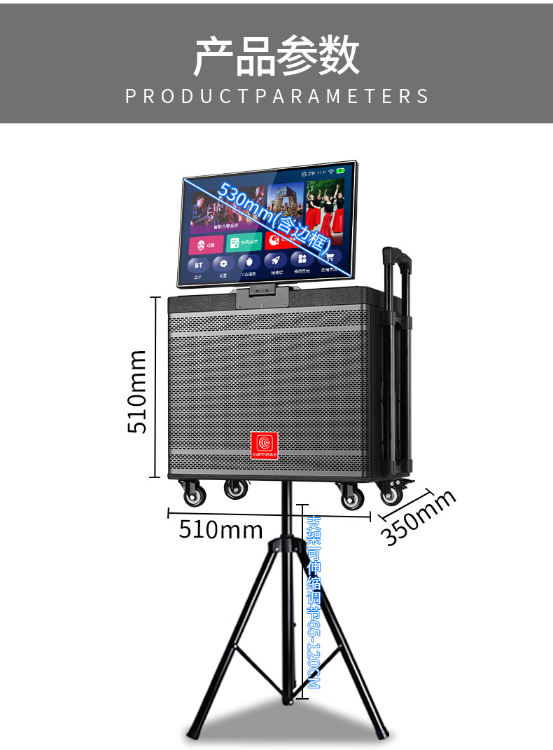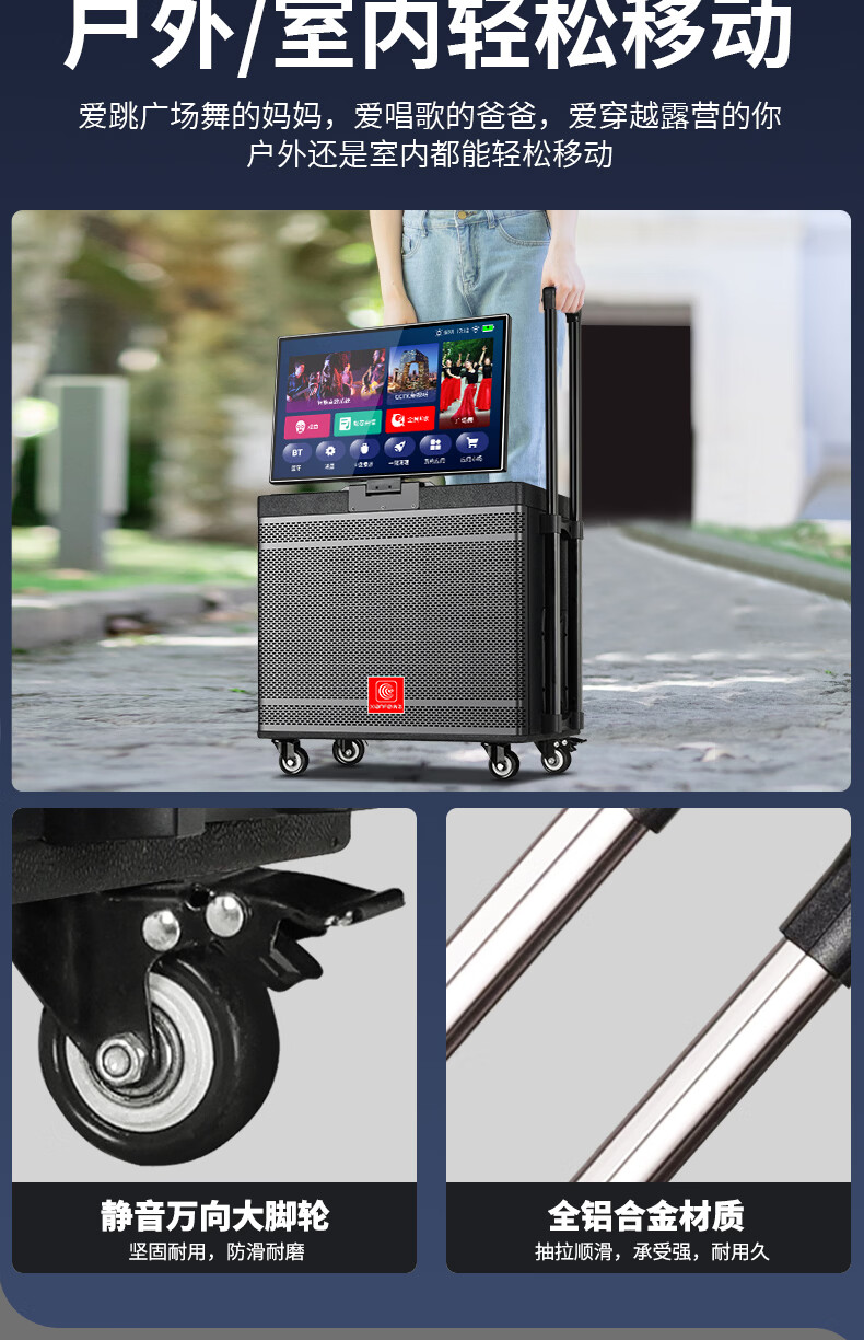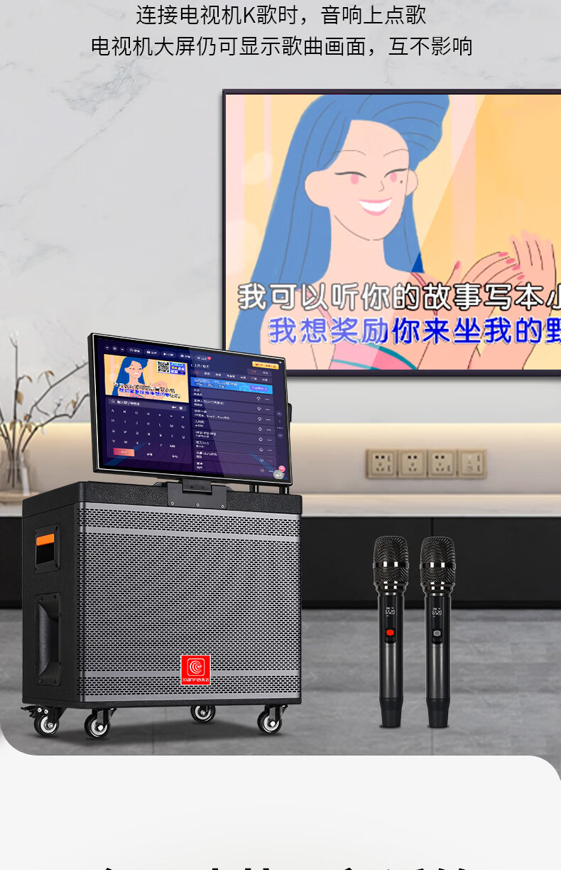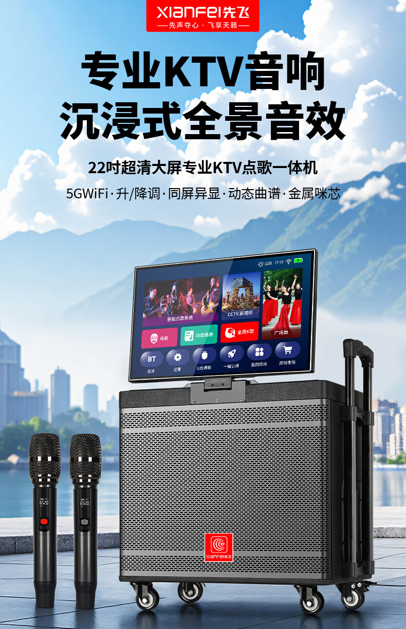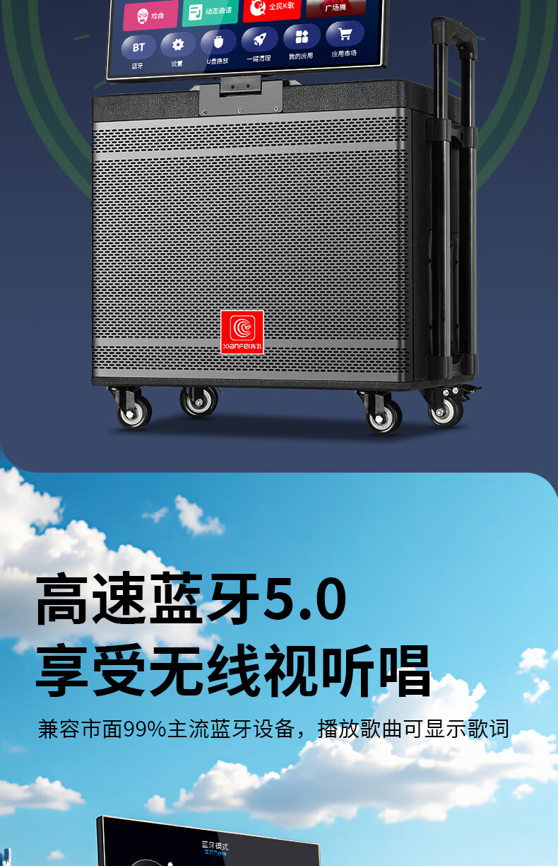 Xianfei Square Dance Audio with display trolley speaker portable all-in-one touch WIFI network karaoke machine Bluetooth dual microphone 17-inch screen + 18 speakers + rising and falling tone + dual microphones + 64GU disk + bracket