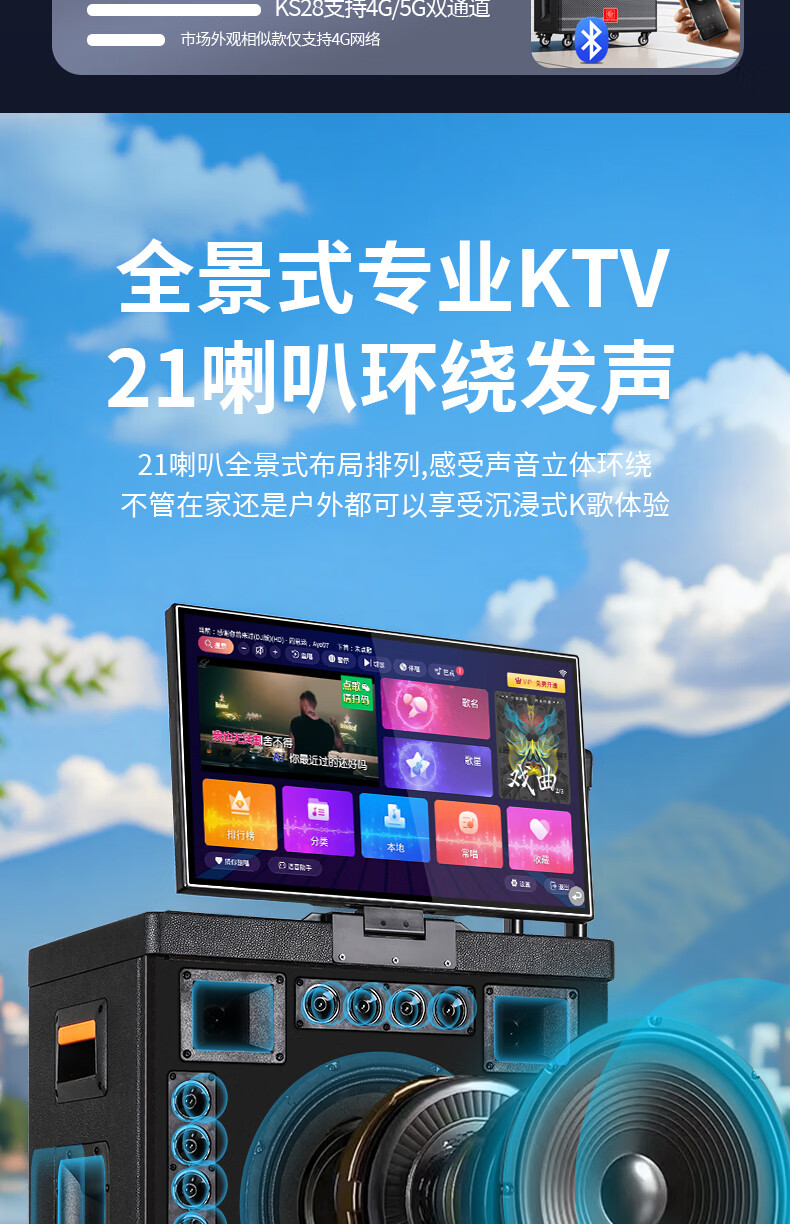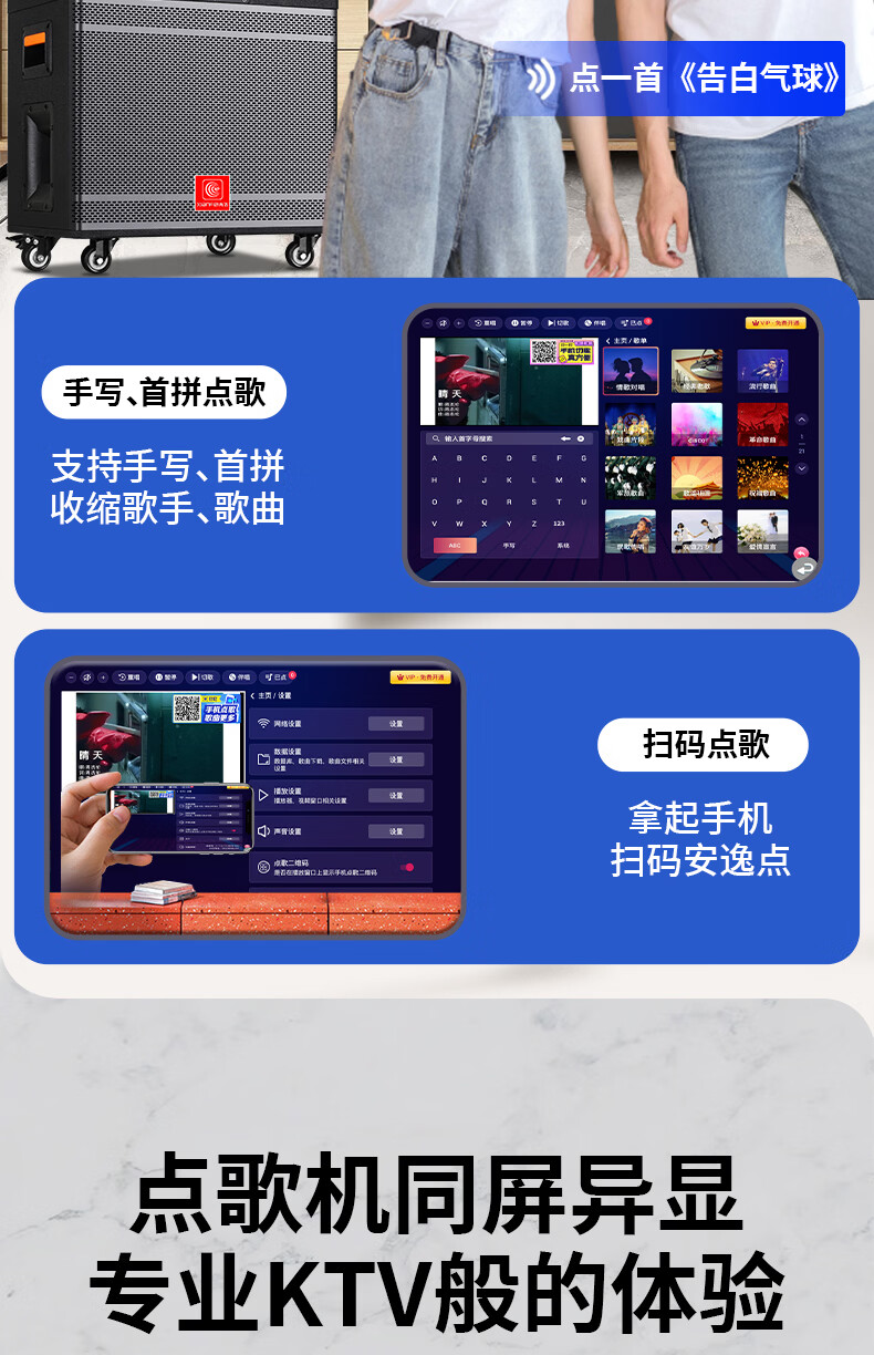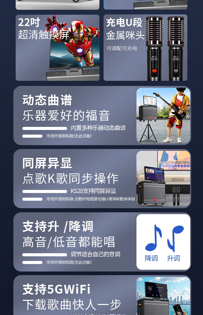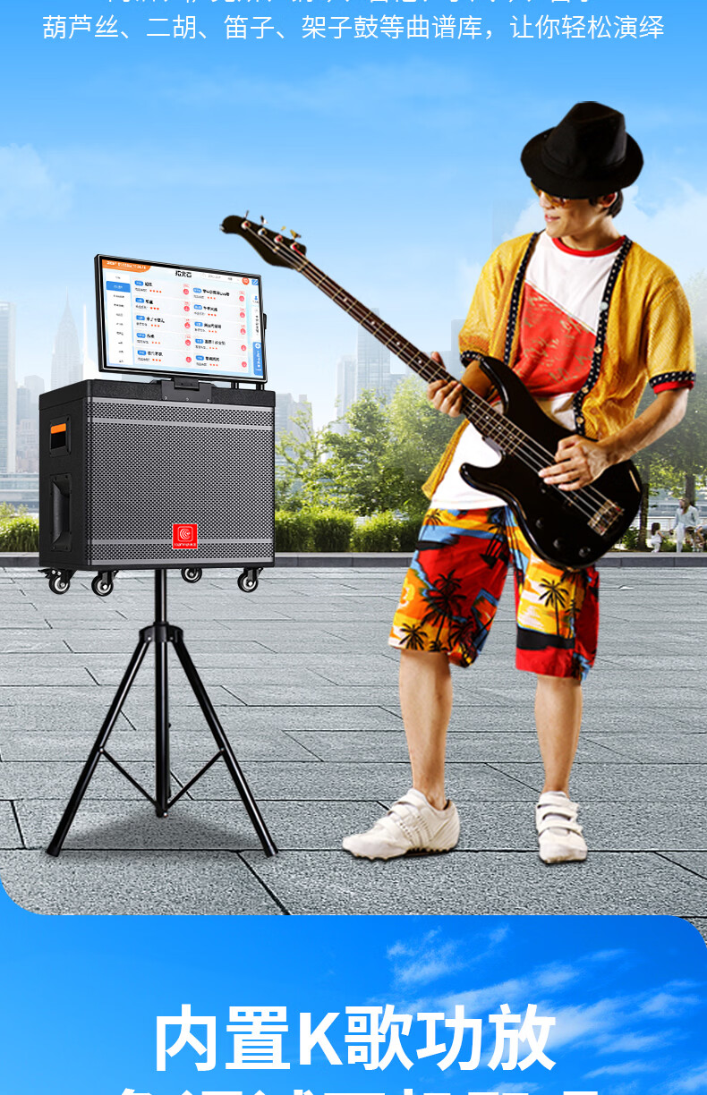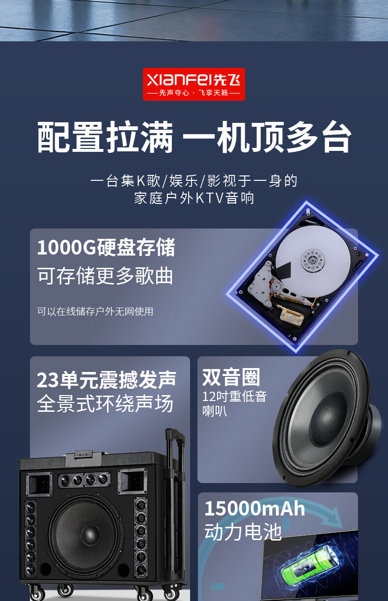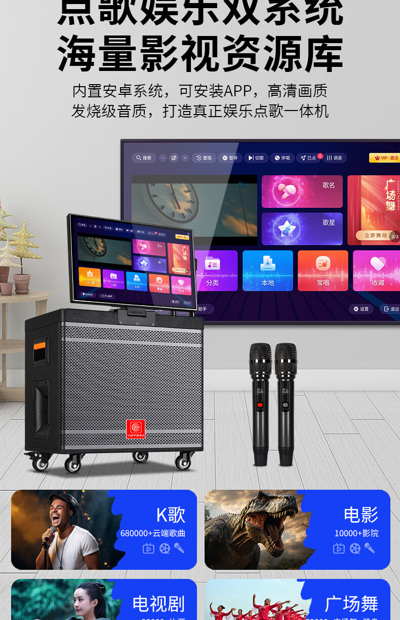 Xianfei Square Dance Audio with display trolley speaker portable all-in-one touch WIFI network karaoke machine Bluetooth dual microphone 17-inch screen + 18 speakers + rising and falling tone + dual microphones + 64GU disk + bracket