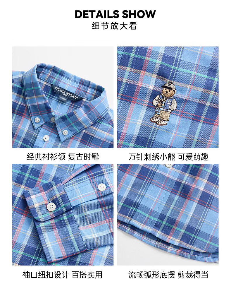 Teenie Weenie Kids 26-year new classic college style cotton shirt for boys and girls, pink 160 cm