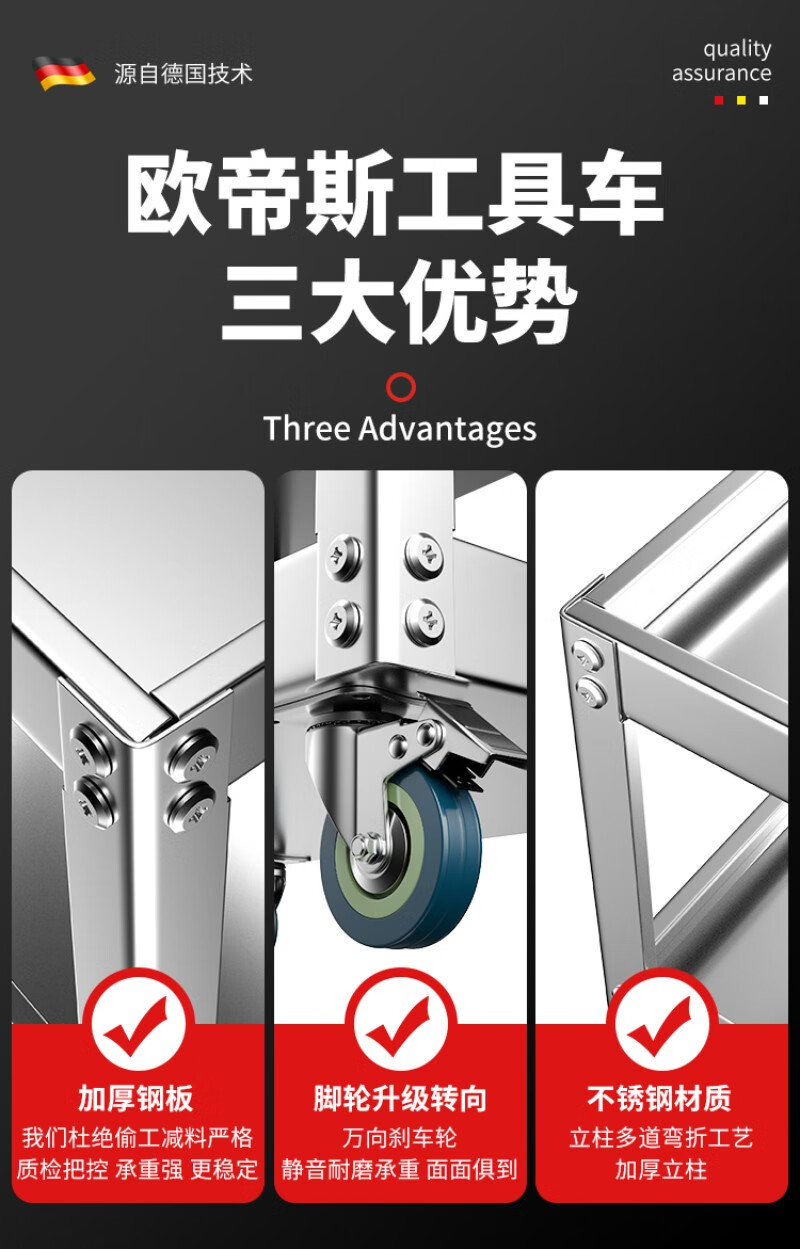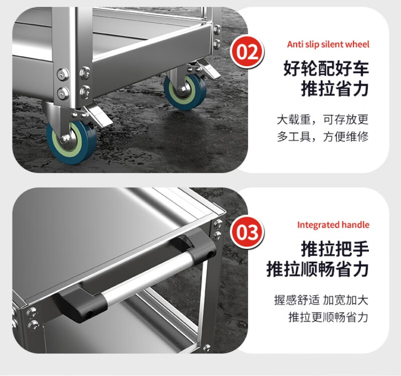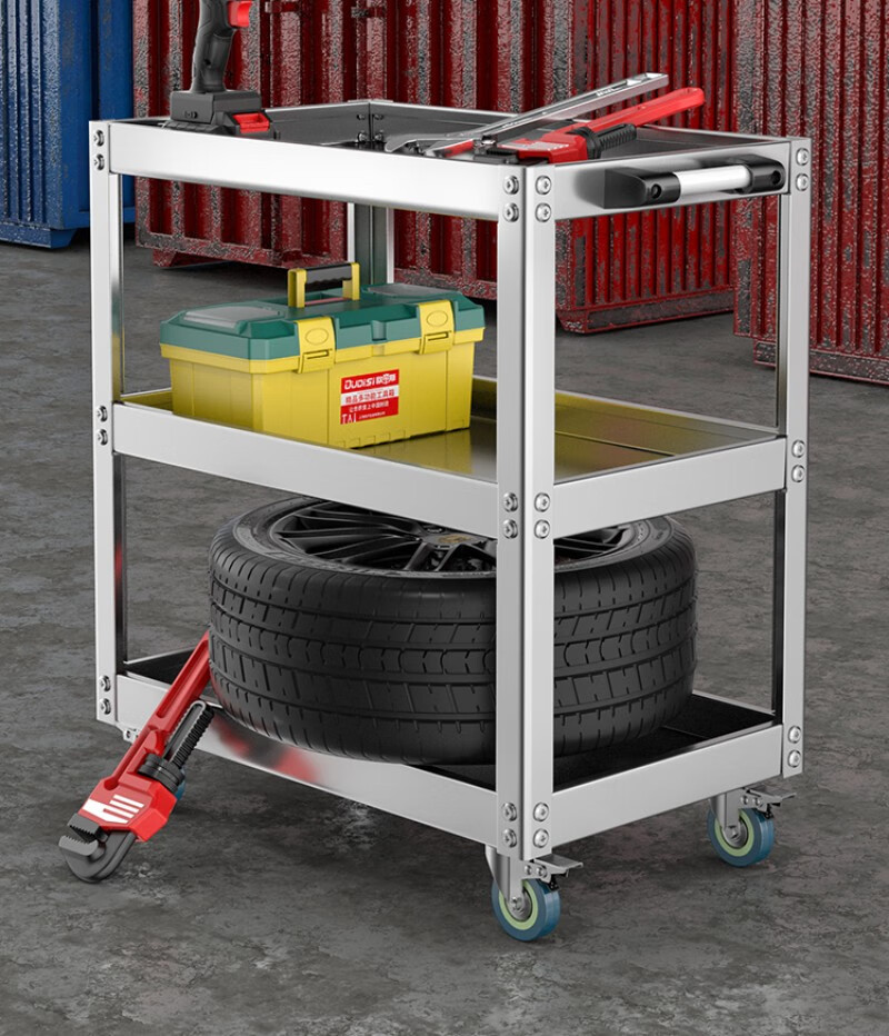 Otis Stainless Steel Tool Cart Trolley Multi-functional Drawer-type Workshop Auto Repair Mobile Storage Storage Shelf Gift-a piece of random sandpaper