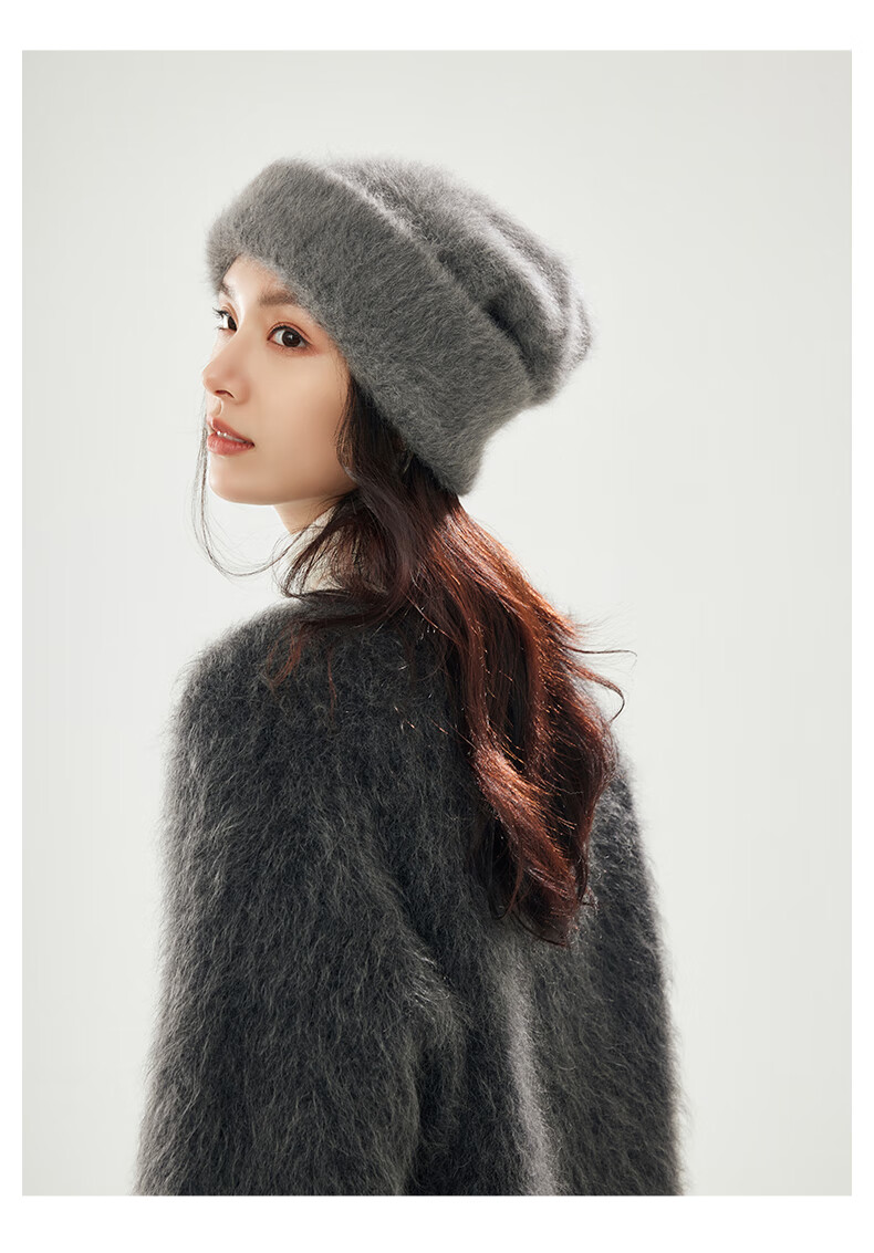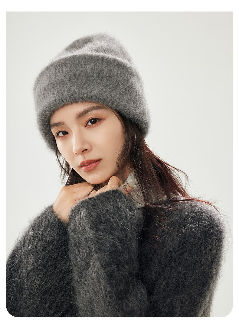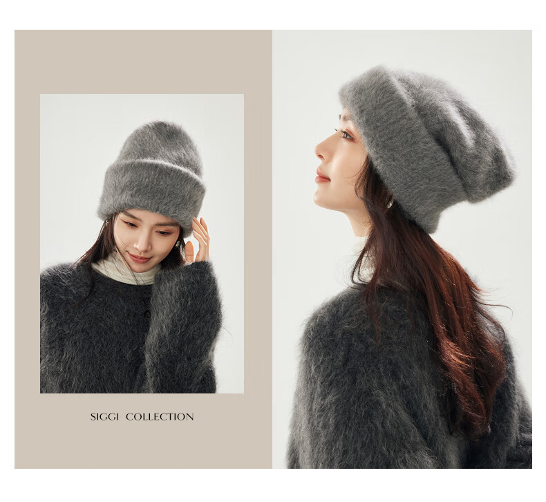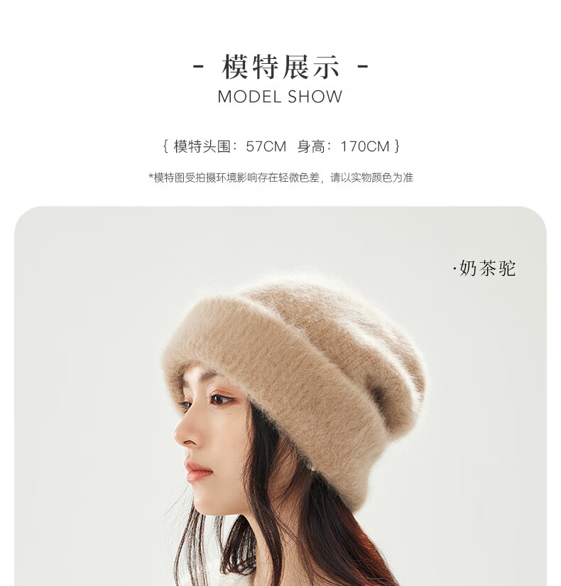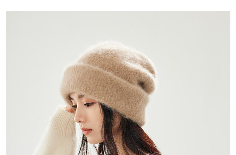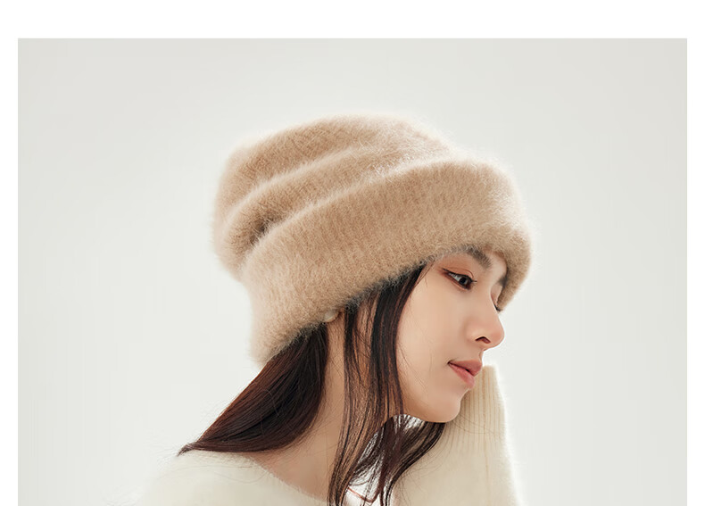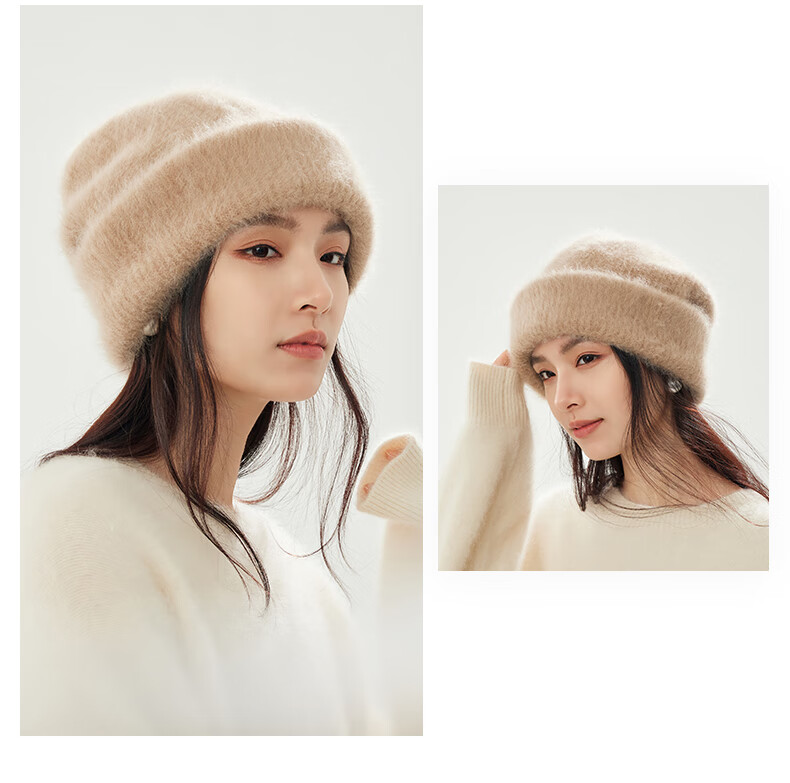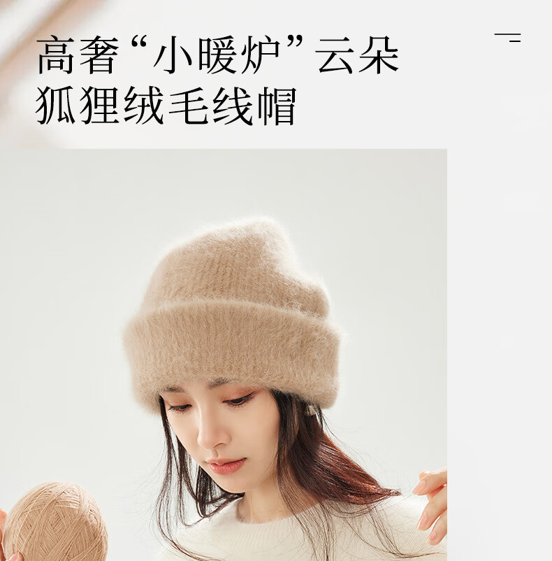 Siggi hat women's winter fox velvet knitted beanie, lightweight, warm, solid color, versatile, holiday gift for mom, milk tea camel, free gift box, super beautiful, super fairy, super fluffy, one size fits all (hat girth 55-60cm)
