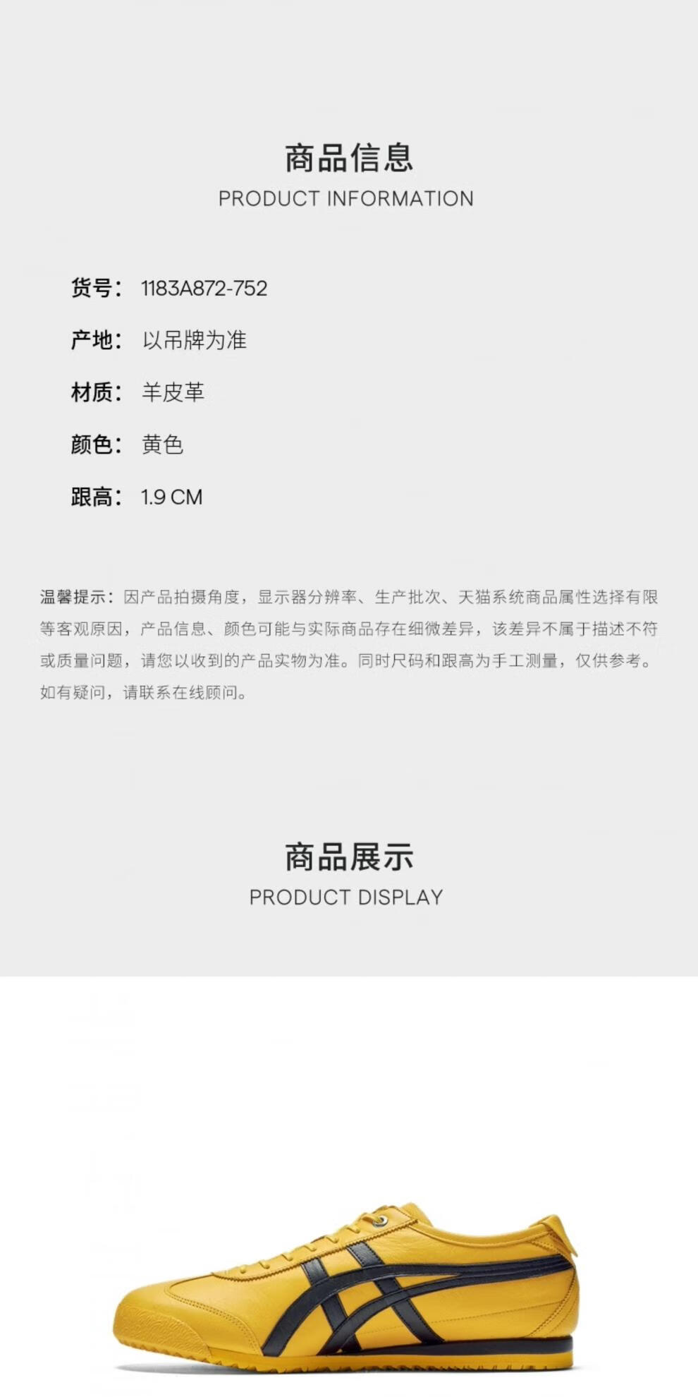Onitsuka Tiger Classic Onitsuka Tiger Classic MEXICO 66 SD Men's and Women's Casual Moral Training Shoes Official Authentic Yellow 40.5