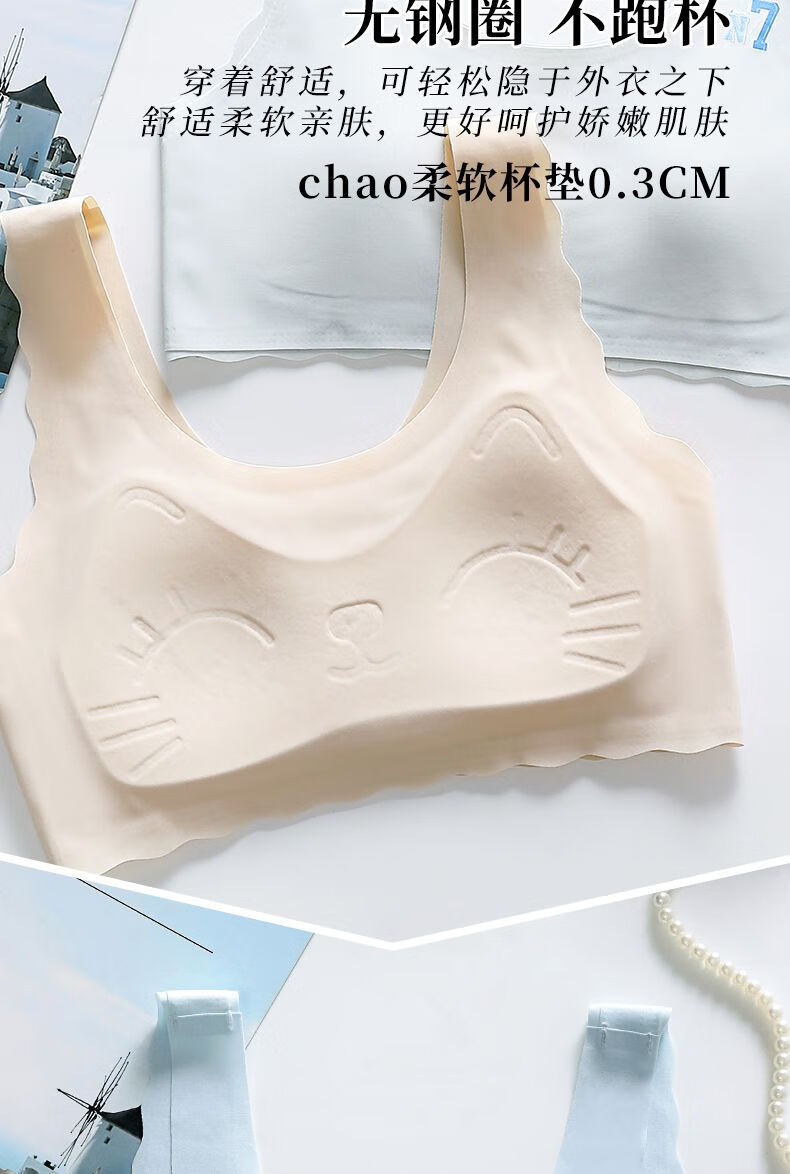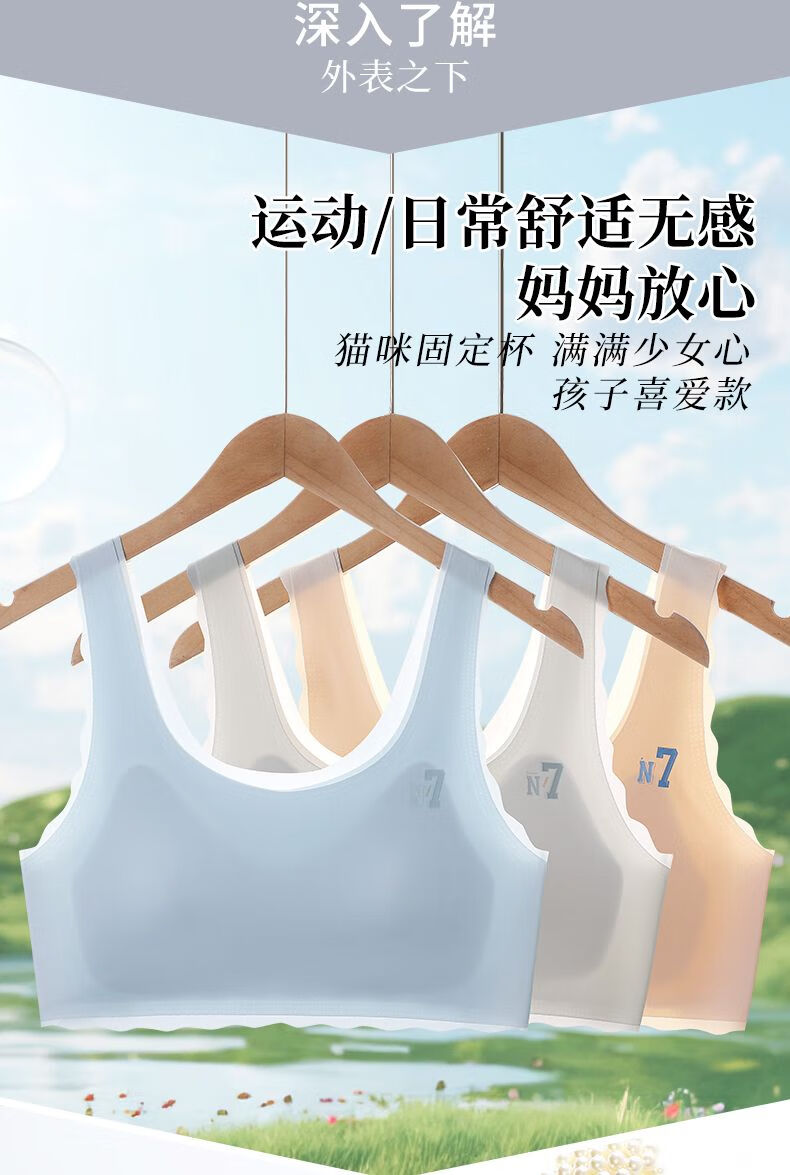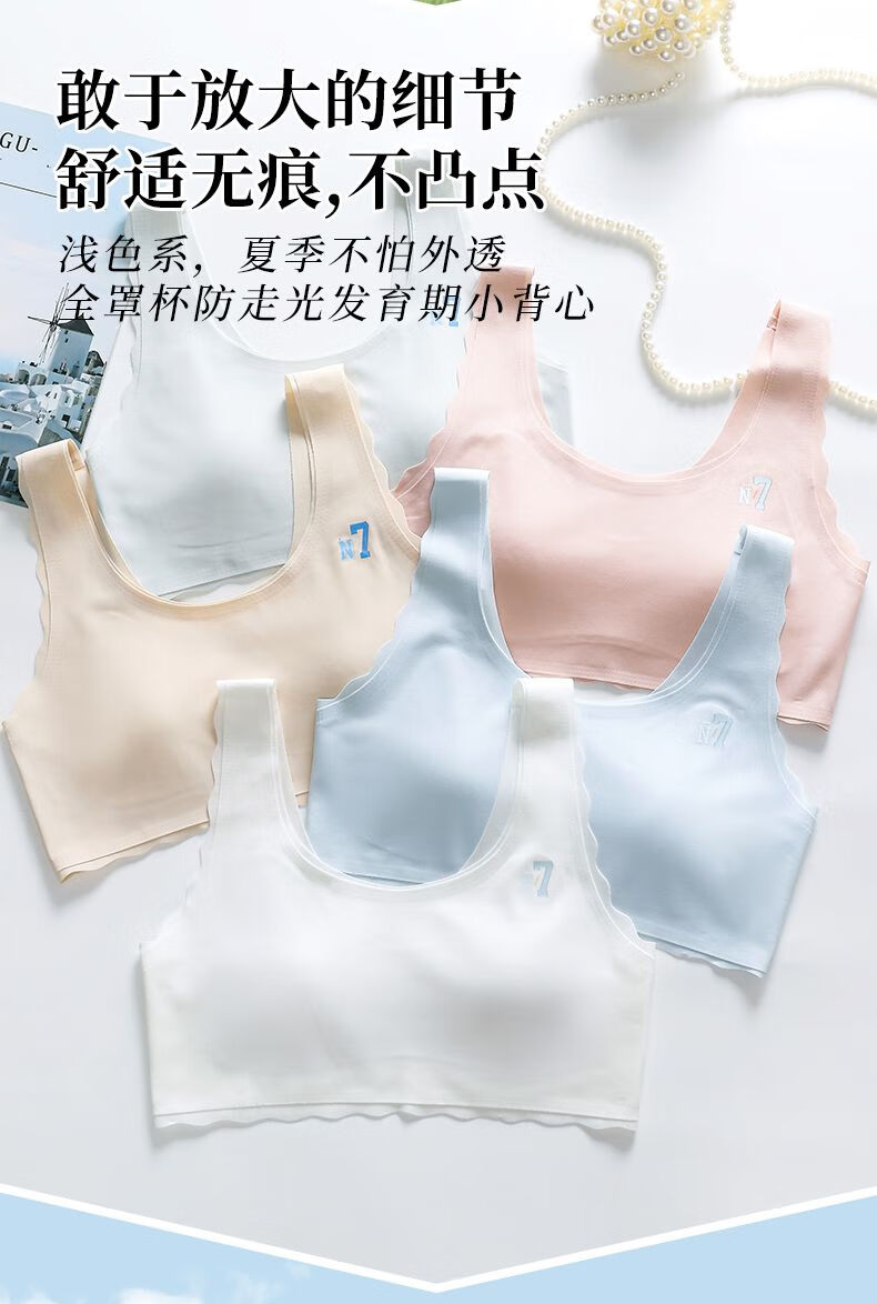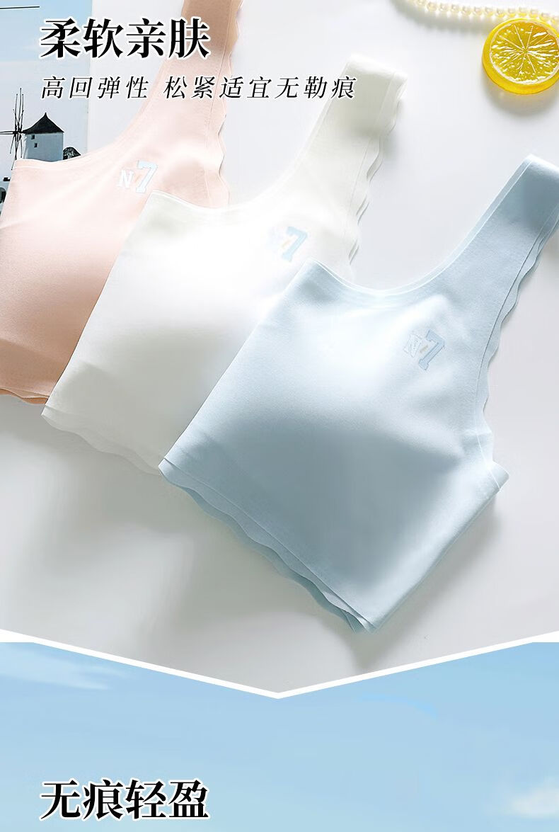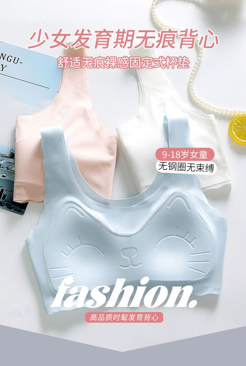Girls' underwear development puberty 9-18 years old seamless tube top children's primary school junior high school students bra fixed cup light pink + blue -3096# M 65-85Jin Jin equals 0.5 kg