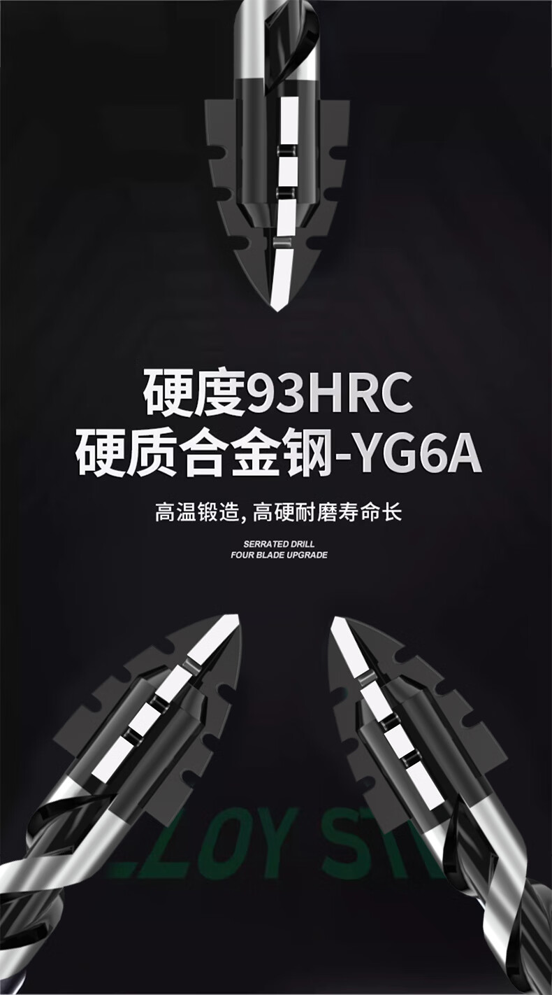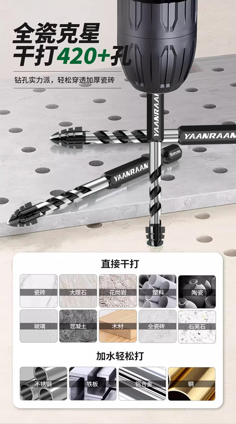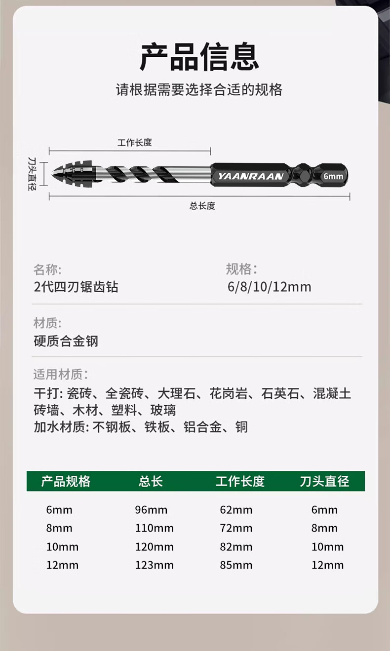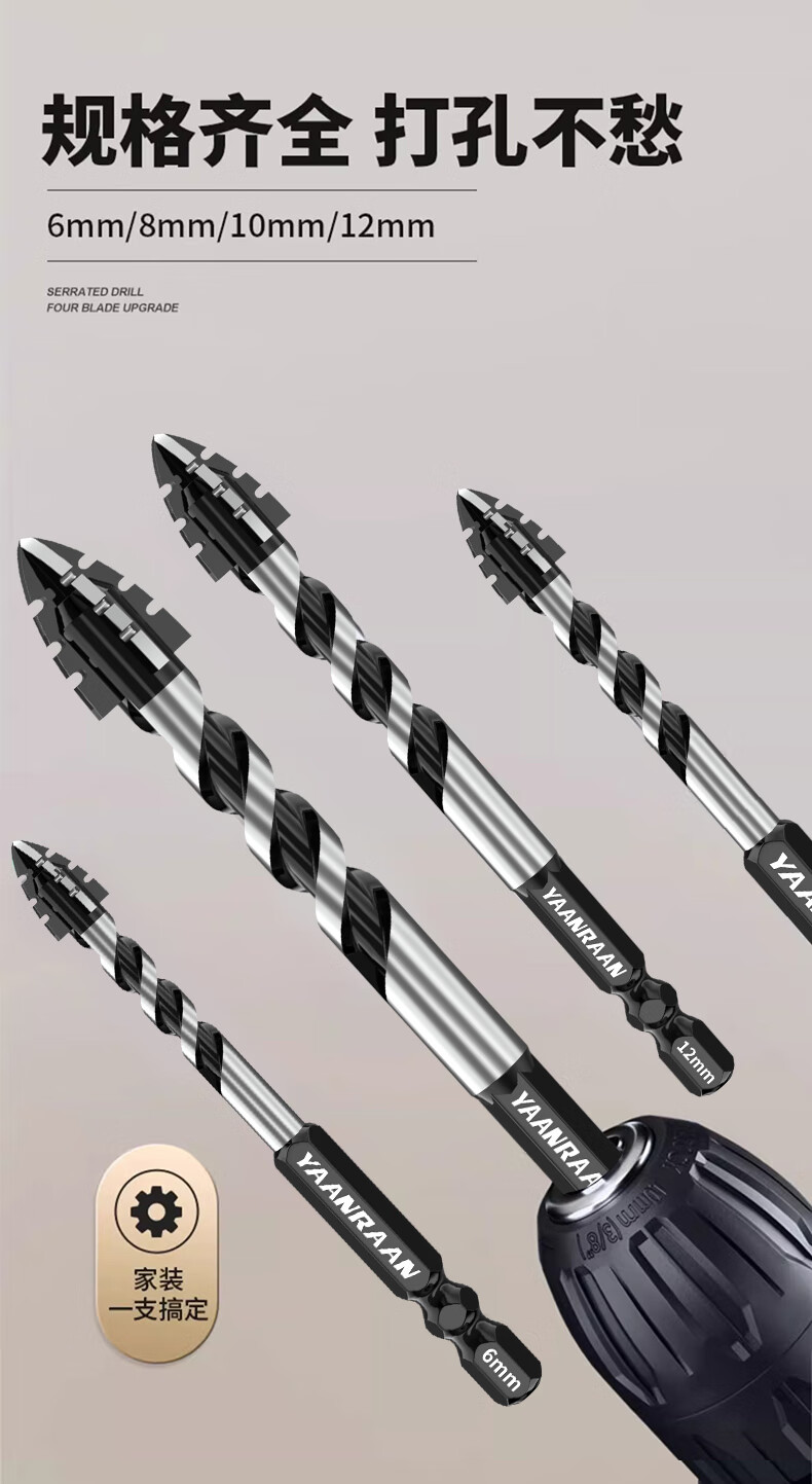 Yanran four-edged serrated eccentric drill bit for ceramic tile concrete drilling, sharp and impact-resistant, serrated eccentric drill 6+8+10+12mm