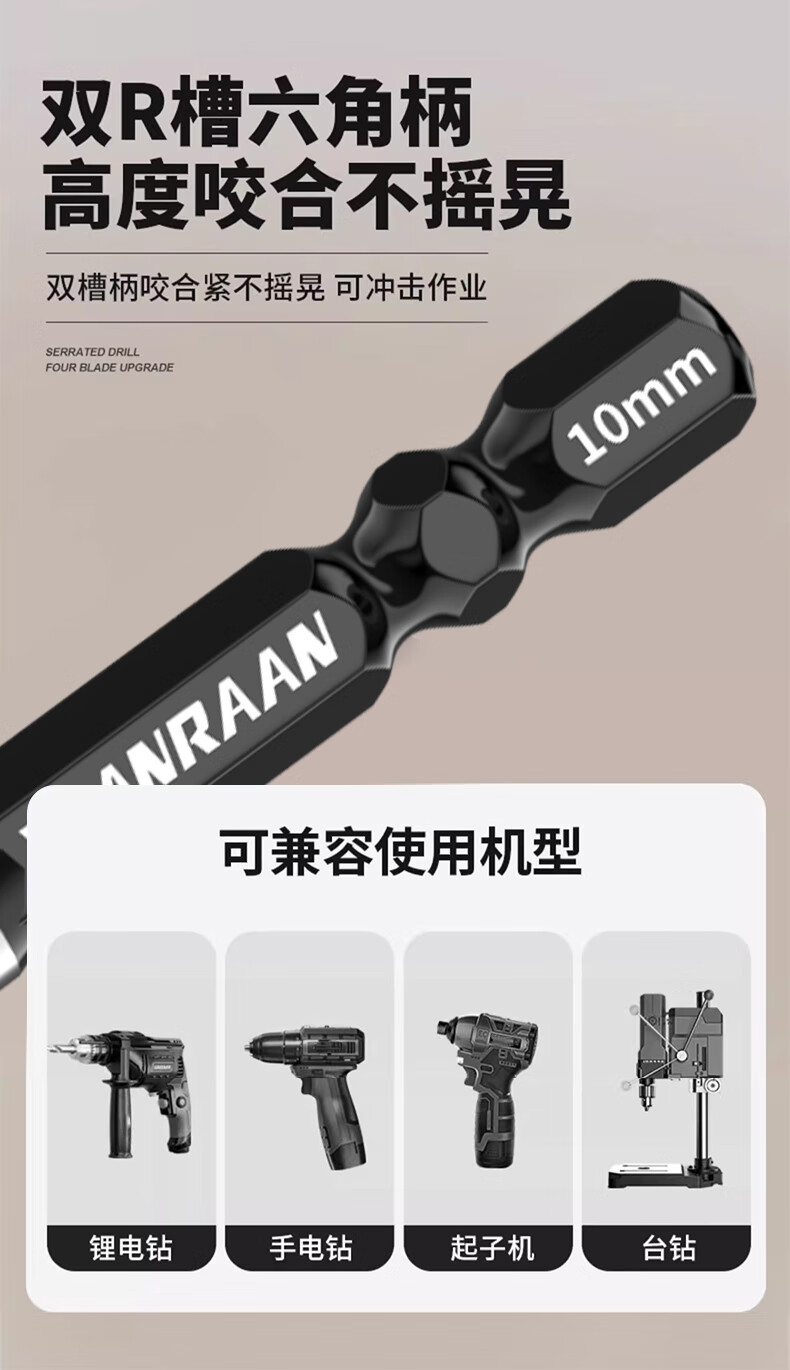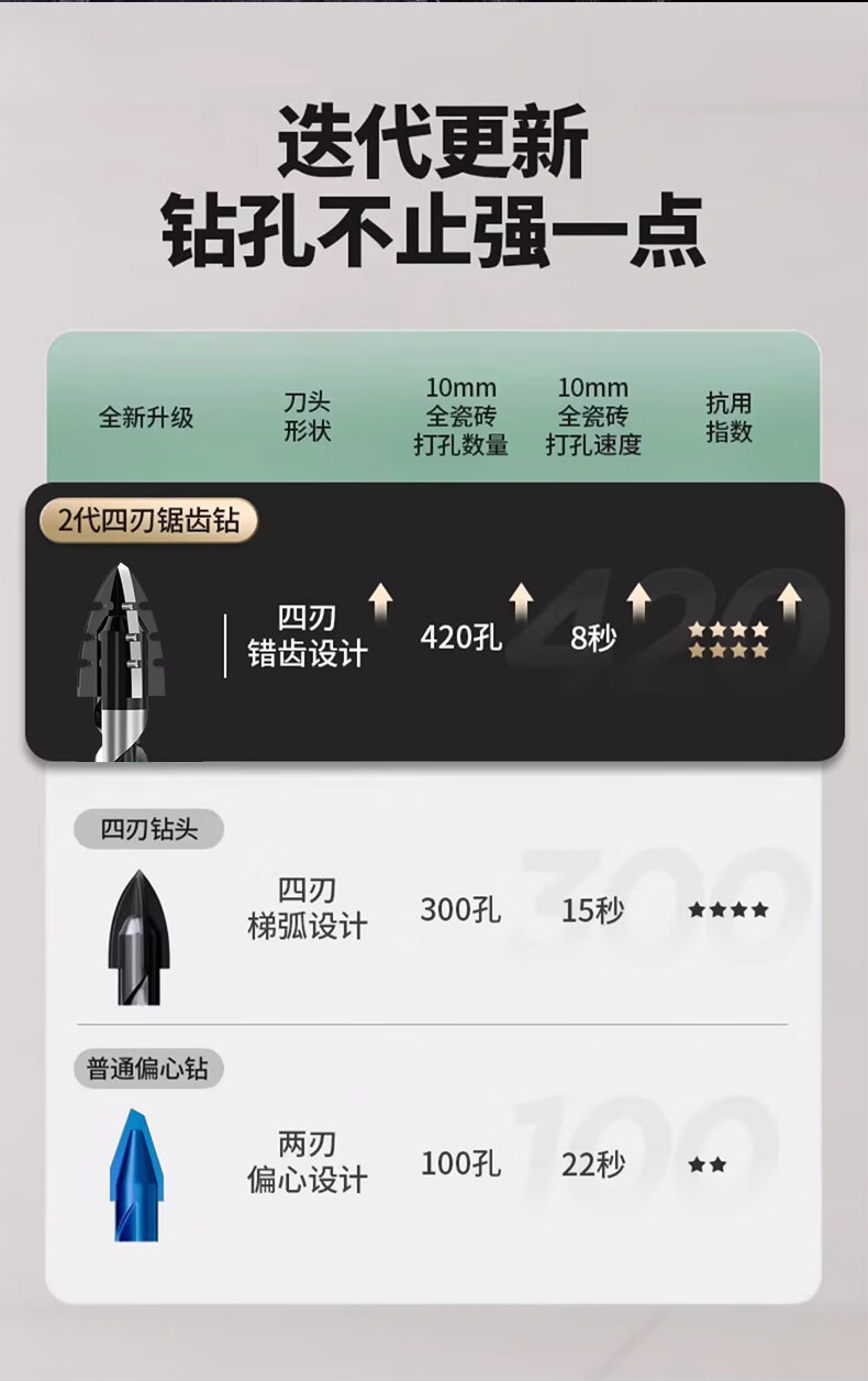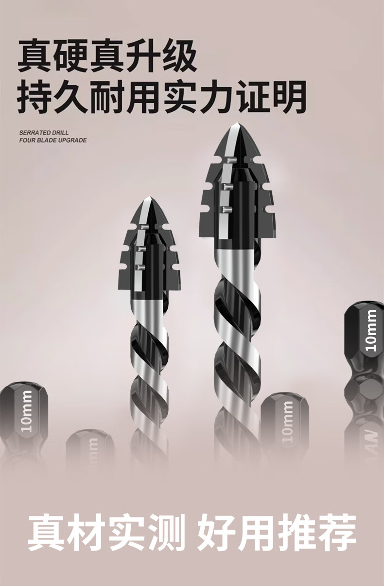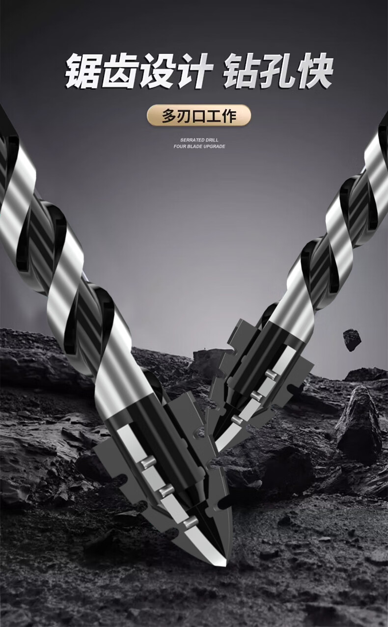 Yanran four-edged serrated eccentric drill bit for ceramic tile concrete drilling, sharp and impact-resistant, serrated eccentric drill 6+8+10+12mm