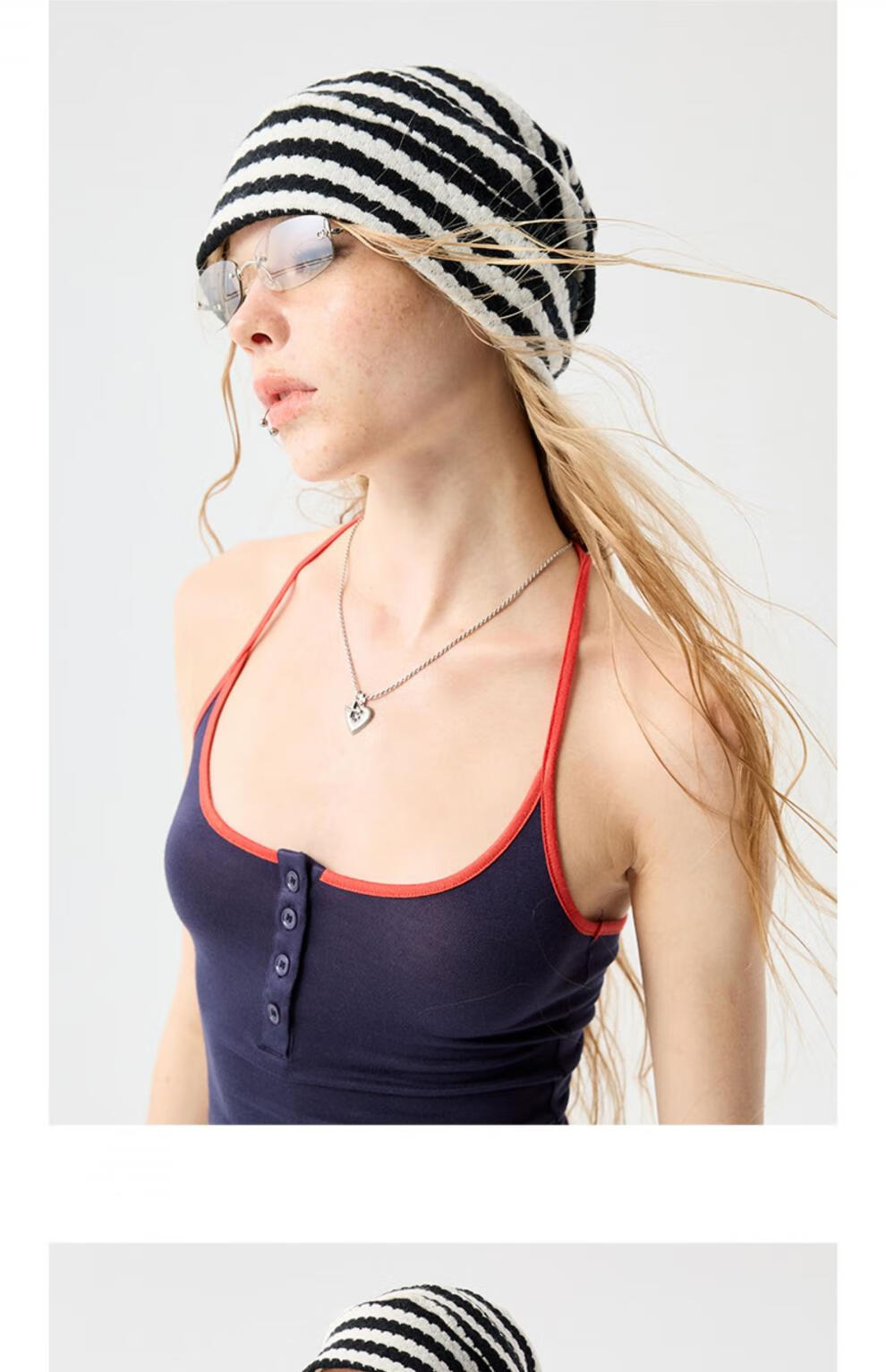 Shang Xuan black and white classic striped woolen hat for women, versatile autumn and winter warm knitted hat for couples, cold hat, Korean striped line