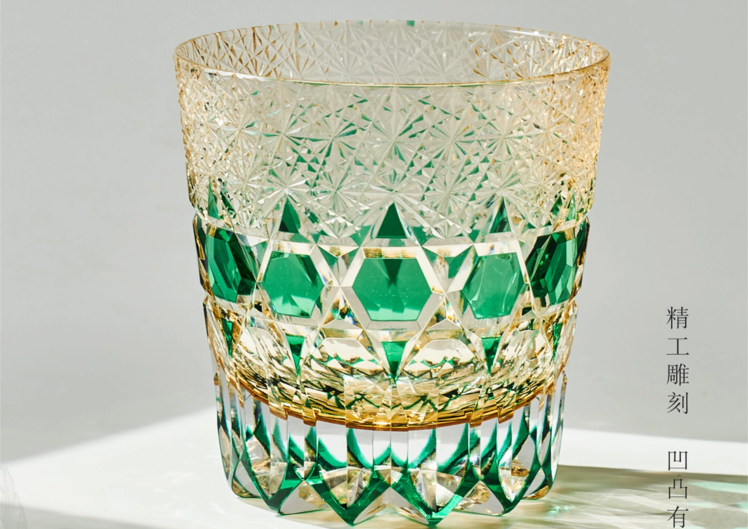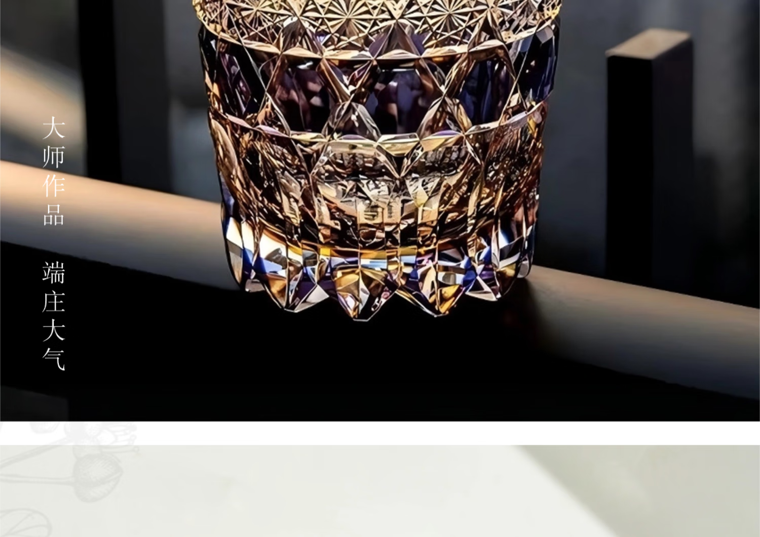 AURA LIFE purple fluorite Edo Kiriko hand-carved whiskey glass crystal glass foreign wine glass purple fluorite exquisite carving gift box 320ml 1 piece