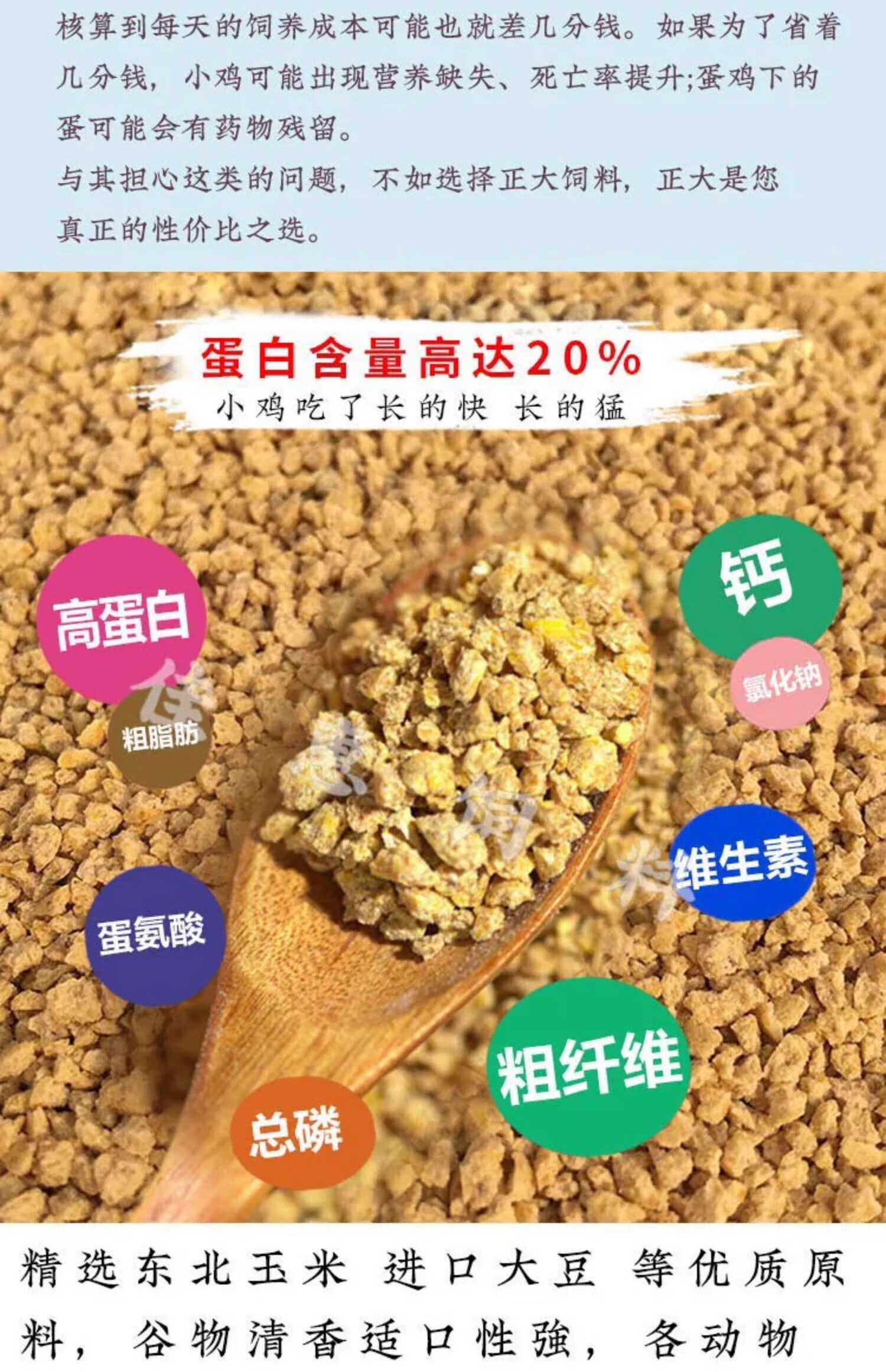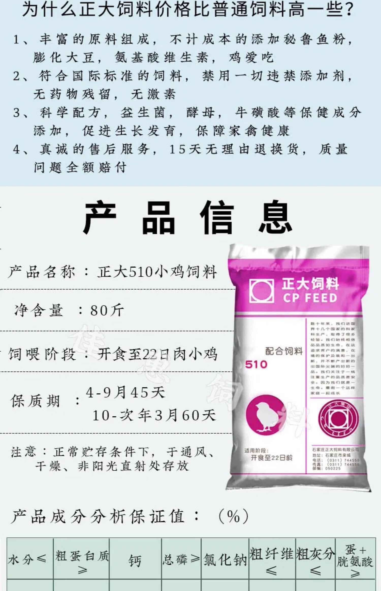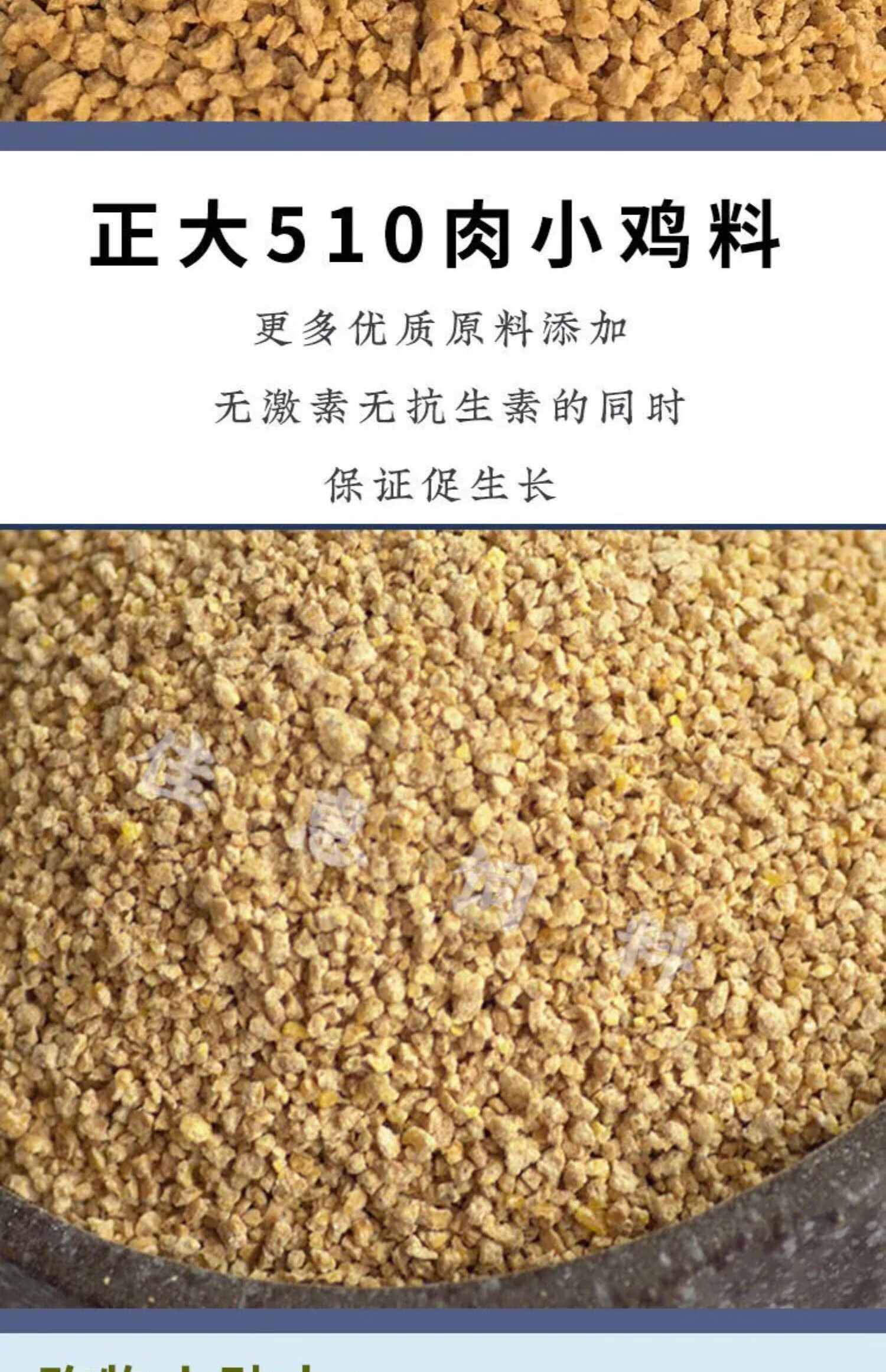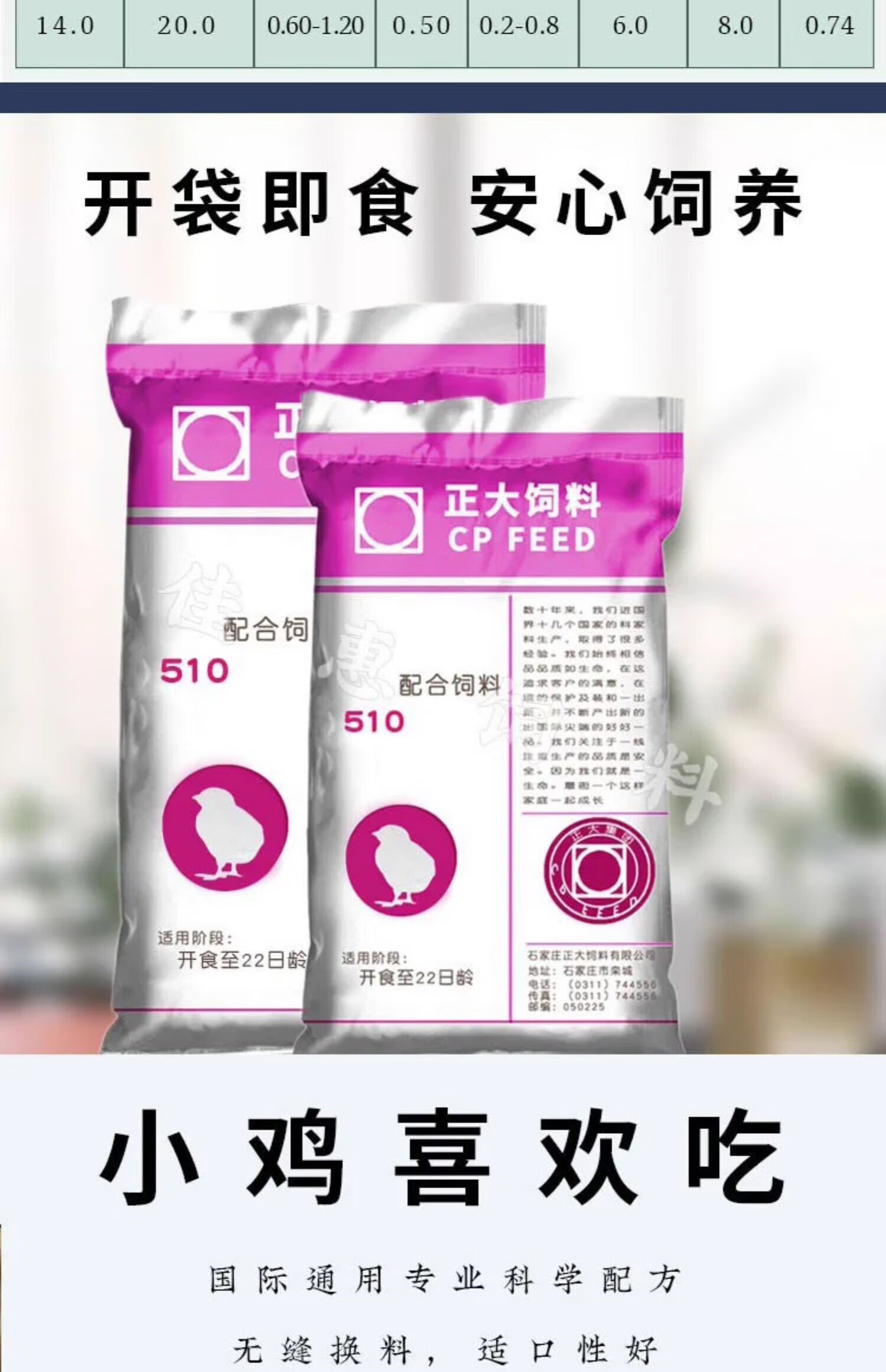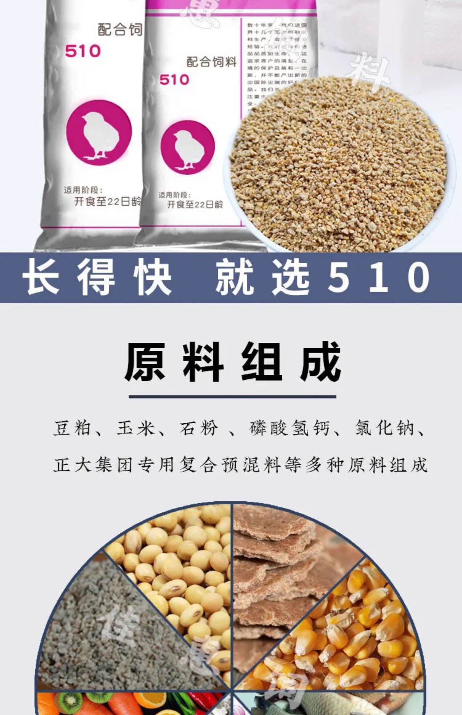 Zhengda 510 freshly hatched chicken feed, specially designed for 0-3 weeks of opening, small particles, high protein broiler breeding, Zhengda 523 medium chicken feed original package 5Jin Jin is equal to 0.5kg