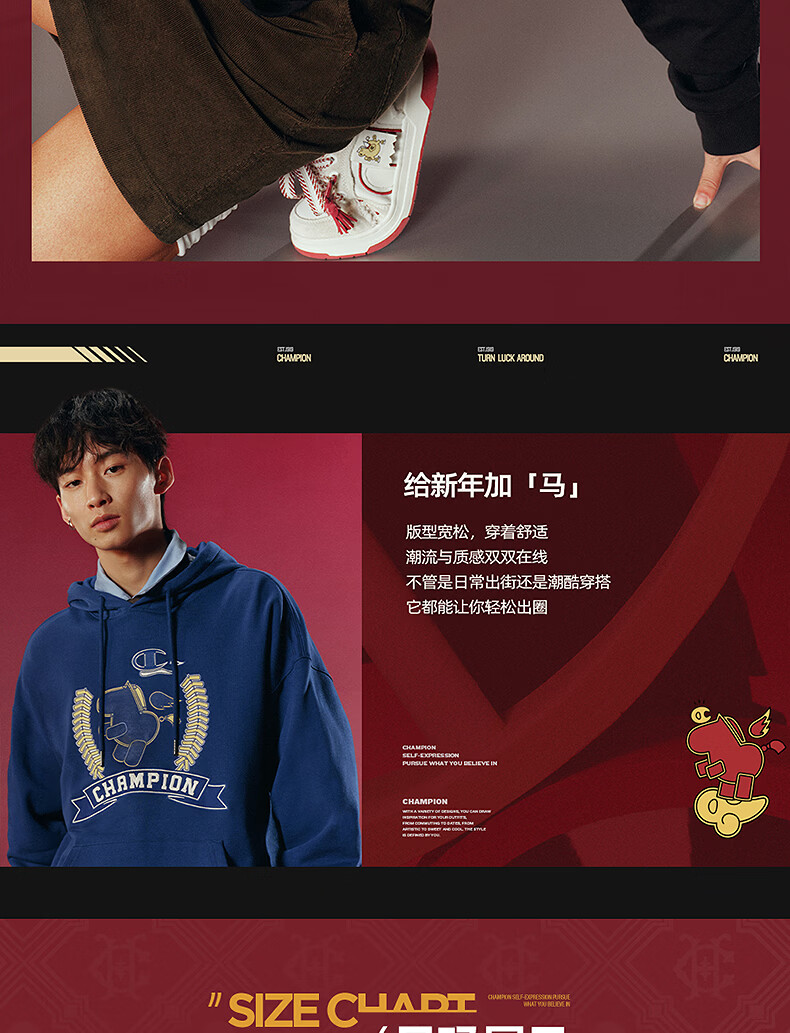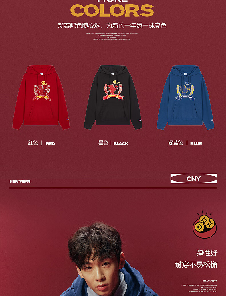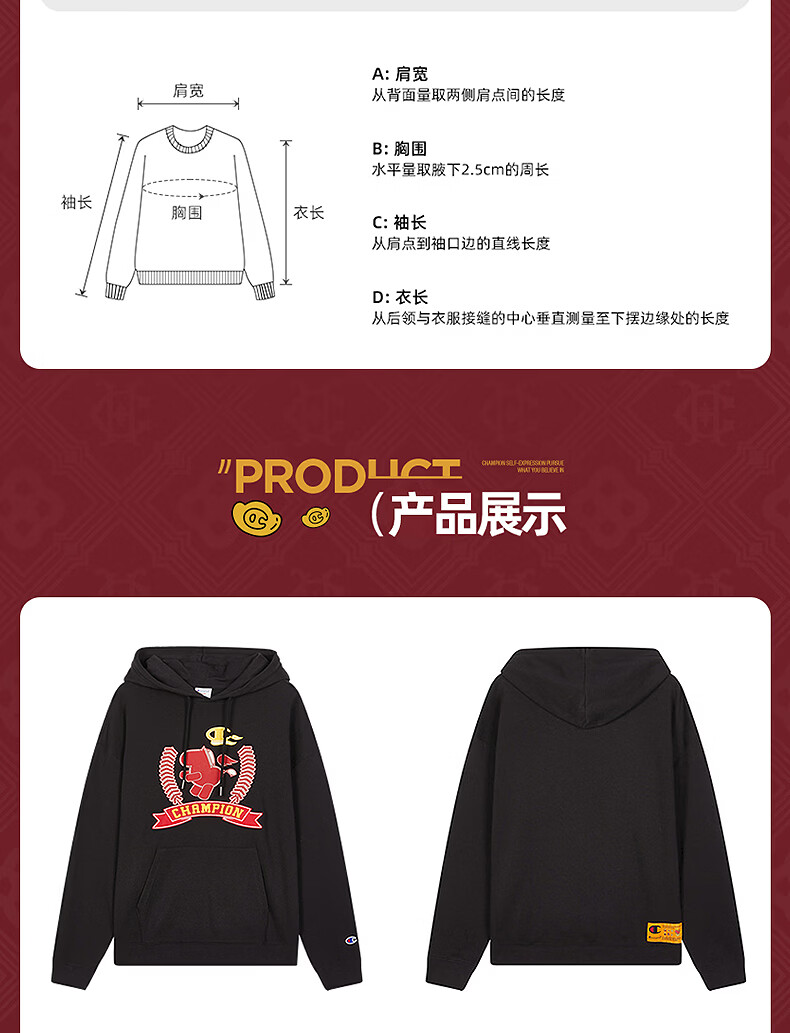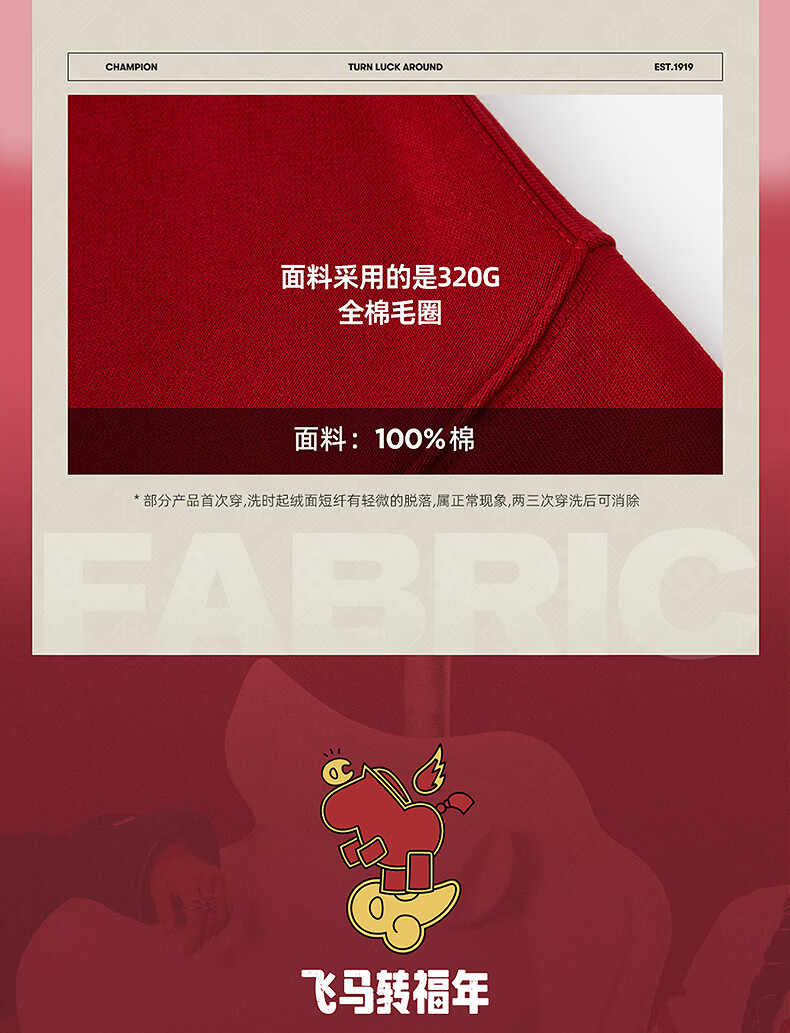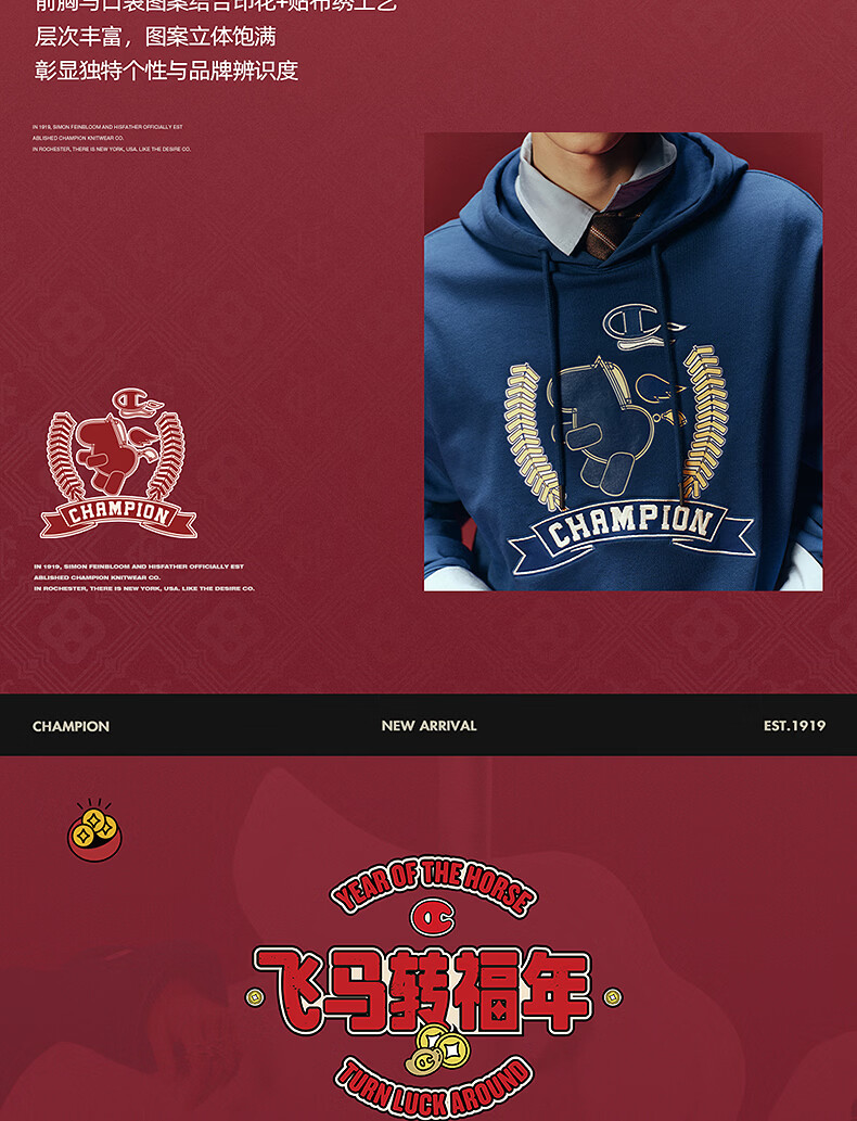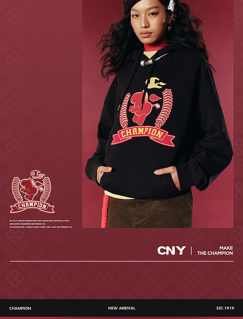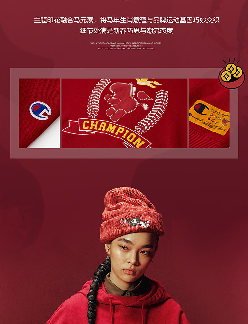 Champion Year of the Horse Series Champion Couple Hooded Sweatshirt Men's 2026 Spring New Red New Year Women's Red M