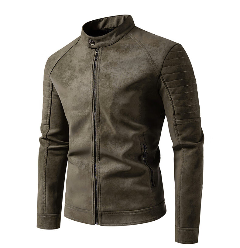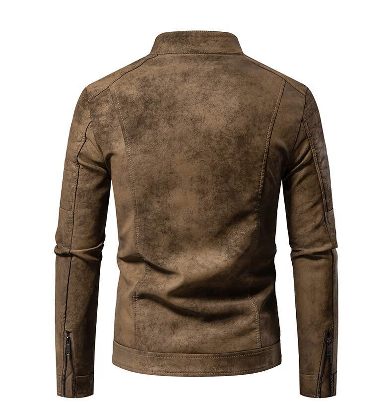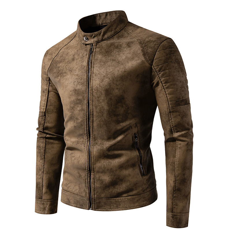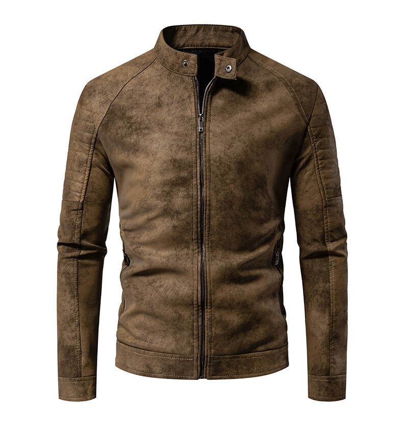 Pure (YISHion) new suede casual leather jacket men's motorcycle style overcomes the sense of luxury and handsome stand-up collar leather jacket autumn and winter QCC-5892 Brown 3XL