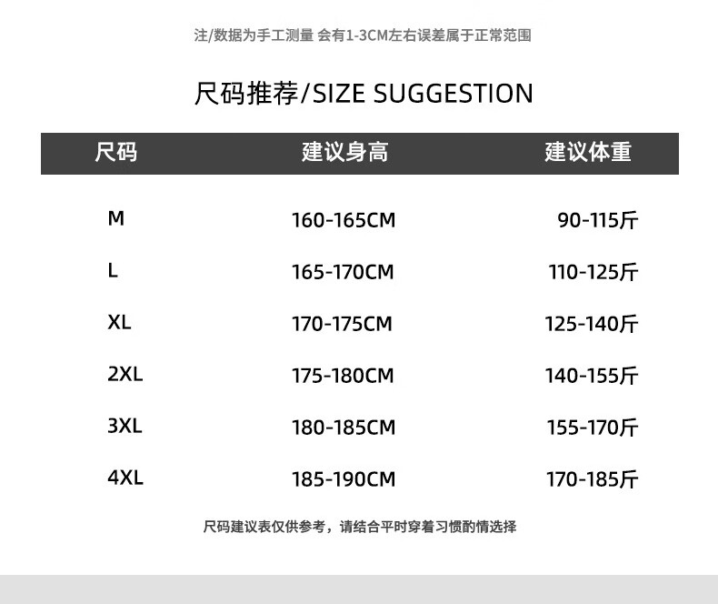 China (cm) 165 / 88-90 170 / 96-98 175 / 108-110 180 / 118-122 185 / 126-130