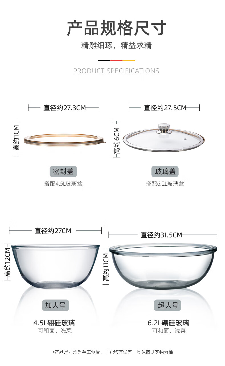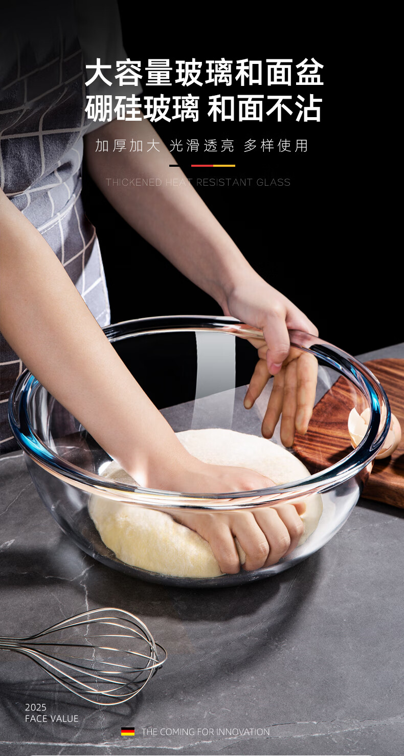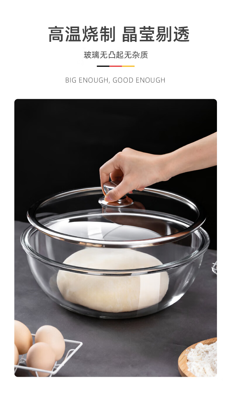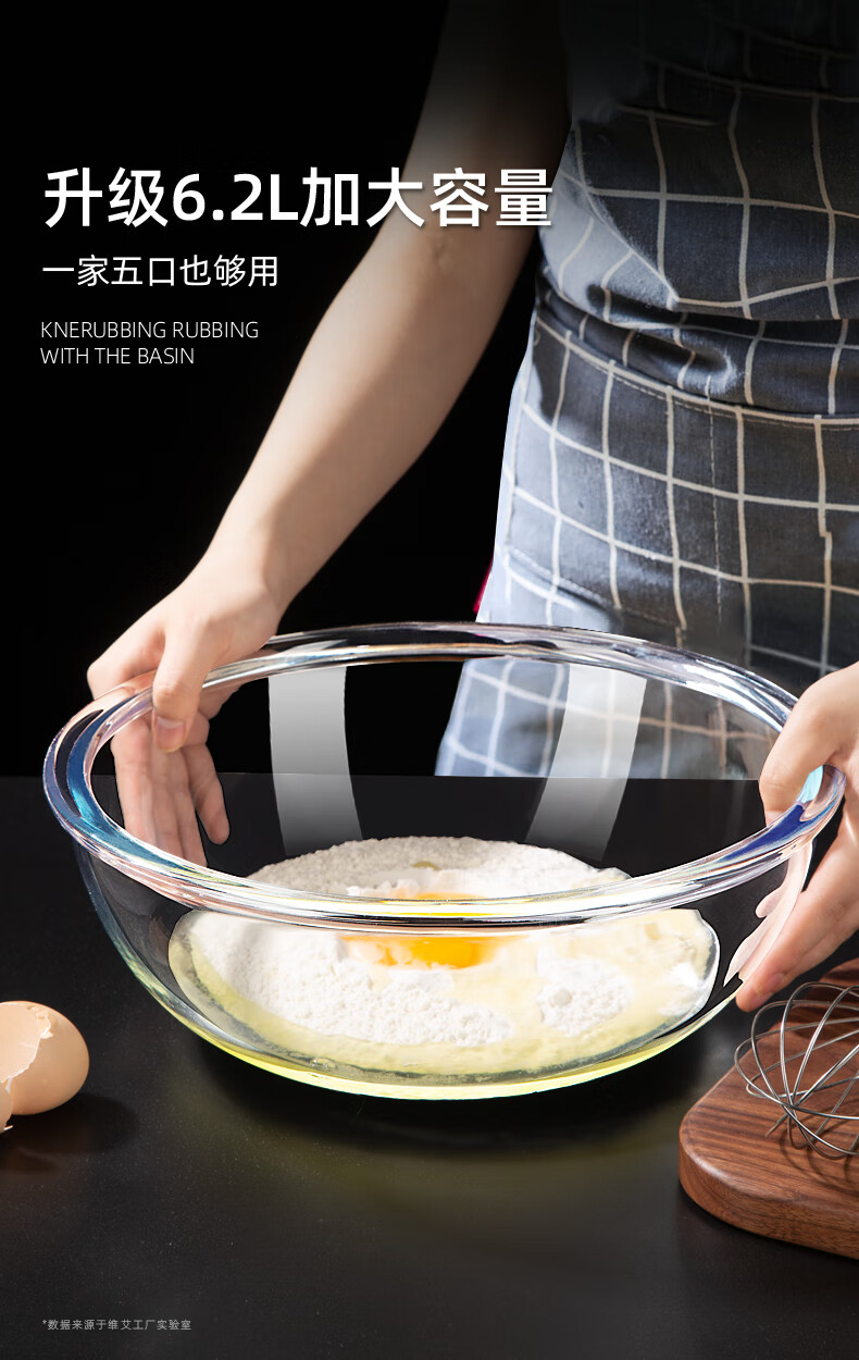 Newair special mixing bowl with lid, glass bowl for kneading dough, beating eggs, proofing, fermentation and baking. Kitchen food-grade cooking for everyone. Large capacity and thickened. 6.2L mixing basin + tempered glass lid. No Specifications.
