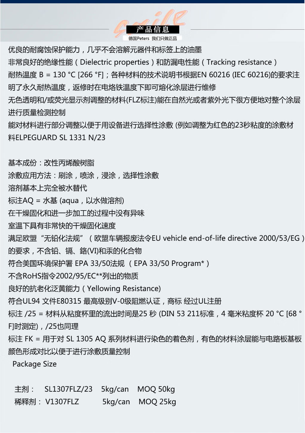 SL1307FLZ coating insulating coating conformal paint UL flame retardant certification 5KG 1KG packaging