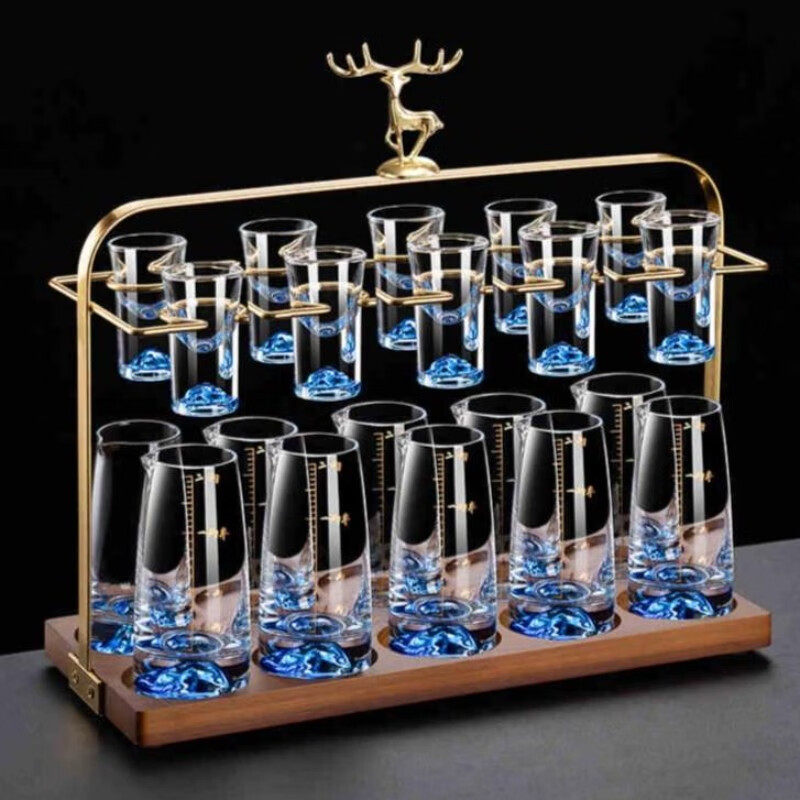 Light luxury quality white wine glass set crystal glass wine dispenser household high-end wine glass one-cup bullet cup Blue Mountain 6 pots 6 cups + rotating crystal stand