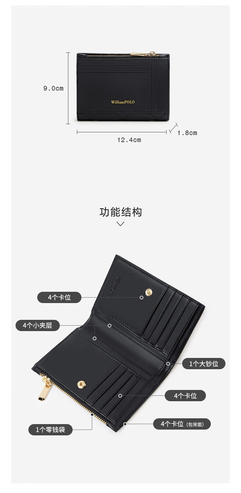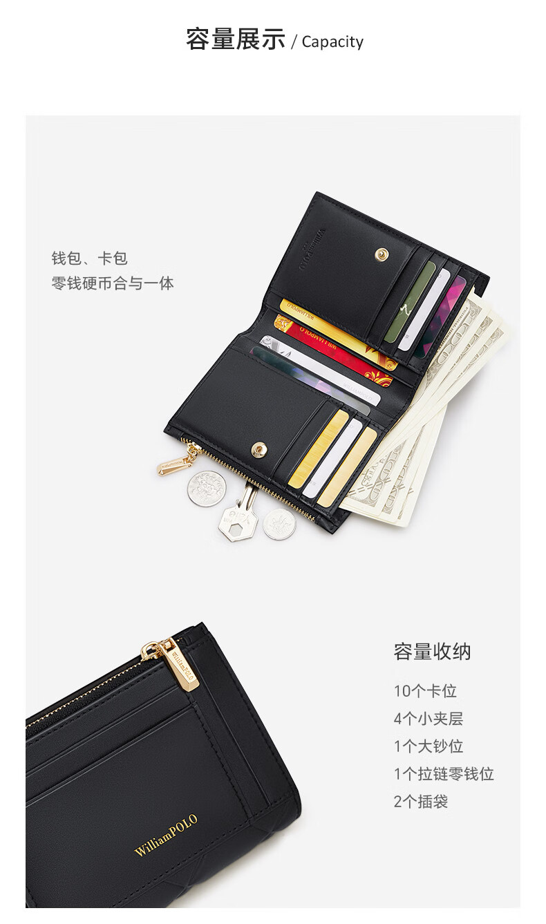 WILLIAMPOLO Emperor Paul Wallet Women's 2025 New Wallet Card Bag All-in-one Women's Simple Small Bag Coin Purse Glacier Silver