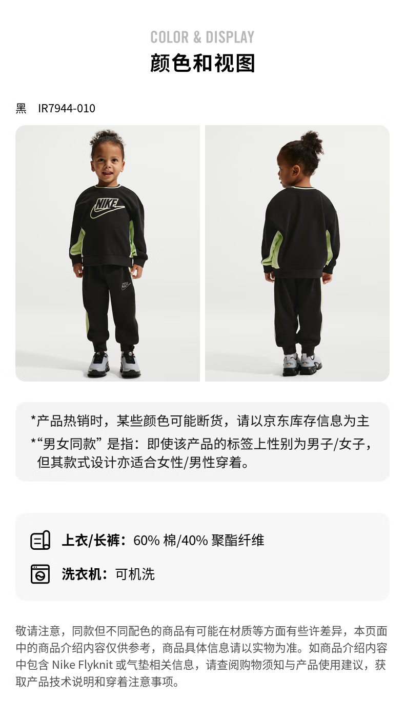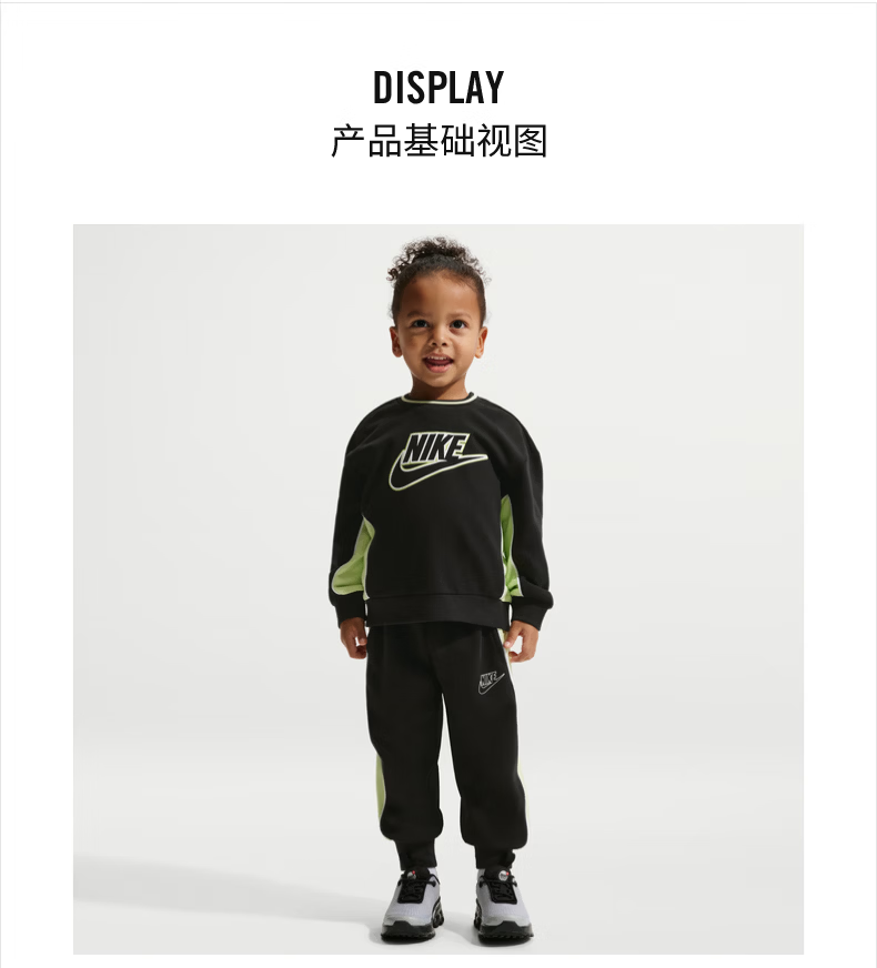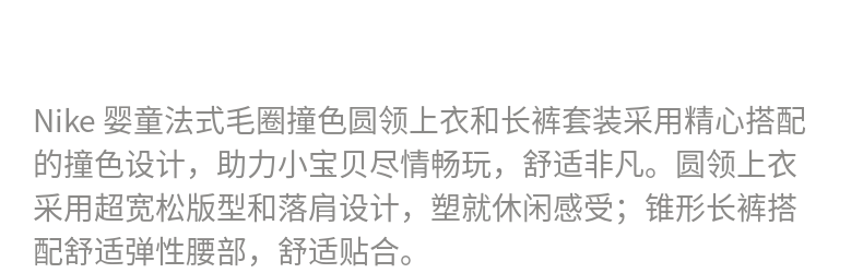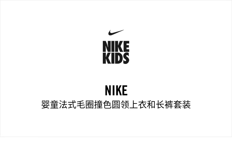 Nike Infant French Terry Contrast Color Round Neck Top and Pants Set Spring New Boys NIKE IR7944 010 Black 100cm 3T