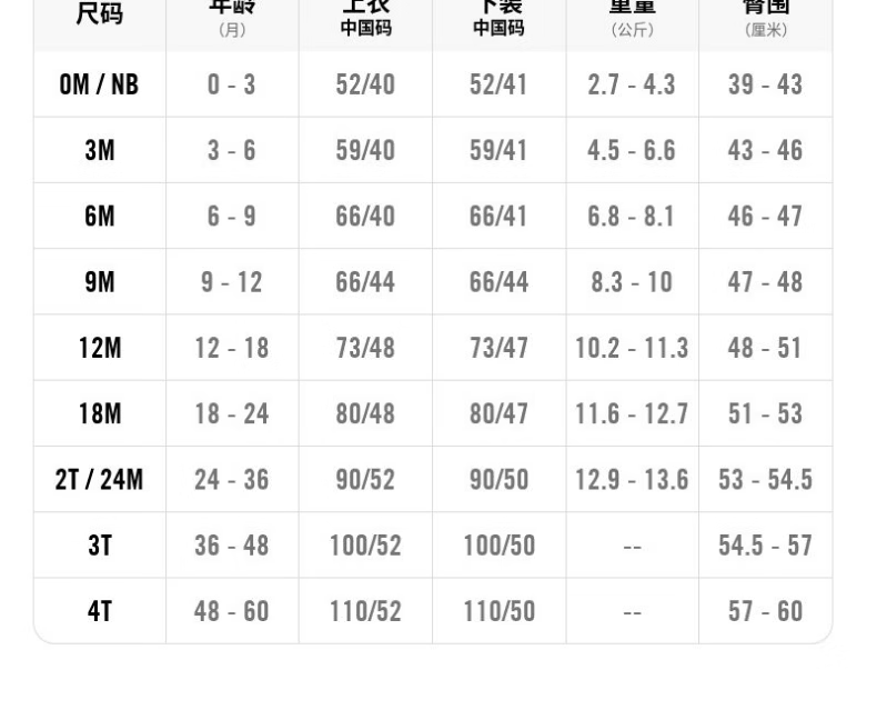 China (cm) 160-165/84-86 165-170 / 88-90 167-172 / 92-96 168-173 / 98-102 170-176 / 106-110