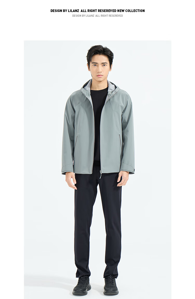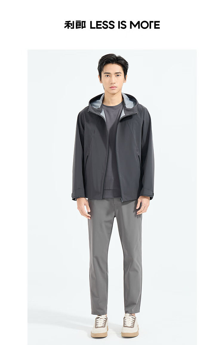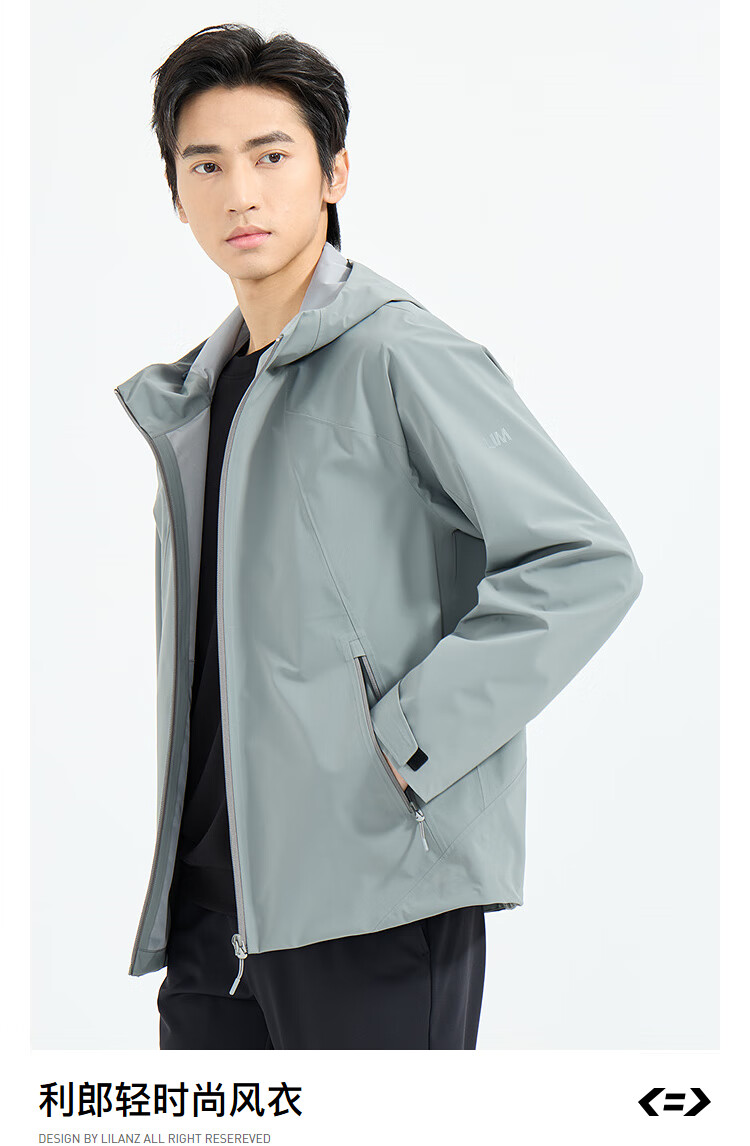 利郎轻时尚男装【商场同款】风衣男连帽弹力抗皱易打理通勤防风外套 中灰绿(1K) XL (175)