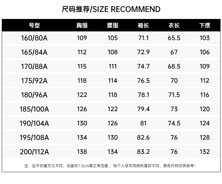 China (cm) 160-165/84-86 165-170 / 88-90 167-172 / 92-96 168-173 / 98-102 170-176 / 106-110