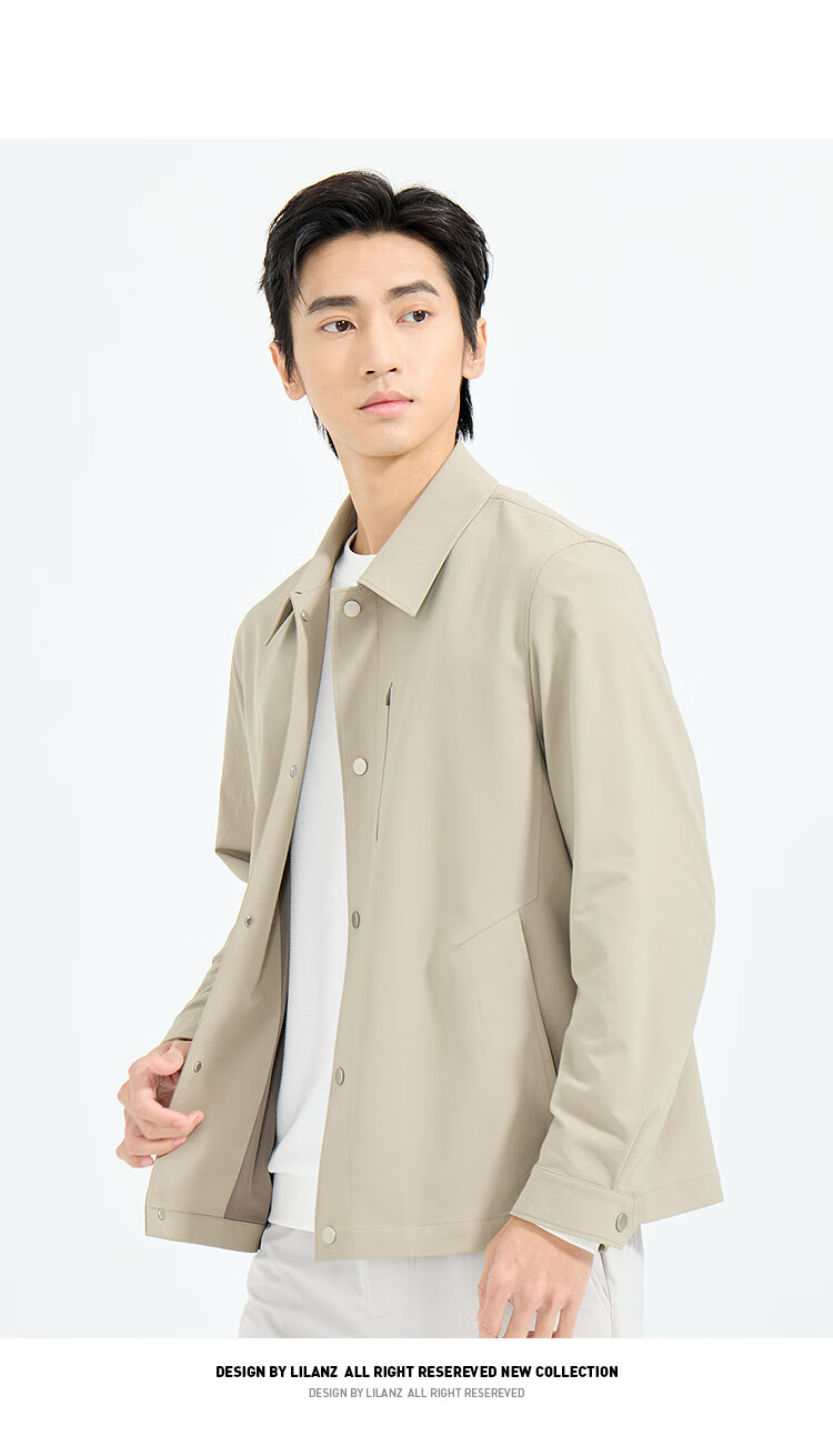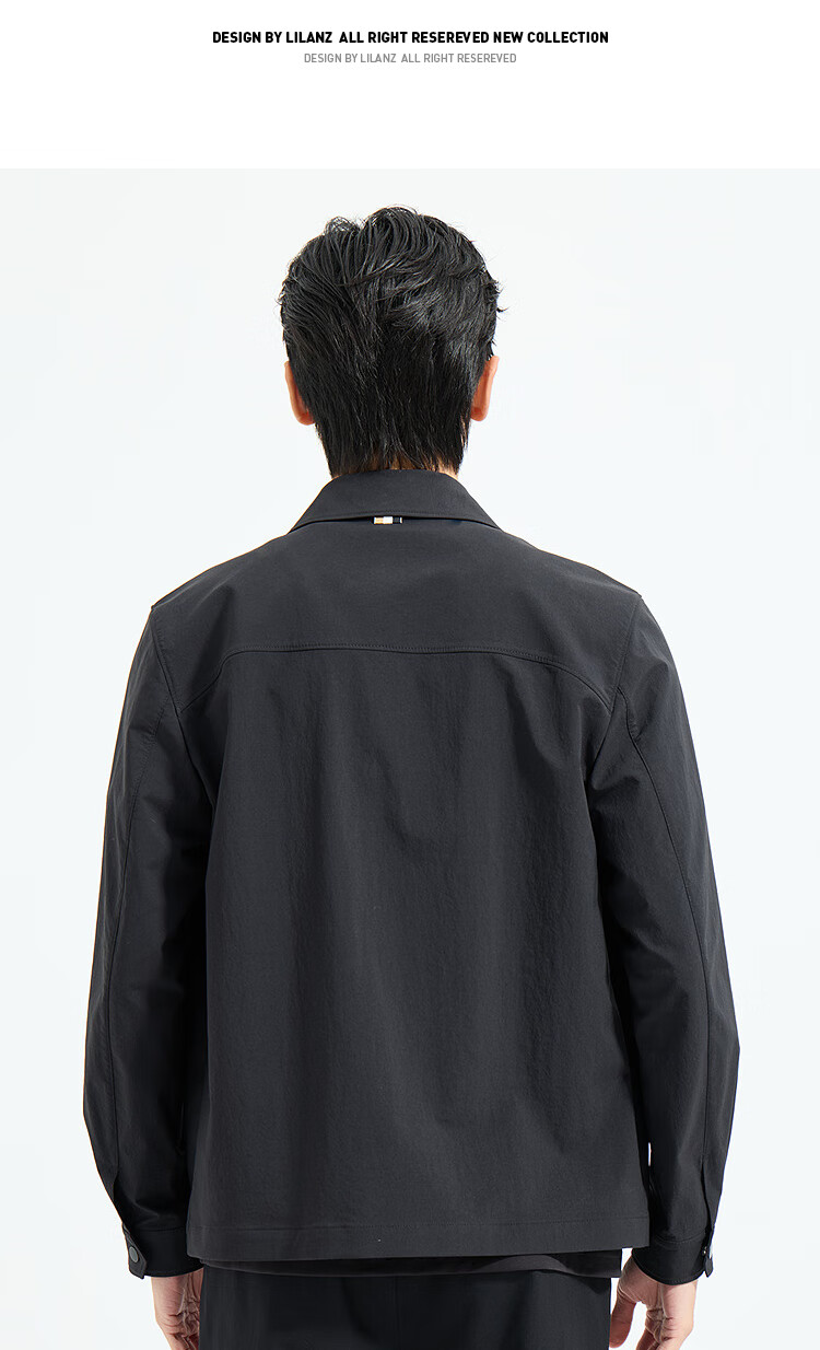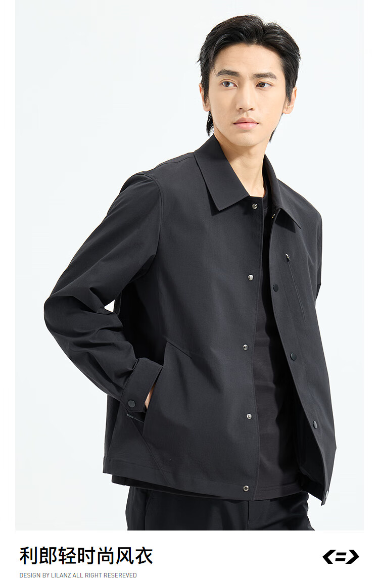 LiLang Light Fashion Men's Clothing Shopping Mall Same Style Windbreaker Men's Lapel Anti-Wrinkle Easy-Care Commuting Windproof Work Jacket Black (1H) M (165)