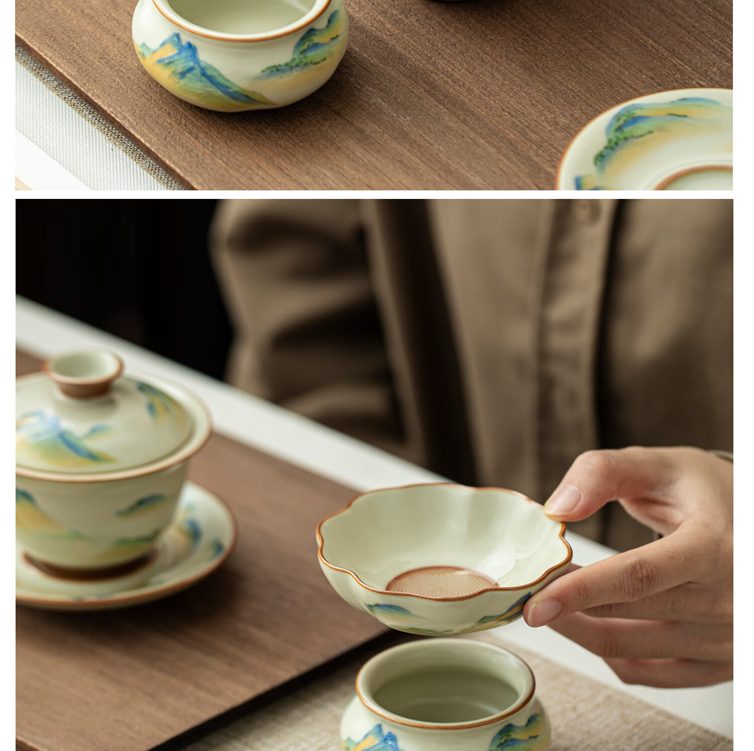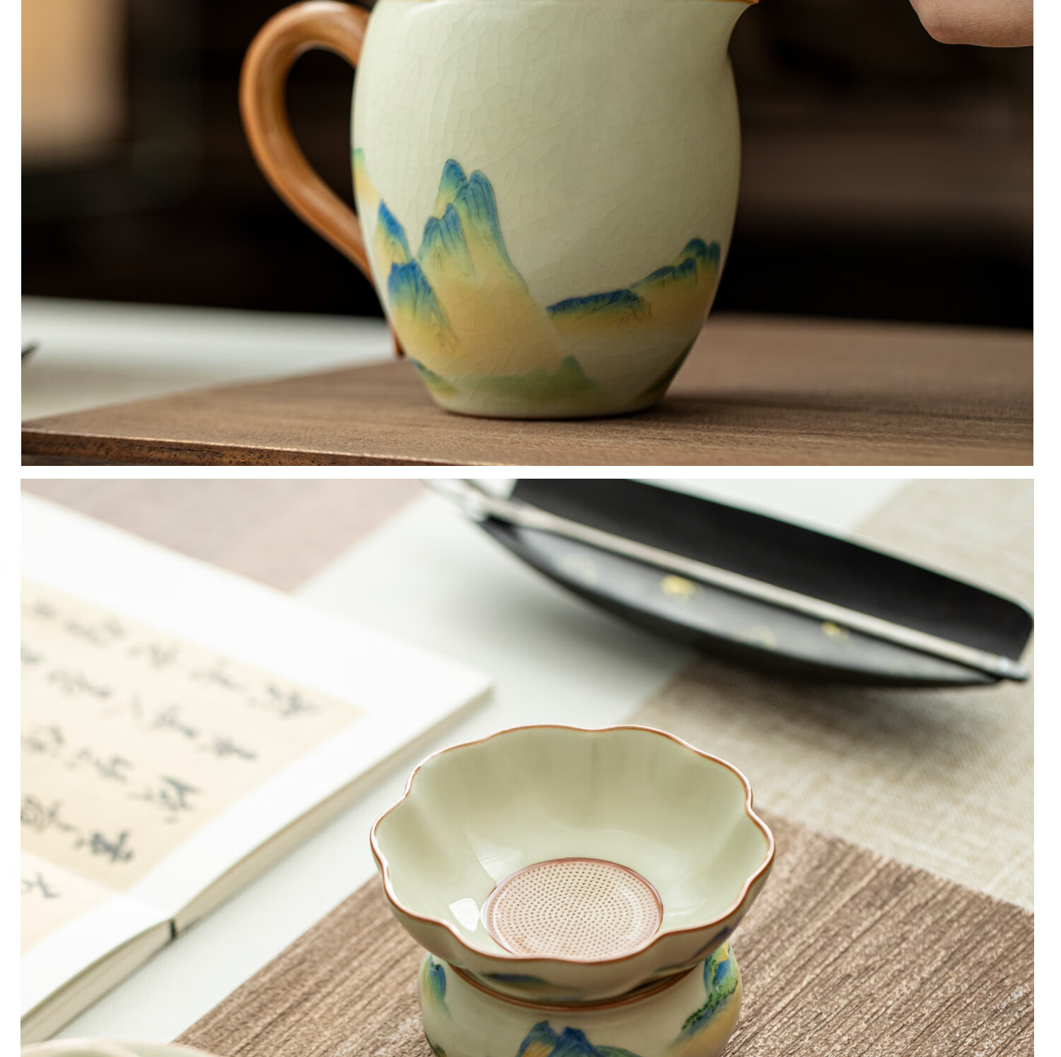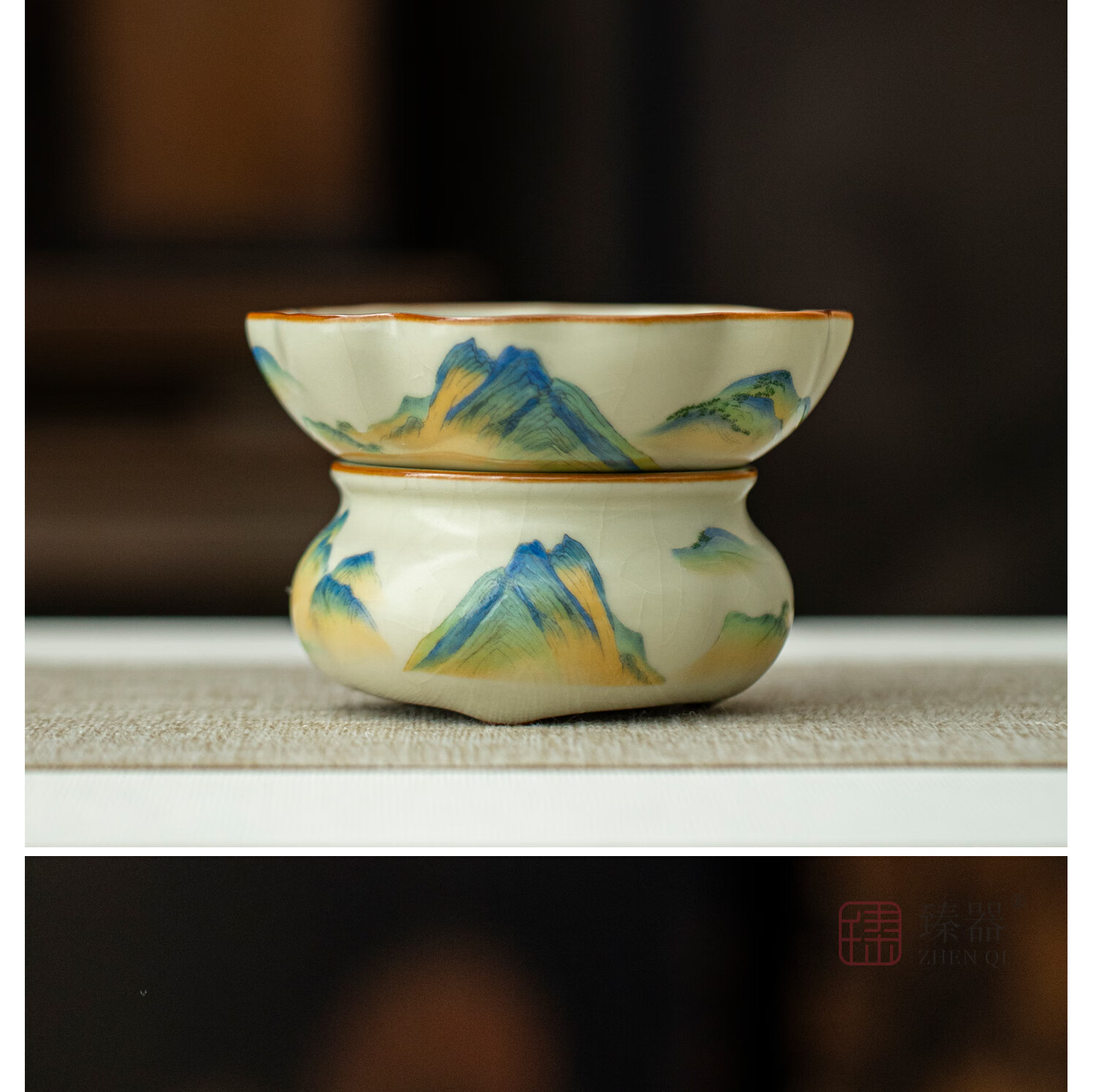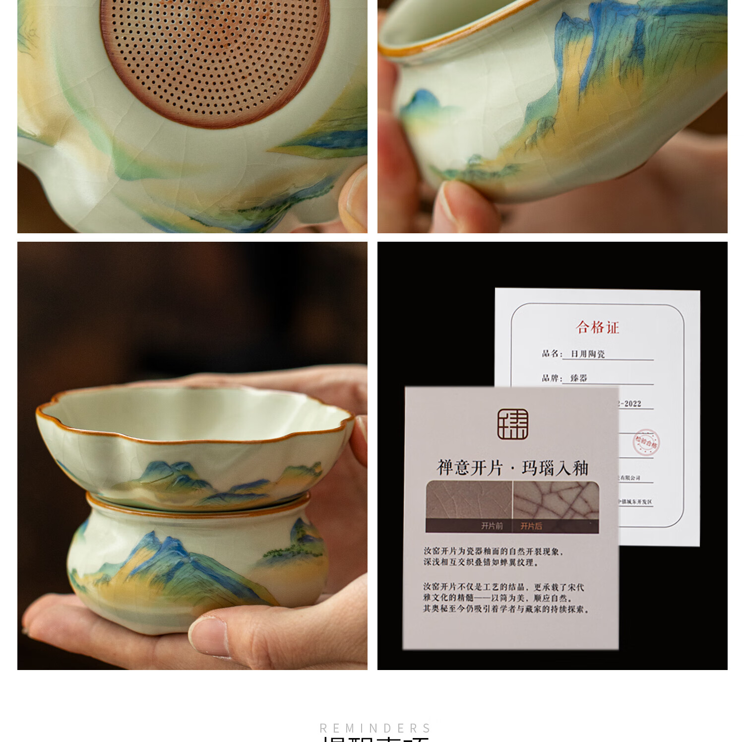 Zhenqi Ru Kiln Qianli Jiangshan Tea Filter Tea Leather Integrated Ceramic Tea Tea Separator Filter Tea Brewing Funnel Tea Water Separator Ru Kiln | Qianli Jiangshan | Tea Filter
