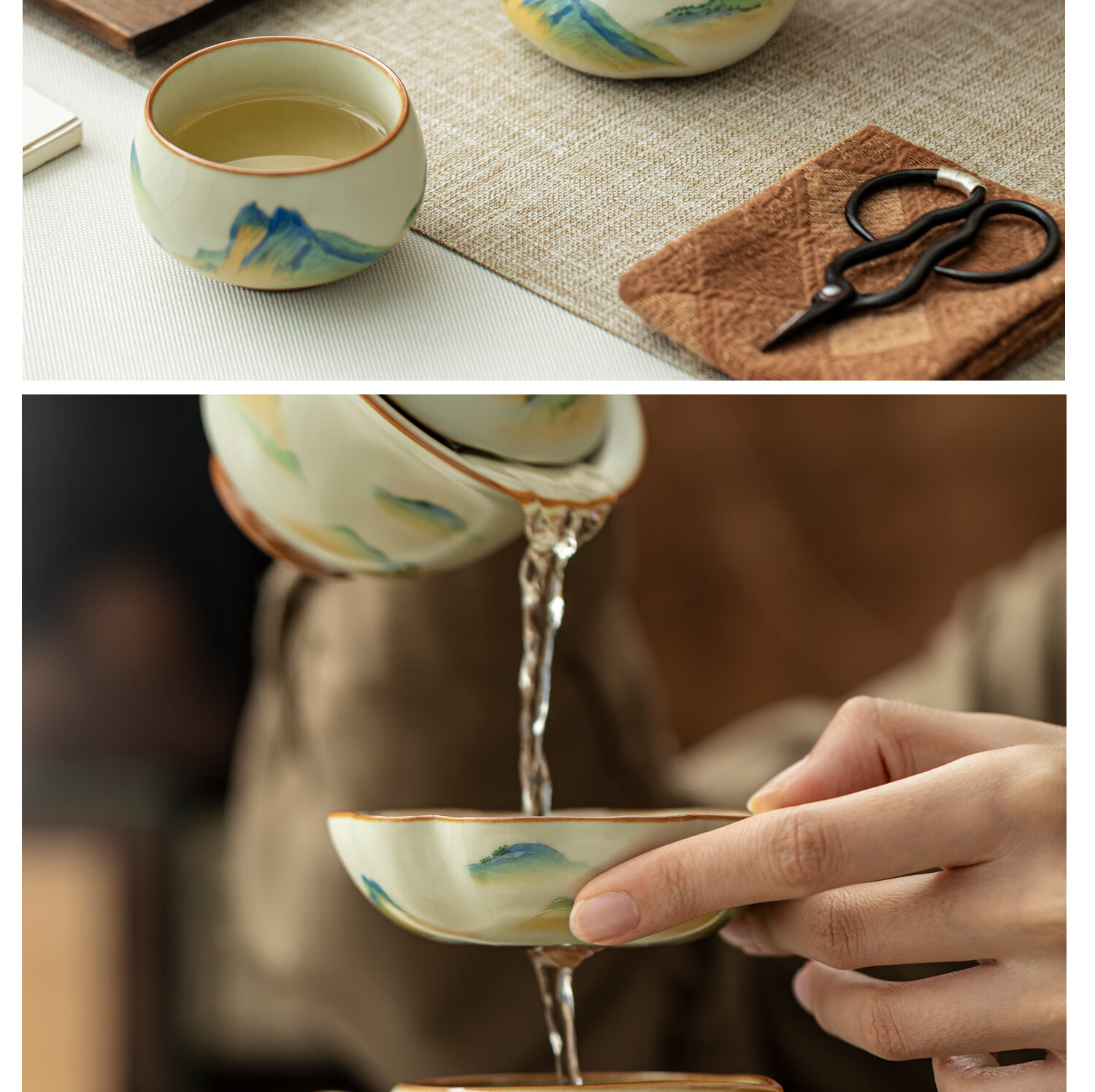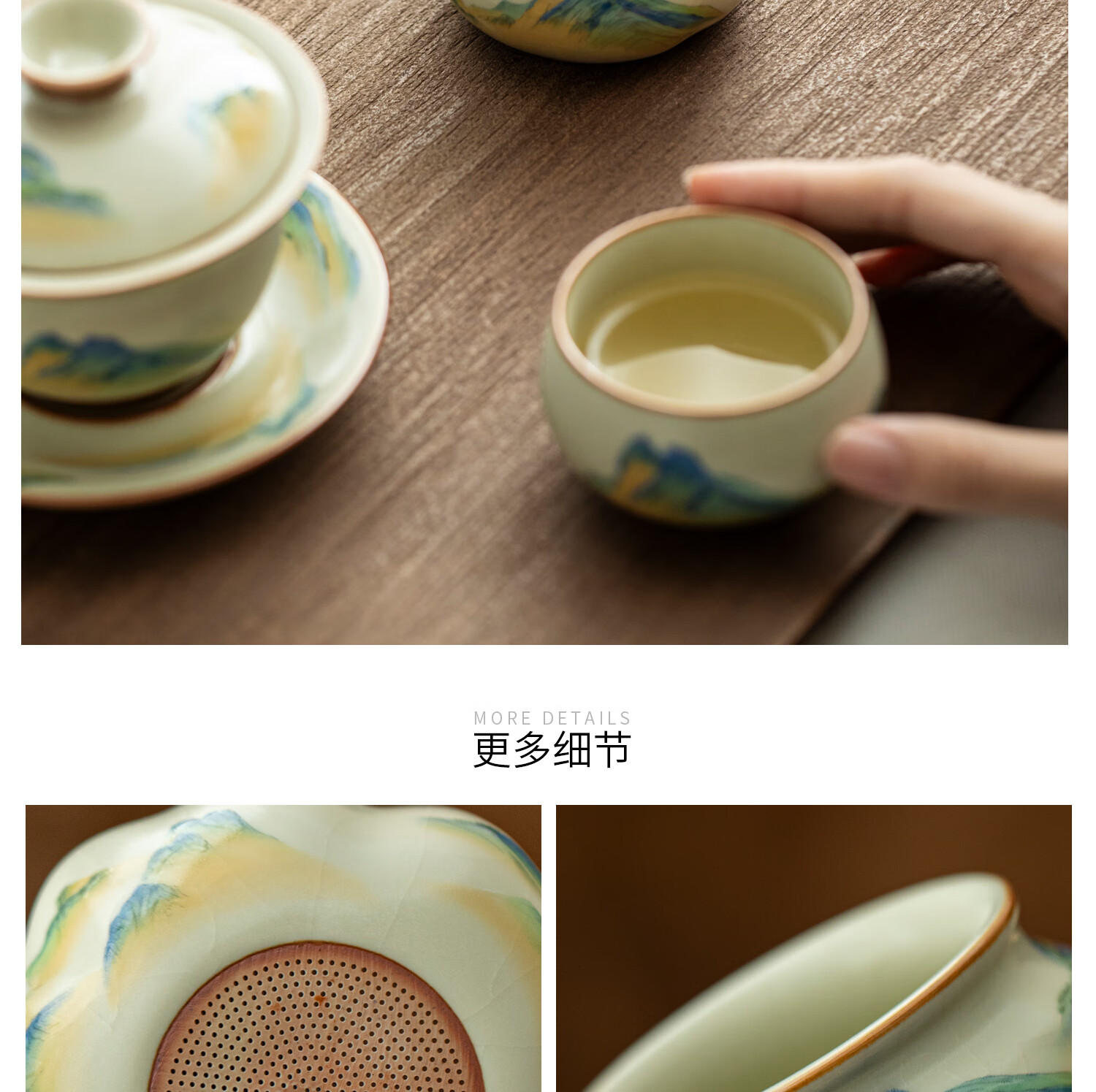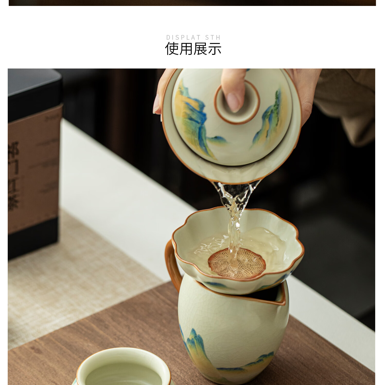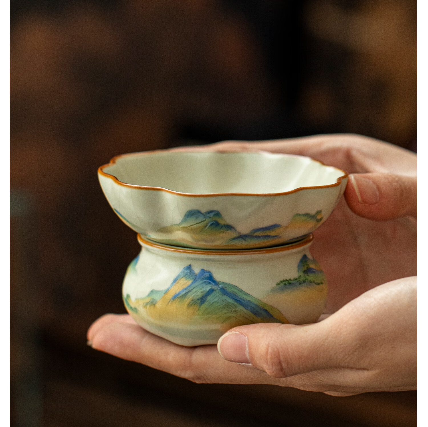 Zhenqi Ru Kiln Qianli Jiangshan Tea Filter Tea Leather Integrated Ceramic Tea Tea Separator Filter Tea Brewing Funnel Tea Water Separator Ru Kiln | Qianli Jiangshan | Tea Filter