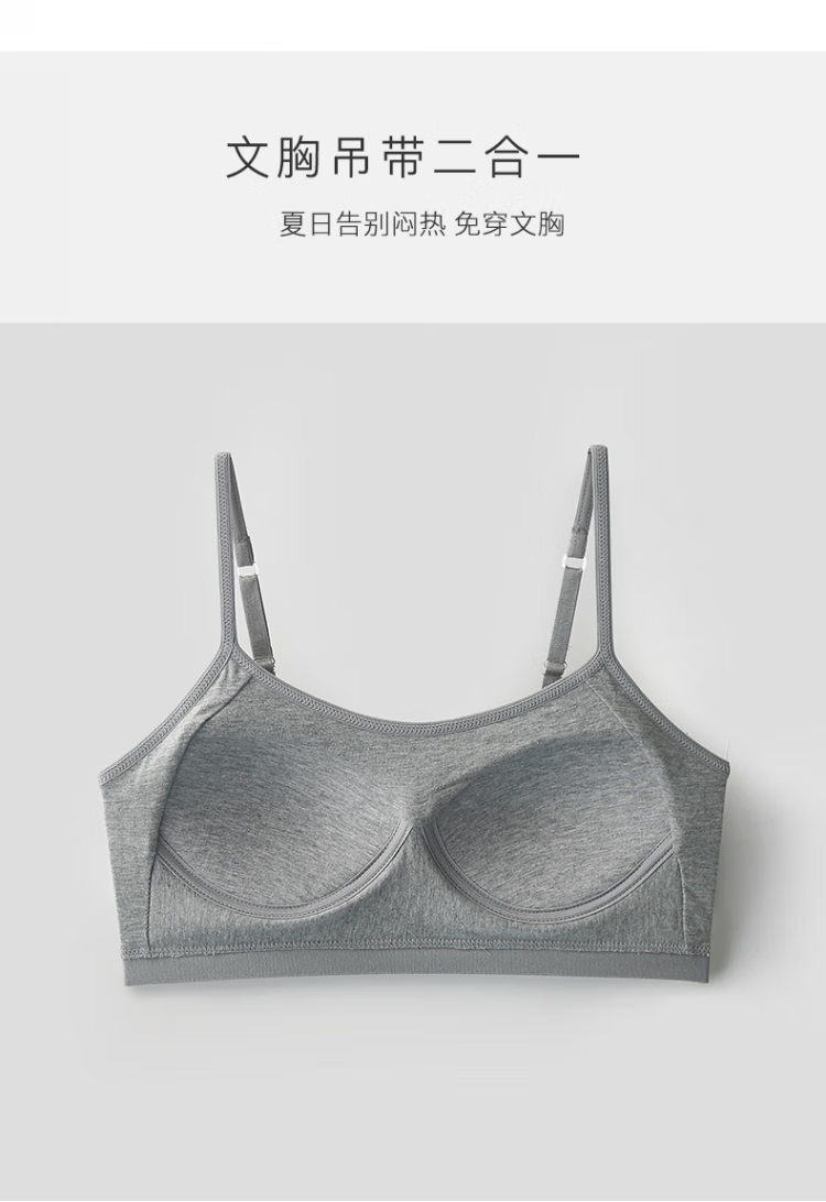 Oxygen Underwear Women's Cotton Vest Style Beautiful Back Sports Bra Summer Thin Section High School Junior High School Girls Student Bra (Classic and Versatile) Calm Gray + Mysterious Black S _(_70ABC is suitable for 100Jin Jin equal to 0.5 kg or less)