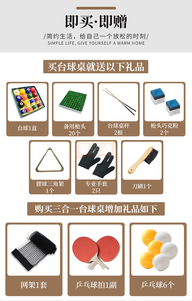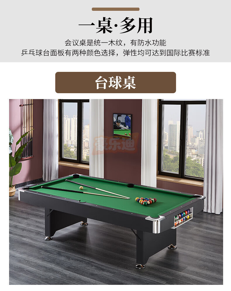 Holedi billiard table home black eight American Joe standard Chinese billiards multi-functional family folding table 7 feet classic wood color folding table (three-in-one)