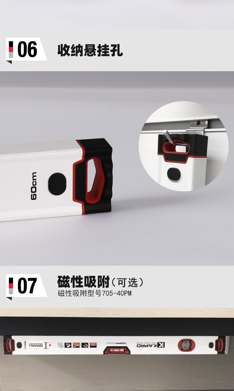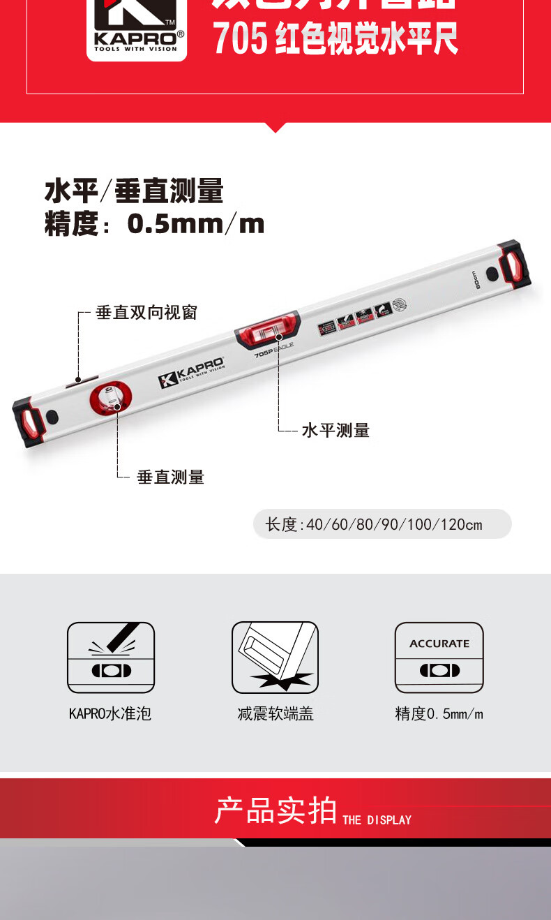 KAPRO Israel Cape Road level high-precision aluminum alloy thickened multi-functional shock-proof slope measurement 705-40cm2 level bubble