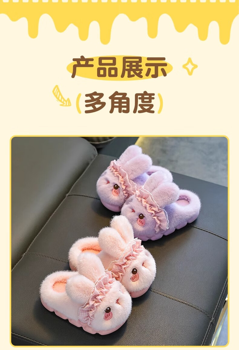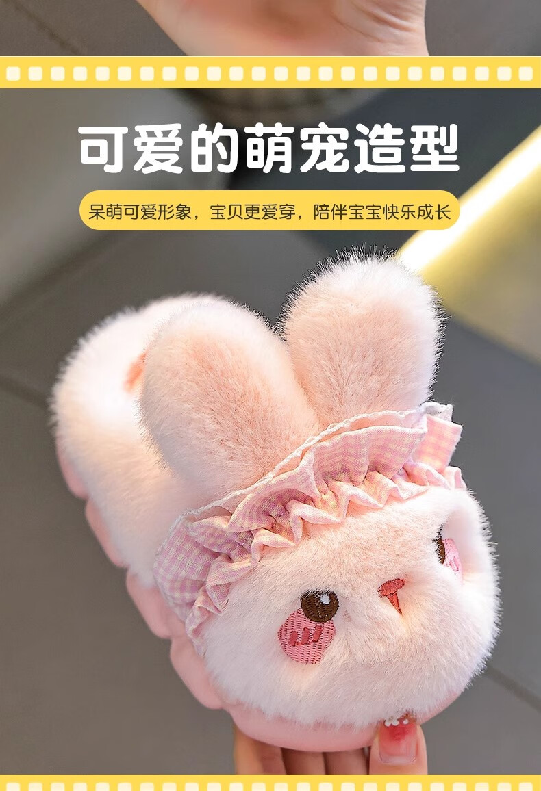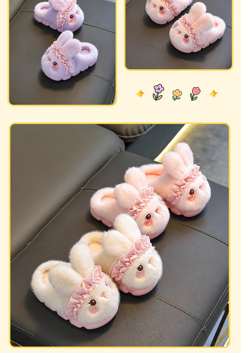 JIOESC children's cotton slippers autumn and winter new girls girls cotton slippers home thick-soled warm baby slippers bunny slippers size 30-31 suitable for feet 17CM