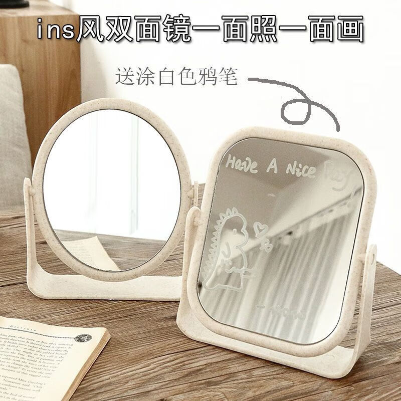 Student dormitory mirror makeup mirror simple desktop mirror home desktop can stand ins style dormitory student makeup mirror * square * large size 1 + 1 white graffiti pen