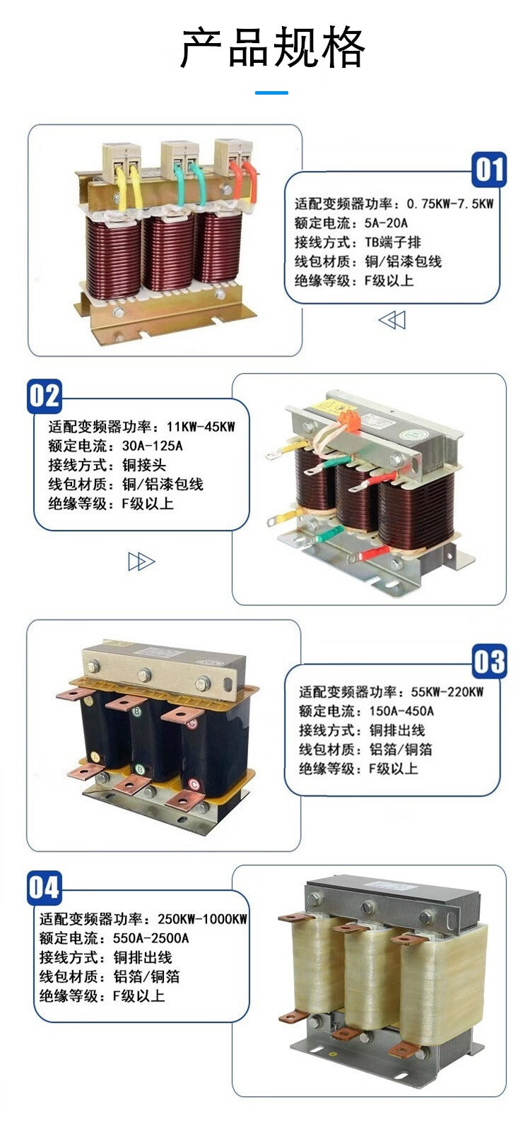 Three-phase input and output reactor dedicated for frequency converter 1.5-630KW incoming line, line outgoing line, line reactor DC filter 2.2KW-5A input_aluminum wire_line