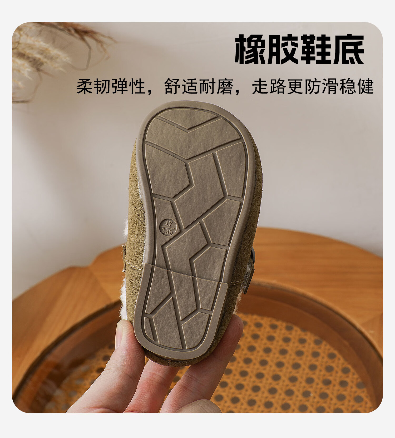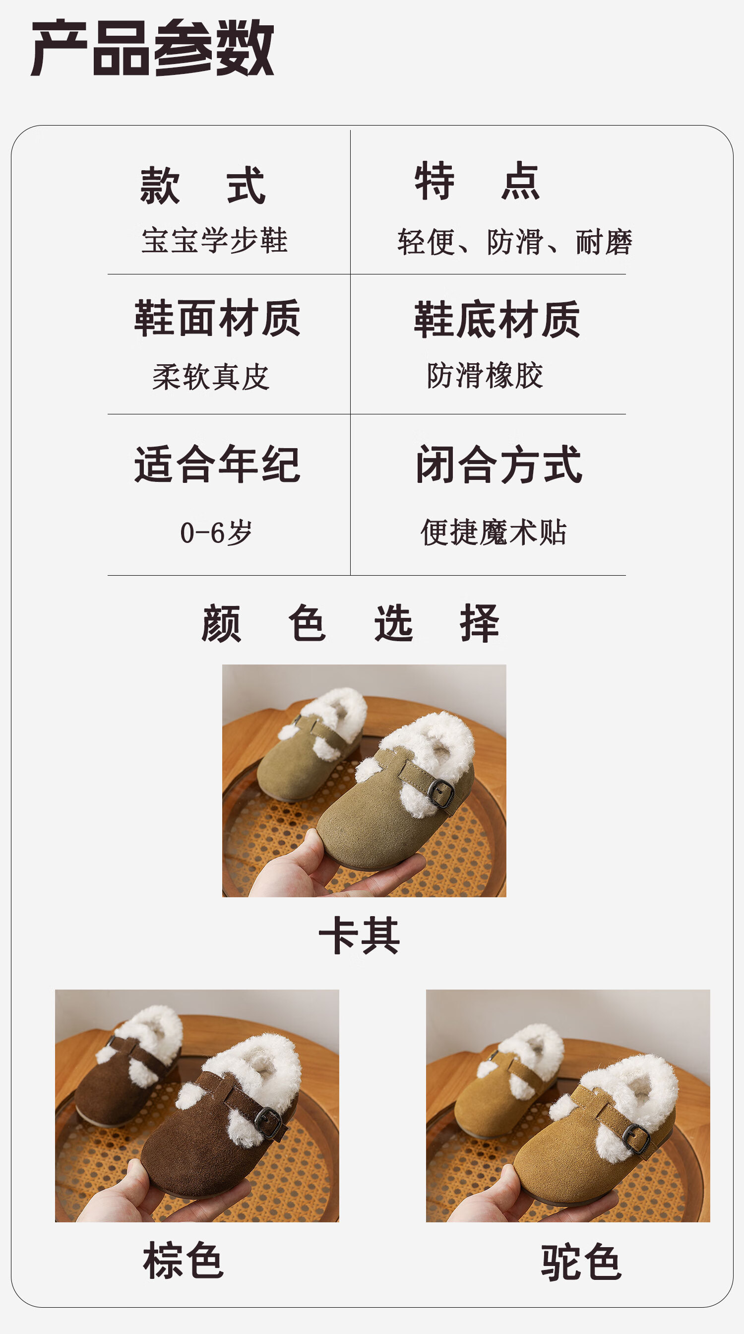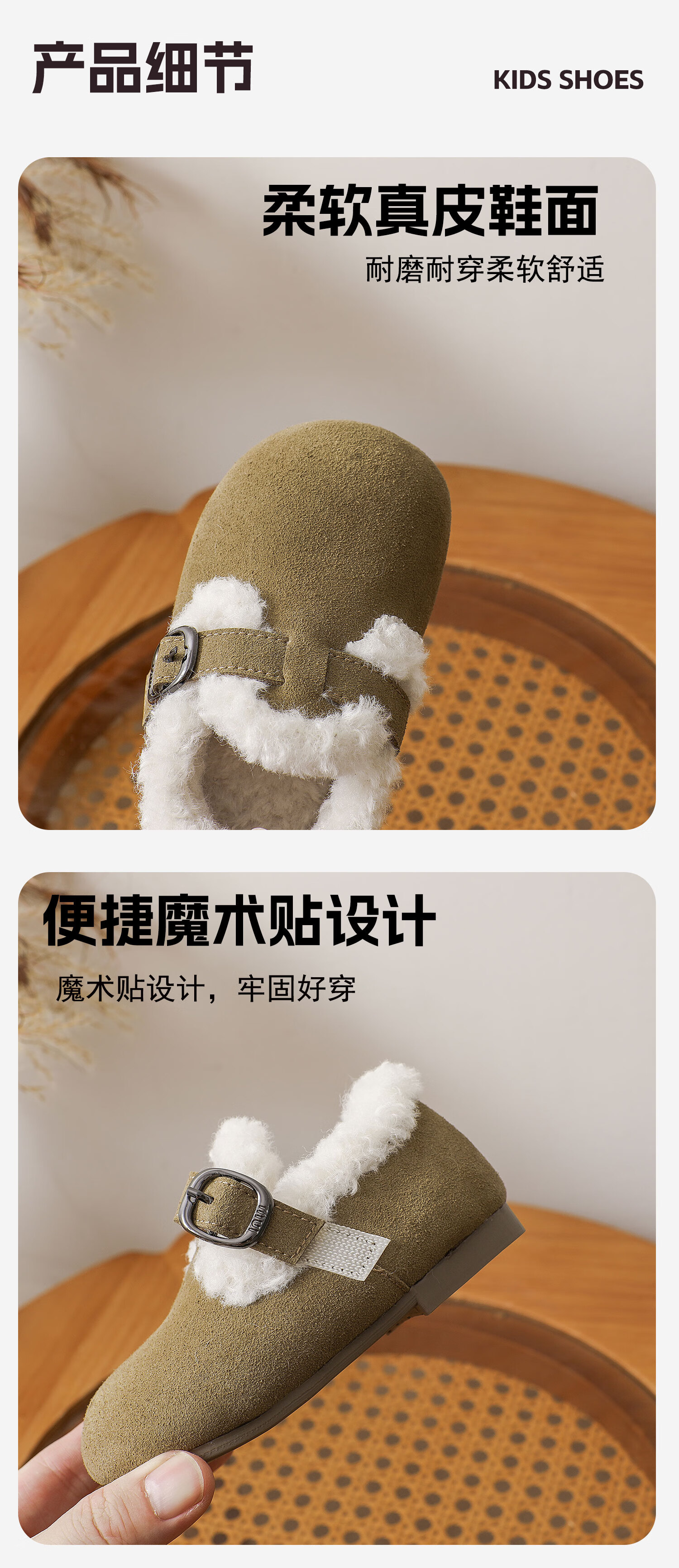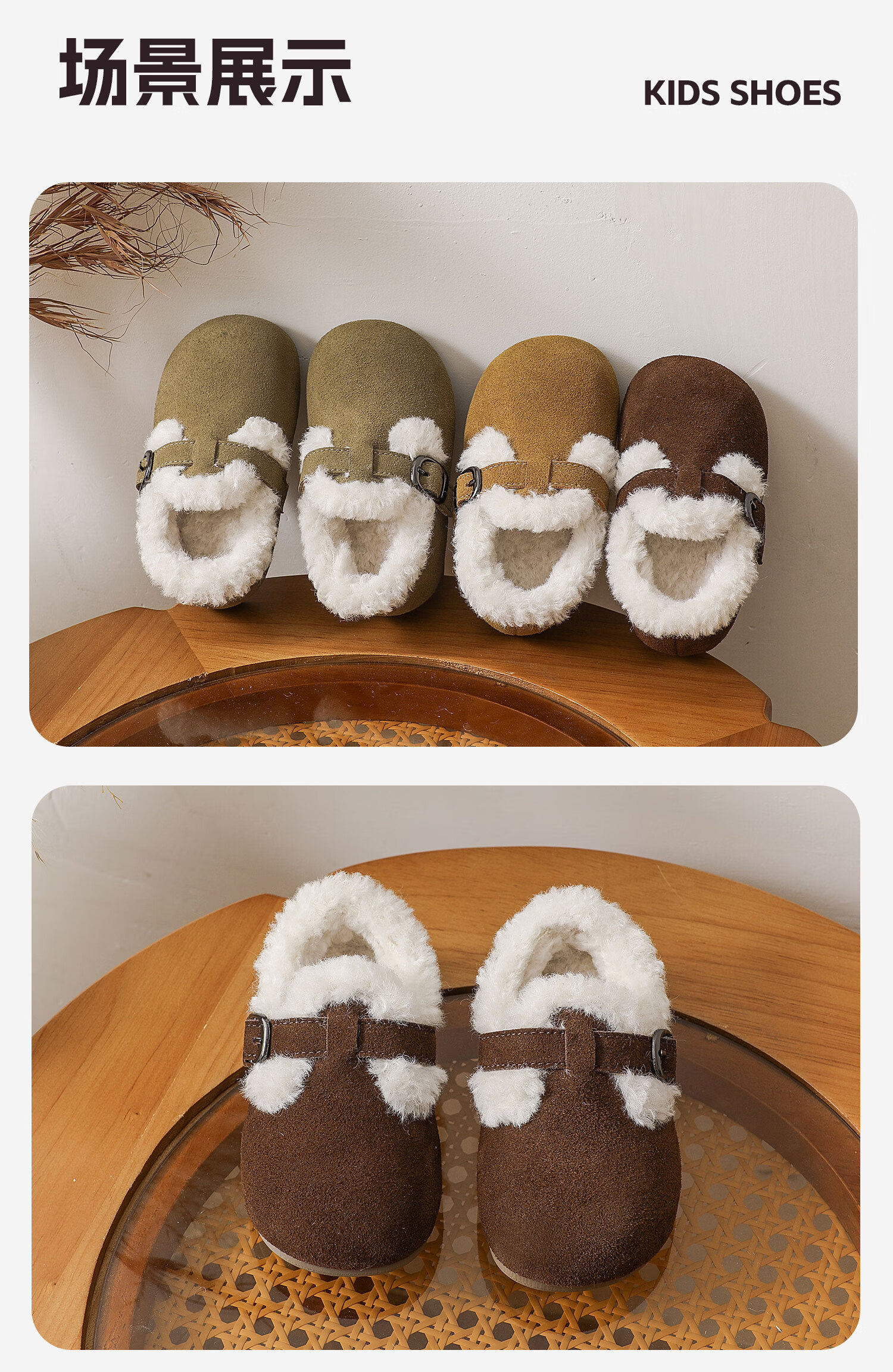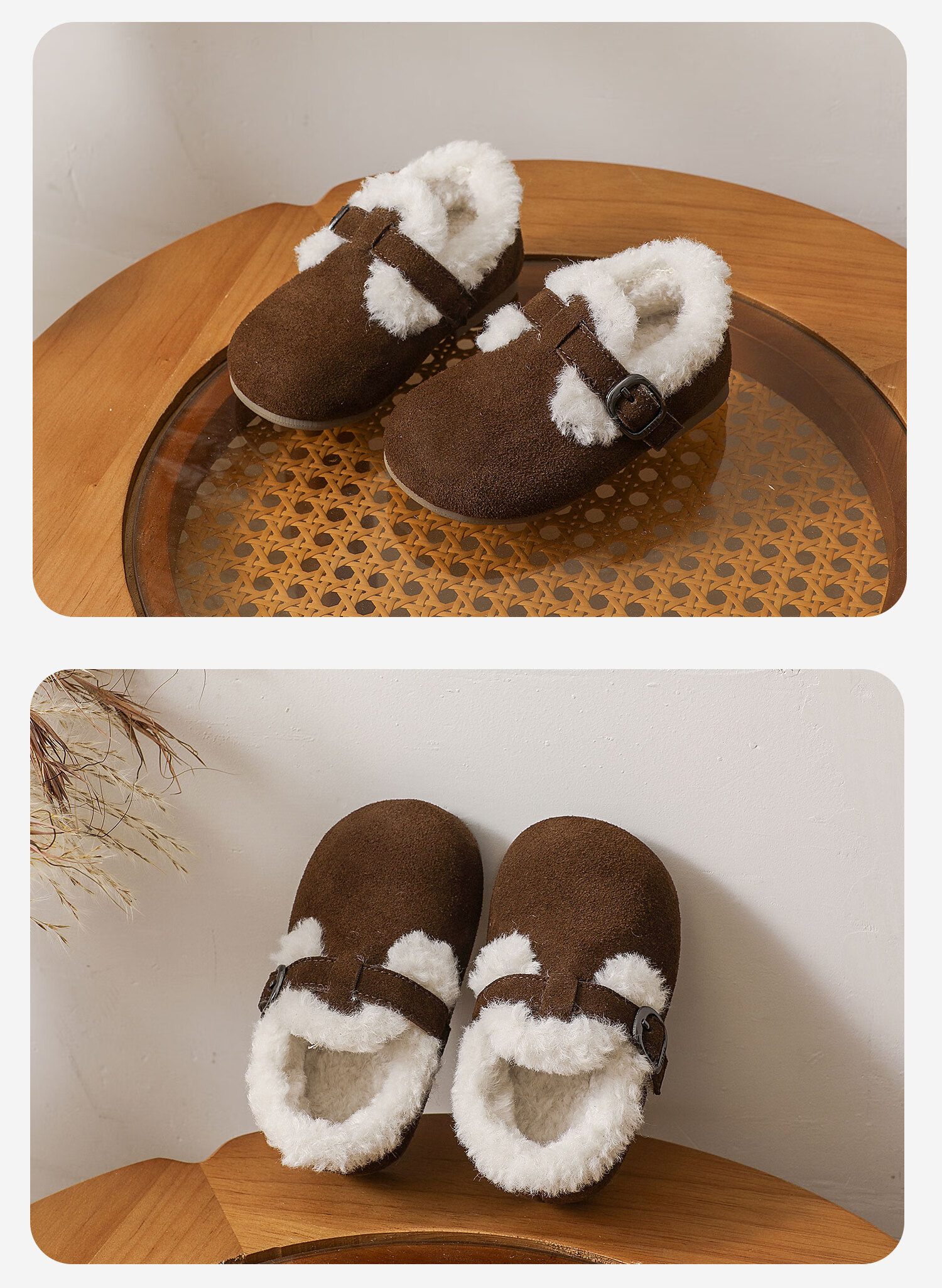 Genuine leather cotton shoes Birkenstock shoes autumn and winter new style plus velvet bean shoes for boys and girls, baby suede soft-soled small leather shoes, brown single lining, size 30, inner length 18.5cm